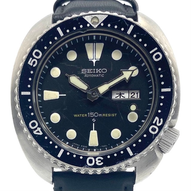 【希少・動作○】腕時計 メンズ セイコー SEIKO サードダイバー 6306-7001 自動巻 黒 デイデイト(英語・日本語) 革ベルト ヴィンテージ