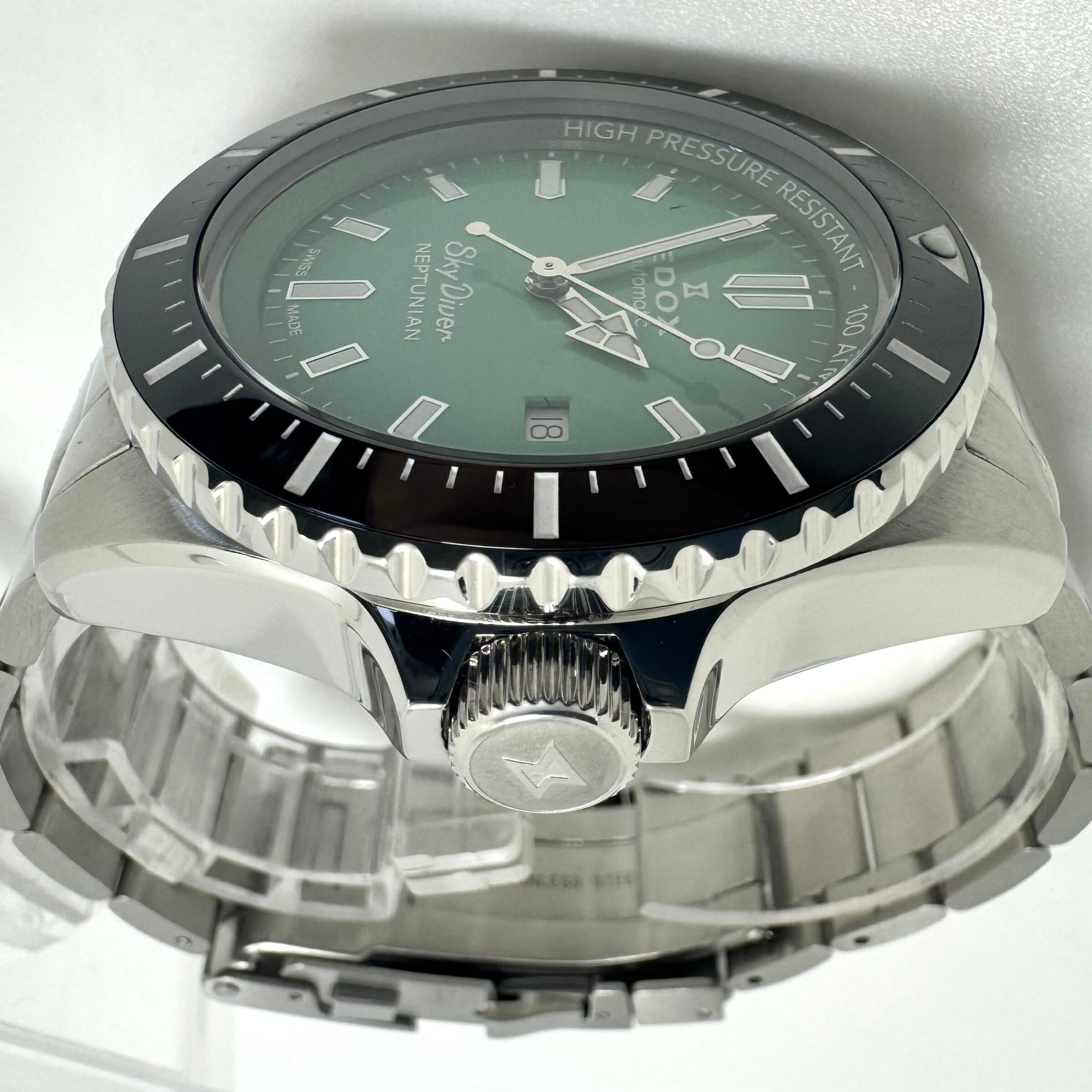 【美品】エドックス EDOX スカイダイバー ネプチュニアン 80120-3NM-VDN ダイバーズ 自動巻 グリーン デイト表示 セラミック