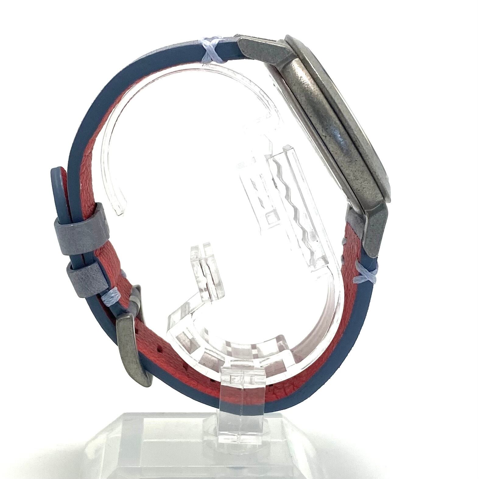ムーブメントはクォーツ式でリューズはねじ込み式となっています。