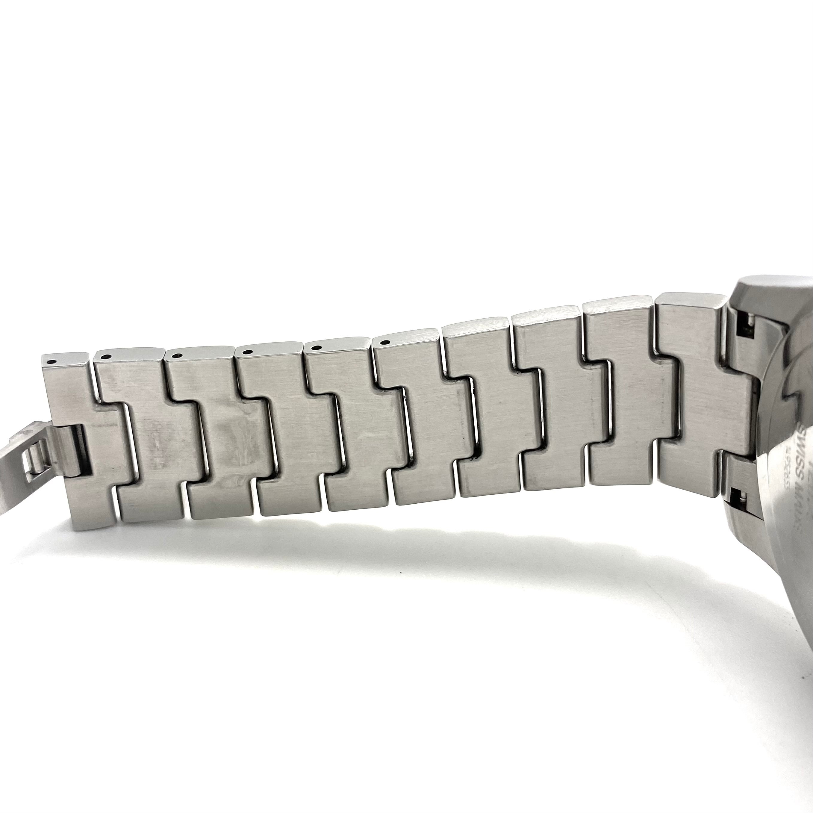 ムーブメントはクォーツ式で、文字盤4時位置にデイト表示が付いています。