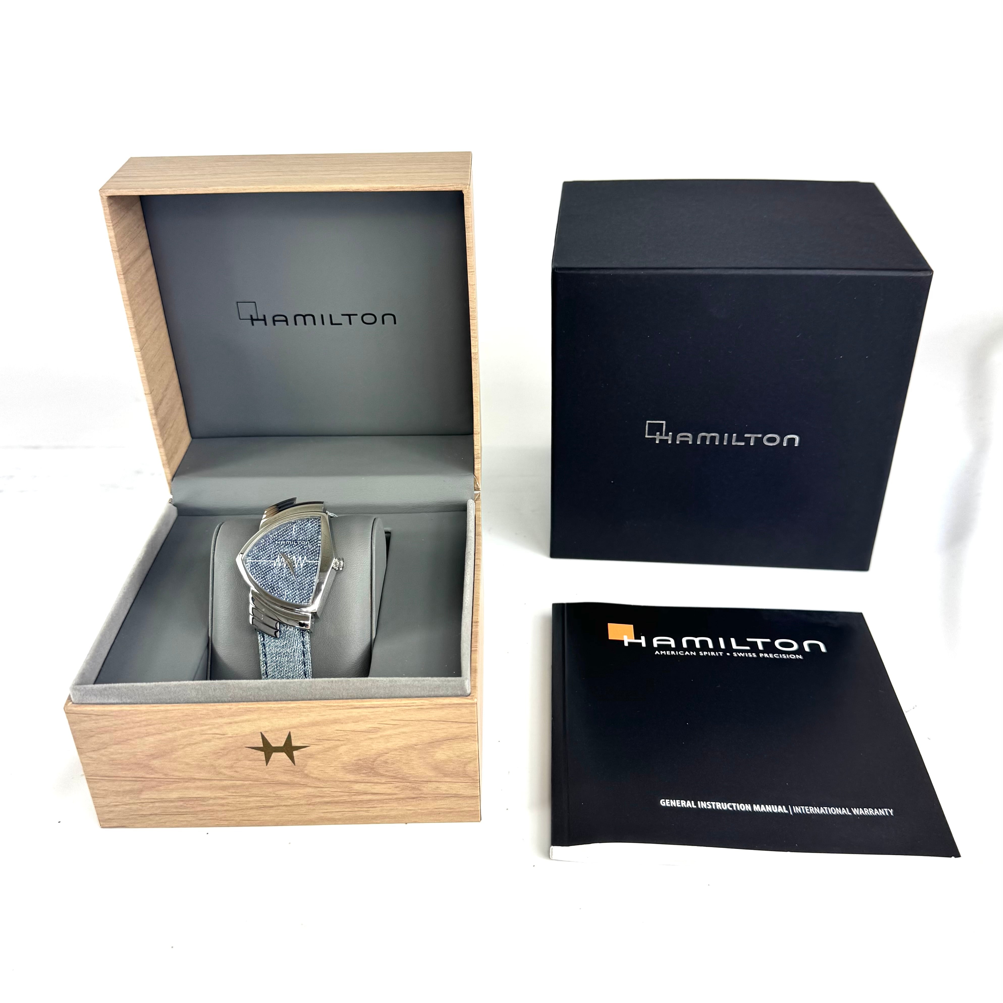 【美品・希少】腕時計 メンズ ハミルトン ベンチュラ H24411941 H244112 クォーツ ジーンズ 青 デニムベルト