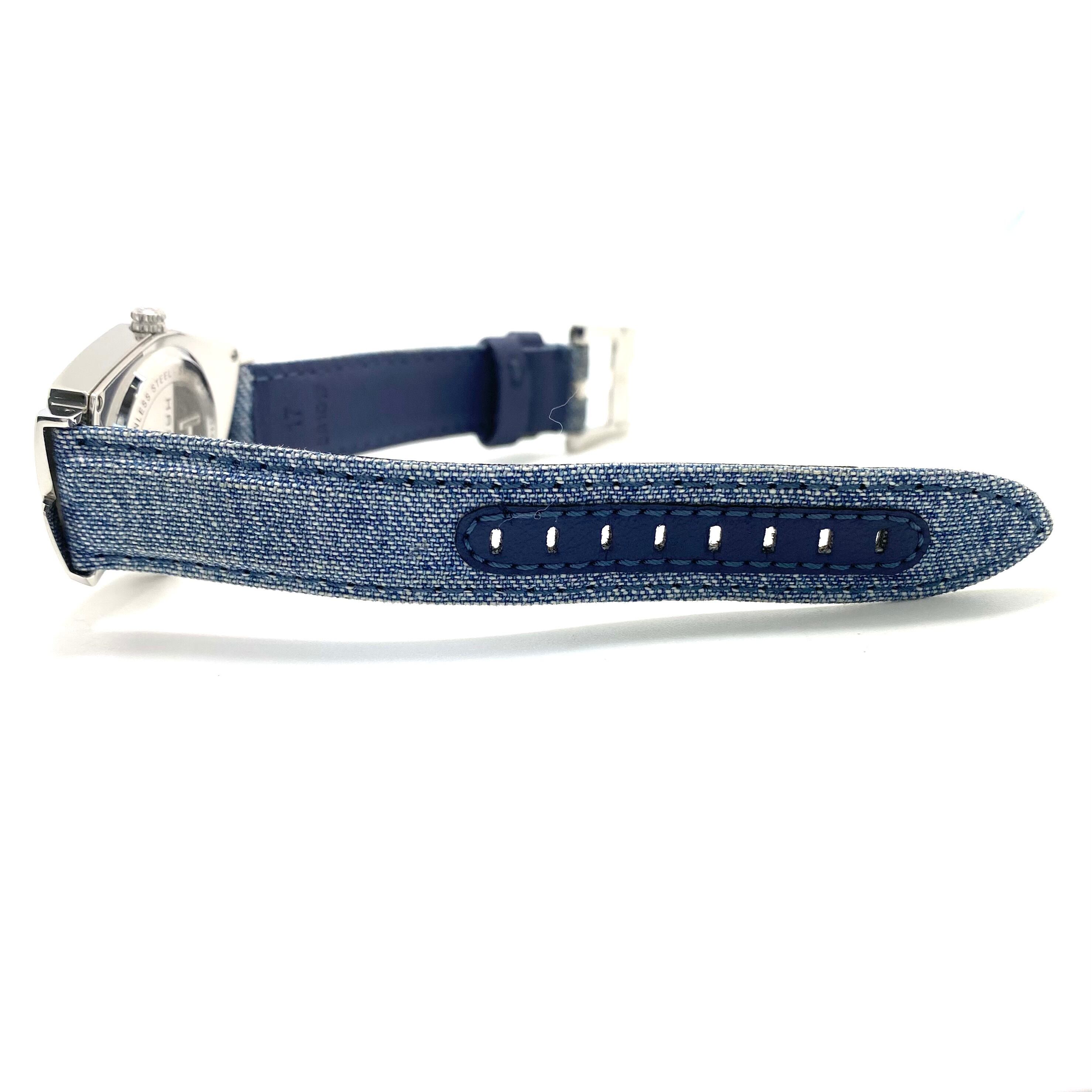 本モデルは、ブルーダイヤルとデニム調ストラップを採用した「ジーンズ」スタイルが特徴。ヴィンテージ感とカジュアルさを兼ね備えた唯一無二の存在感を放ちます。