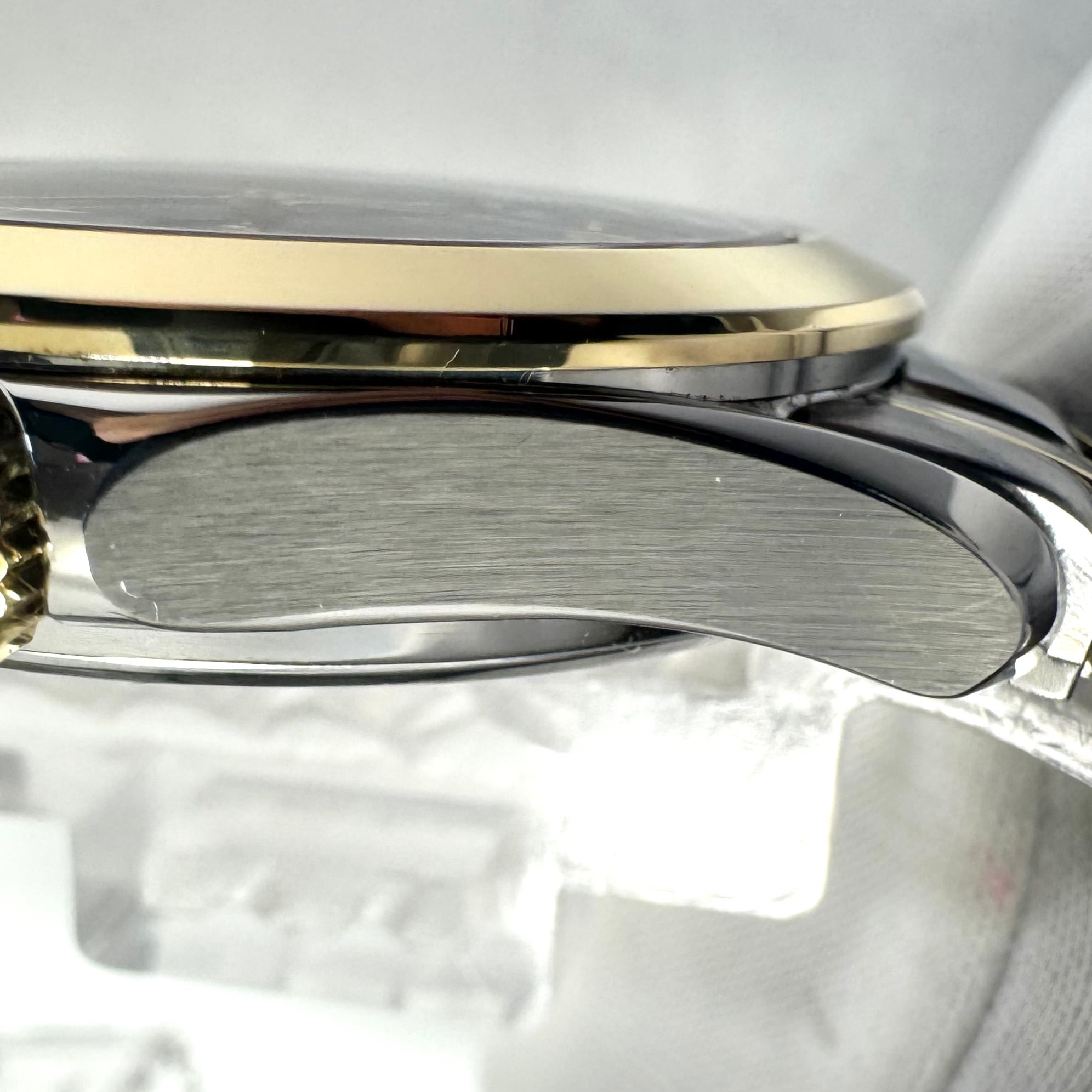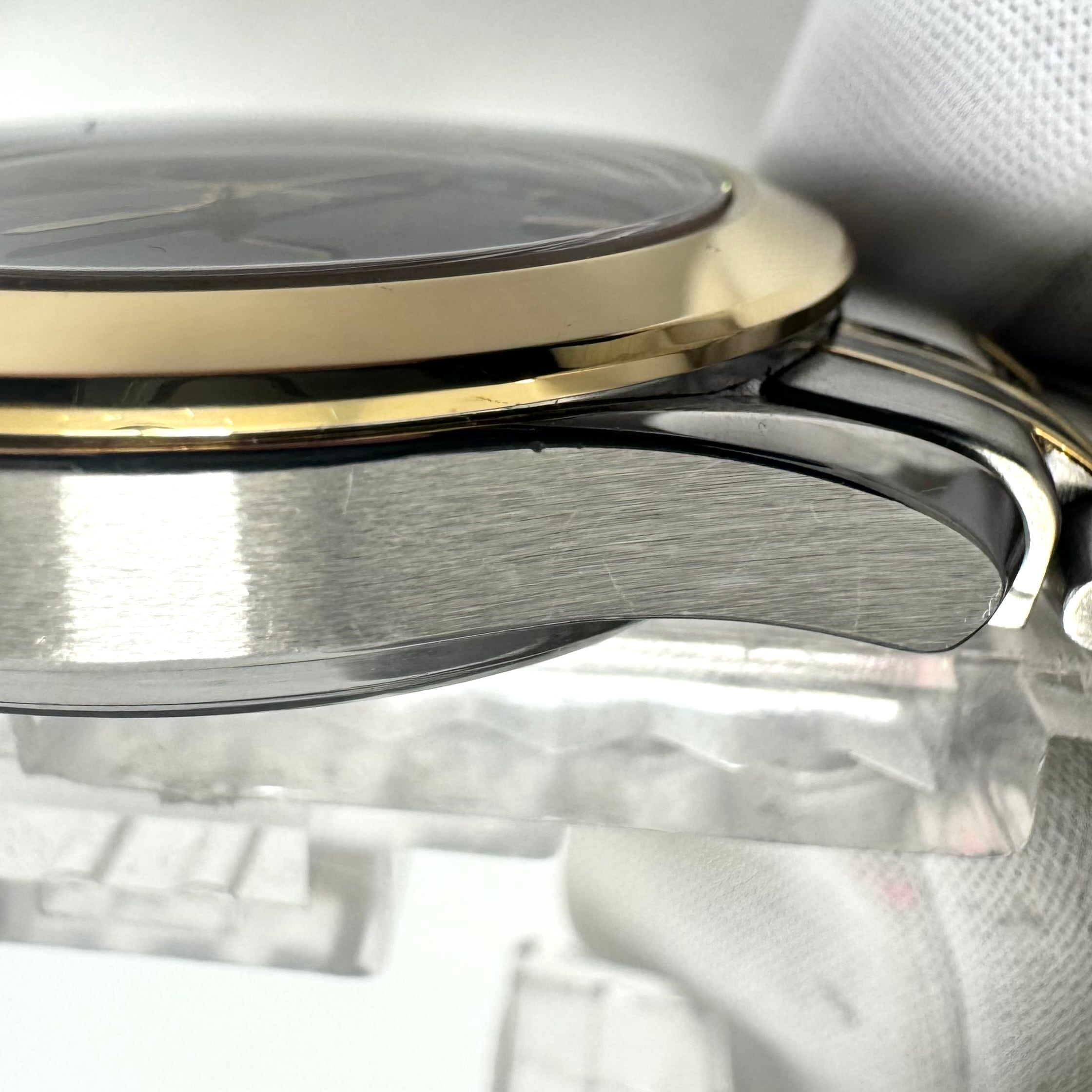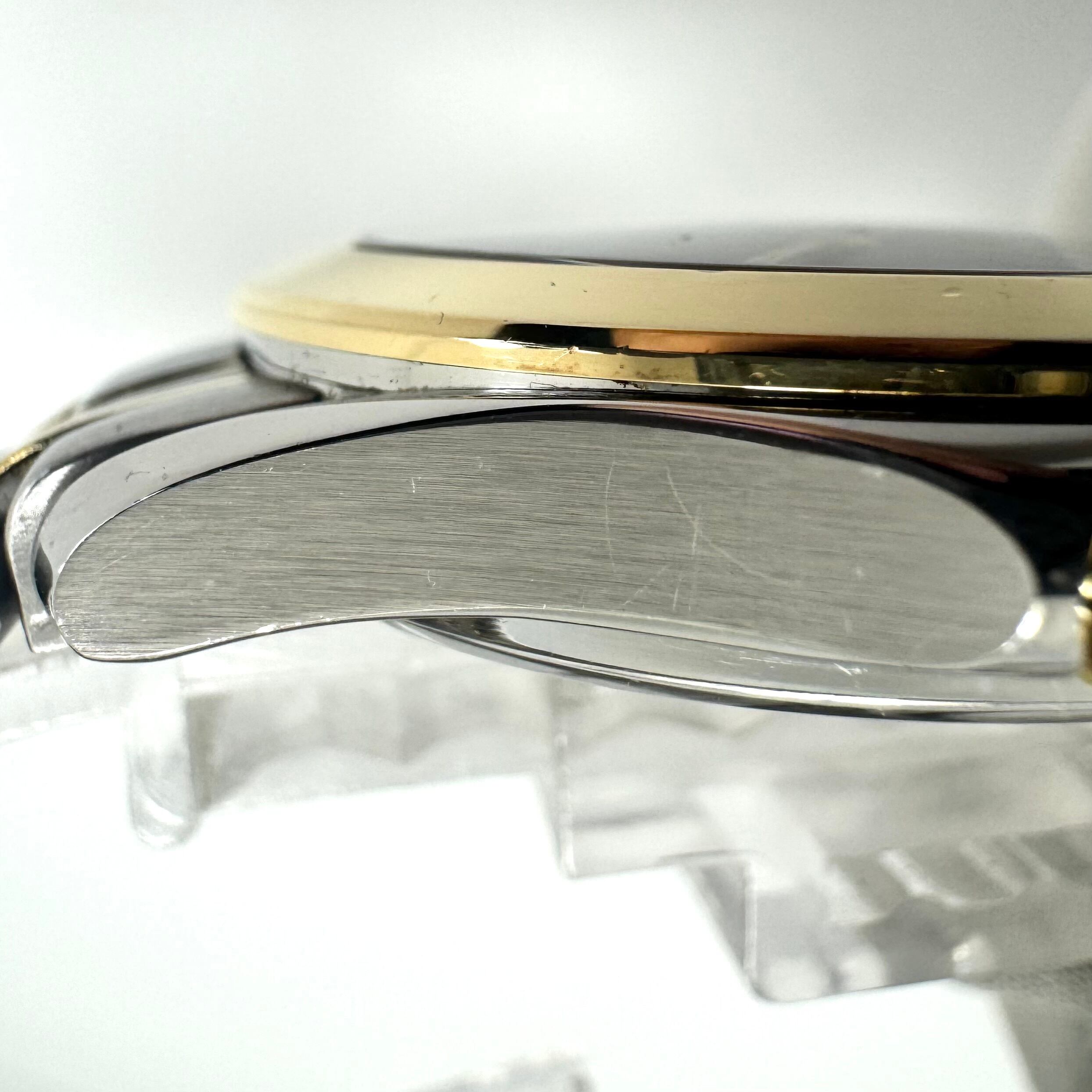 フェイス:ガラス面に1箇所若干のスレがあります。ケース及びベゼルに若干のスレ、裏蓋に極小のスレがあります。
