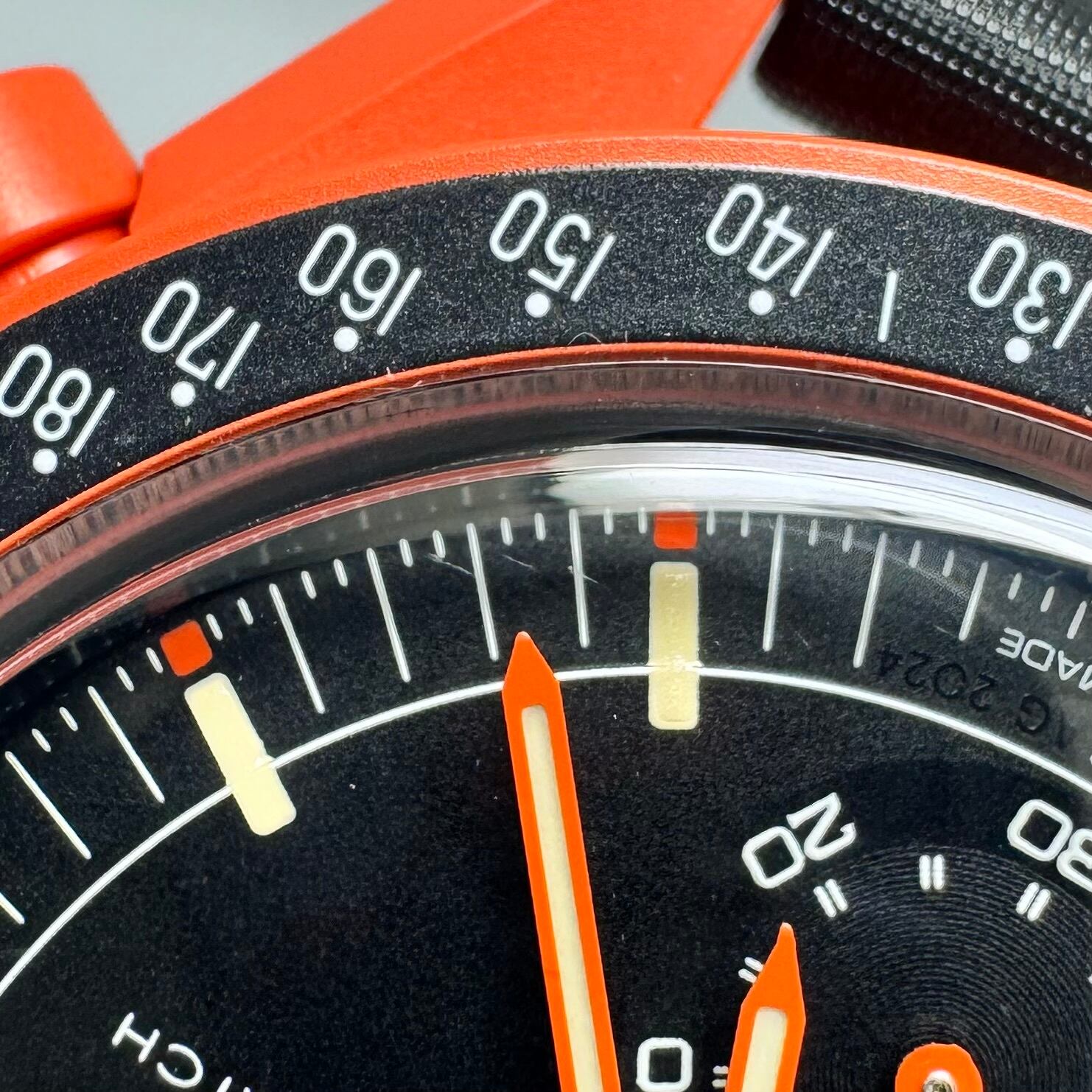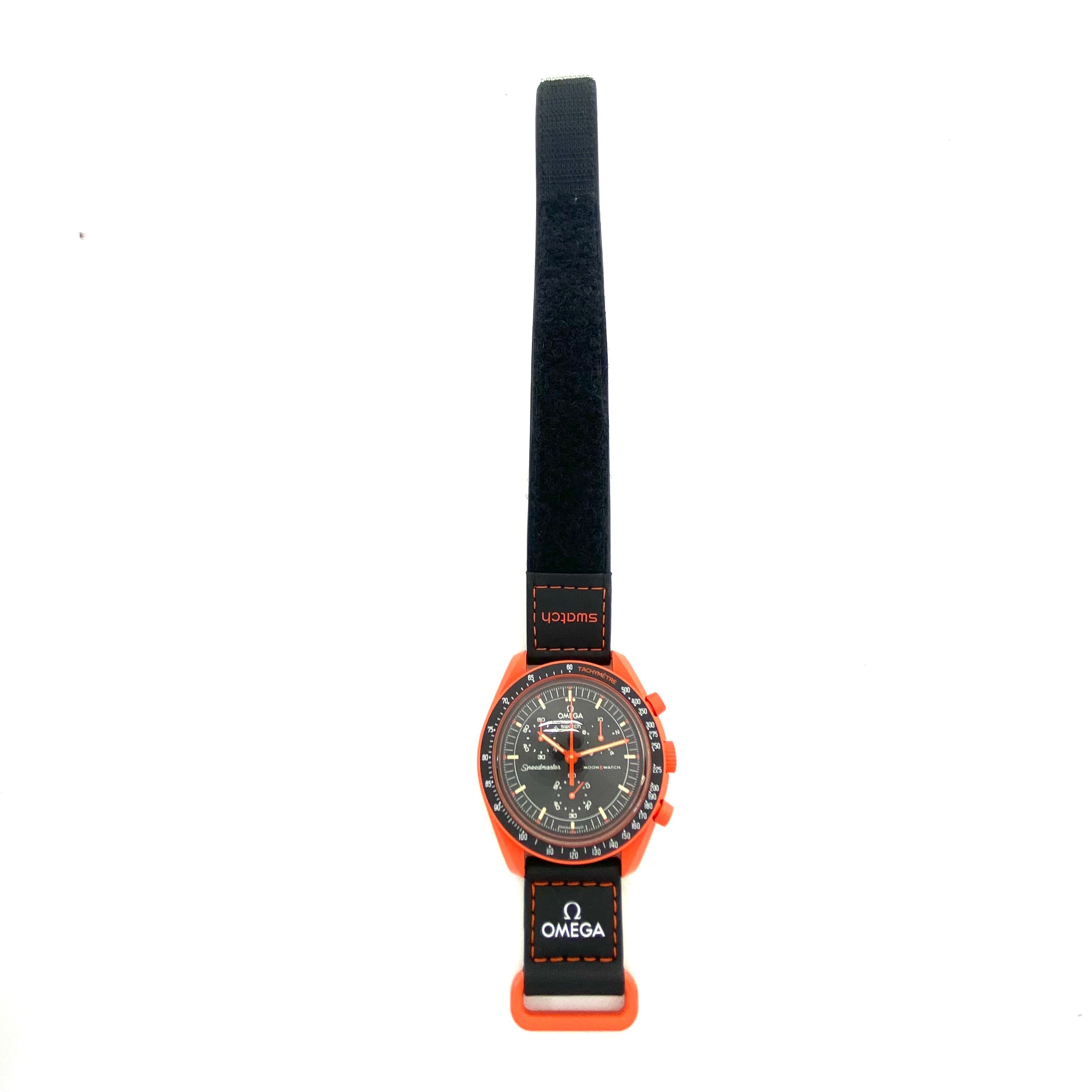 オメガ OMEGA オメガ×スウォッチ スピードマスター Speedmaster ムーンスウォッチ ミッション オン アース ラバ Mission on Earth Lava SO33O100 クォーツ クロノグラフ バイオセラミック タキメーター スモールセコンド 黒 ナイロンベルト