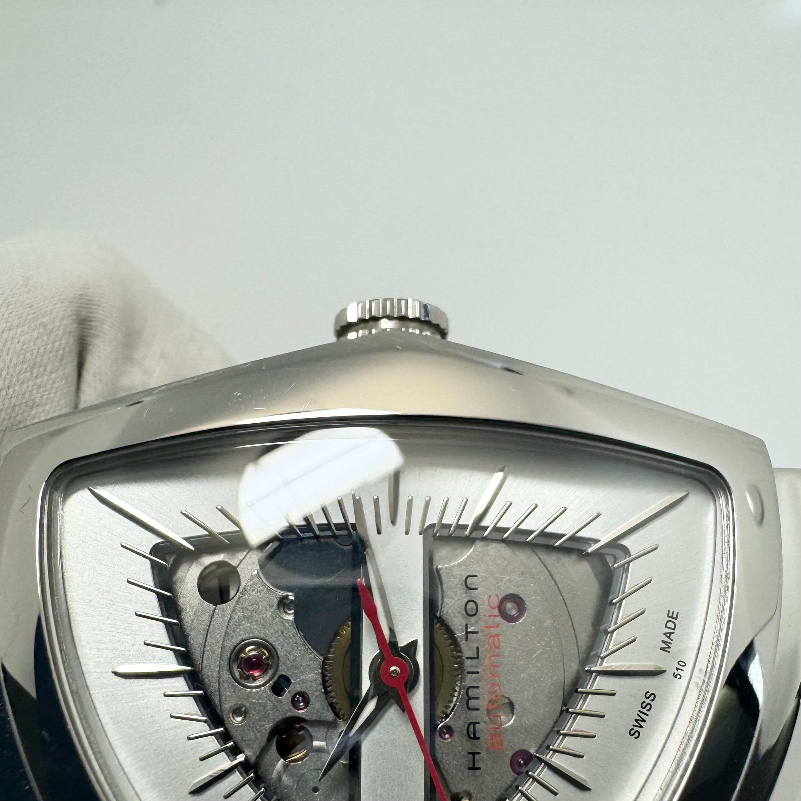アメリカン・スピリットとスイス・プレシジョンの融合を体現するHAMILTON(ハミルトン)から、伝説的な三角形デザイン「VENTURA(ベンチュラ)」の自動巻モデルH24515551が入荷されました。現在は生産終了しており、入手が難しい希少な品となっています。