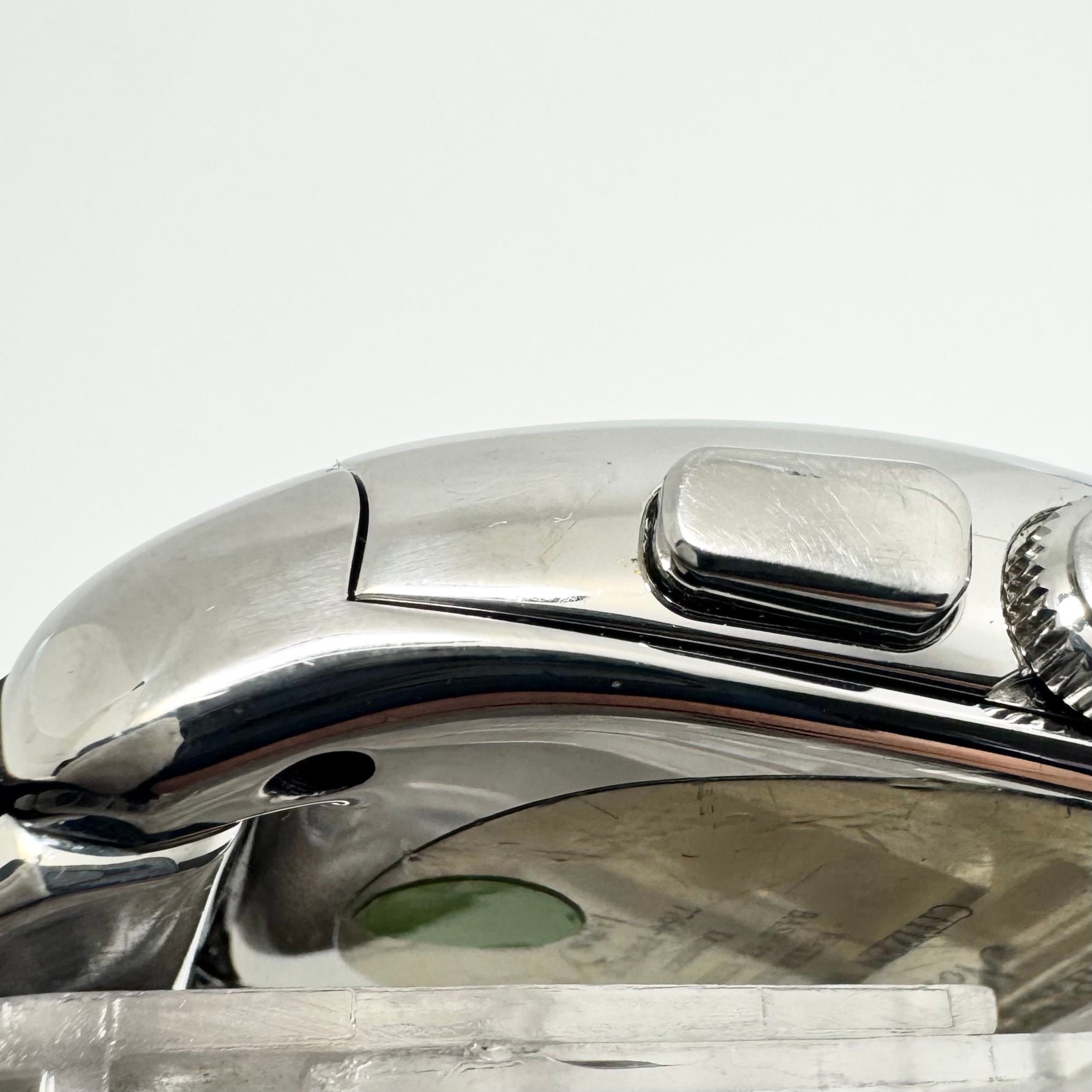 ケースは鏡面仕上げのステンレス製で、高級感のある光沢を放ち、フォーマルにもカジュアルにもマッチします。流通数の少ない希少なモデルで、コレクションや贈り物にもおすすめです。