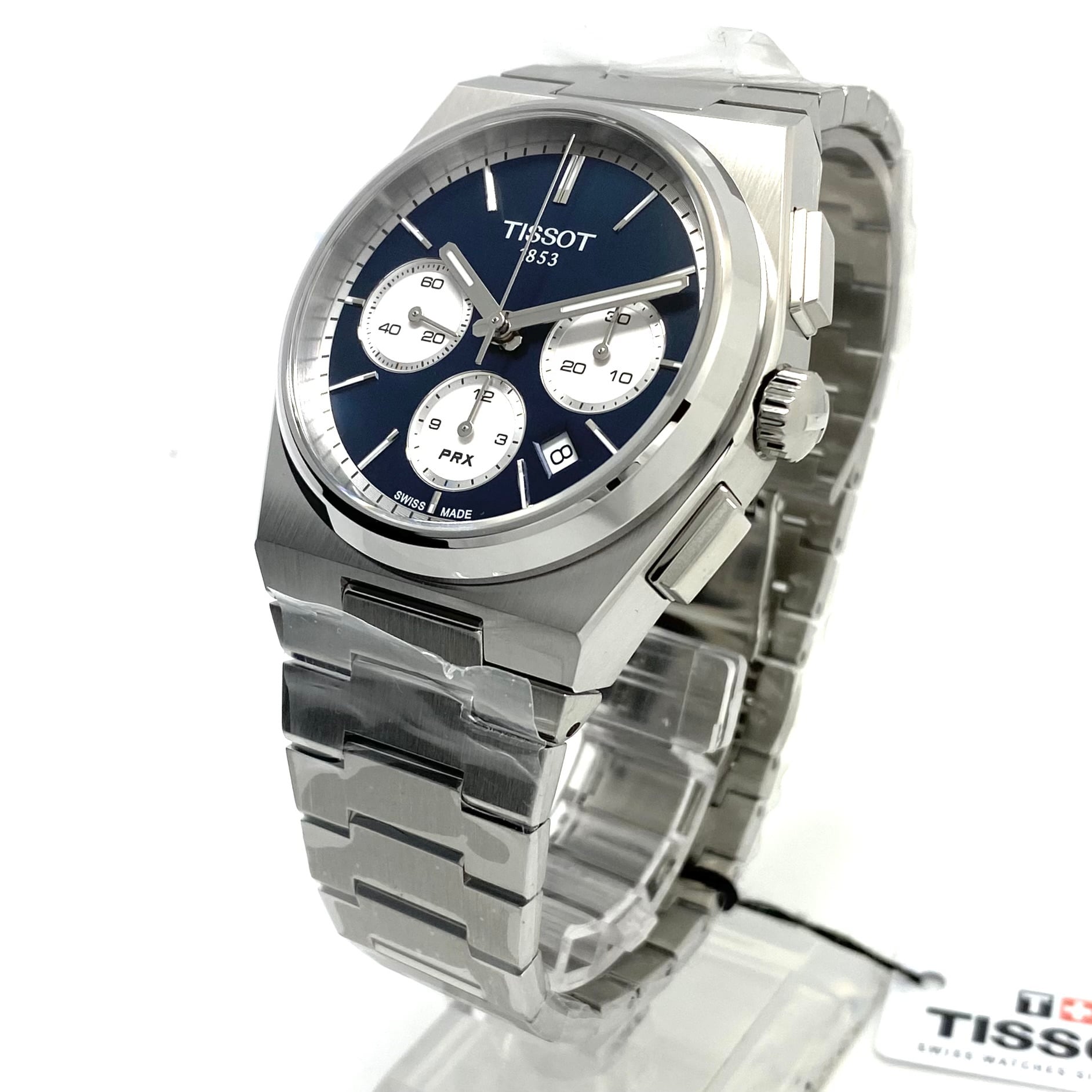【未使用・動作良好】腕時計 メンズ ティソ TISSOT PRX オートマティック クロノグラフ T137427A 自動巻 ネイビー デイト表示 裏スケ 100m防水