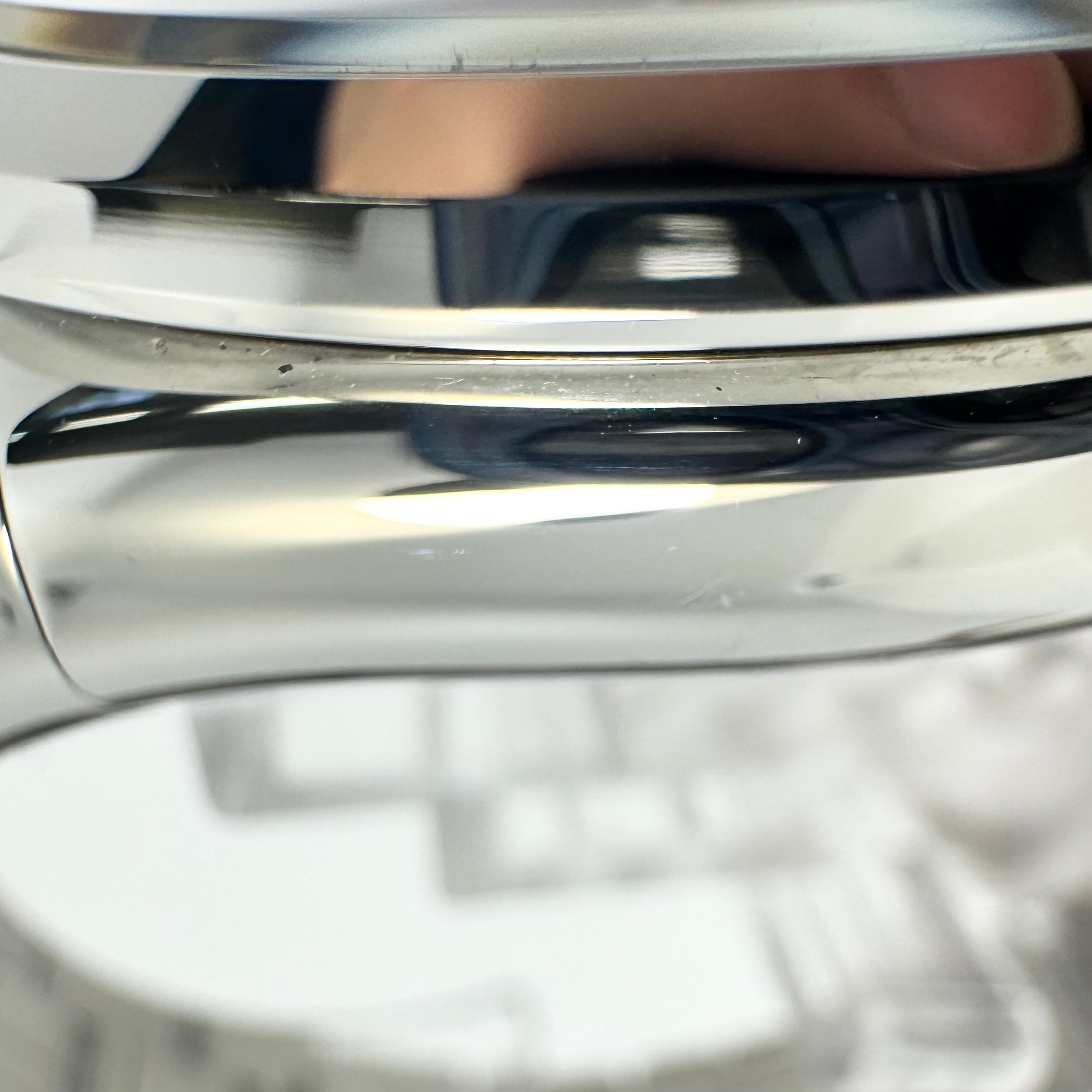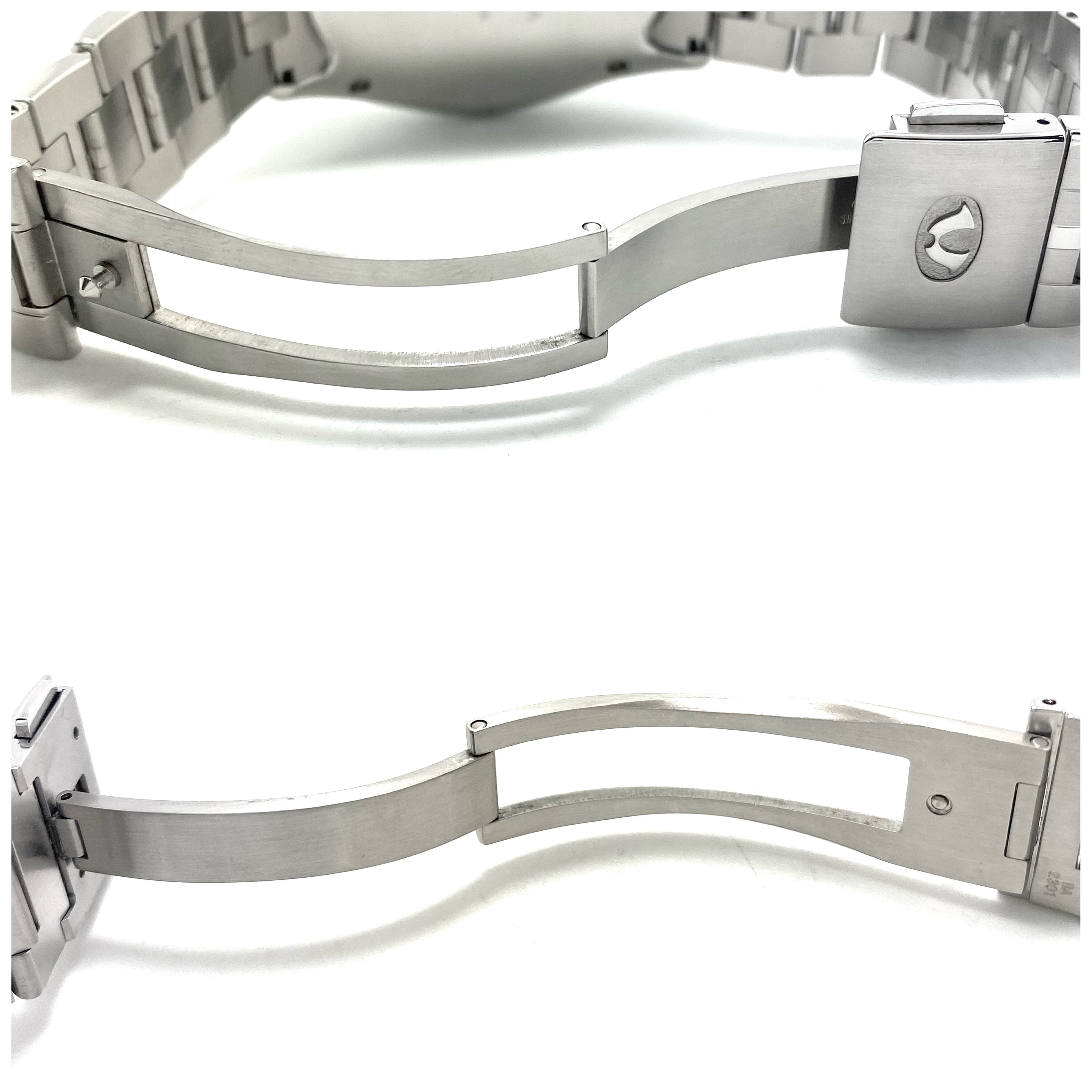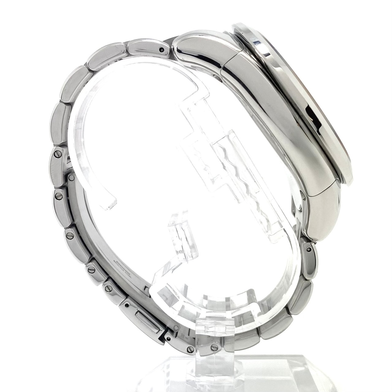 ムーブメントにはクォーツ・キャリバー4398を搭載。月差±20秒の精度を実現し、電池寿命も約3年という堅実なスペック。45.0mm径×厚み14.1mmという堂々たるサイズ感ながら、仕上げ・造形ともに高級機に相応しい品格を備えています
