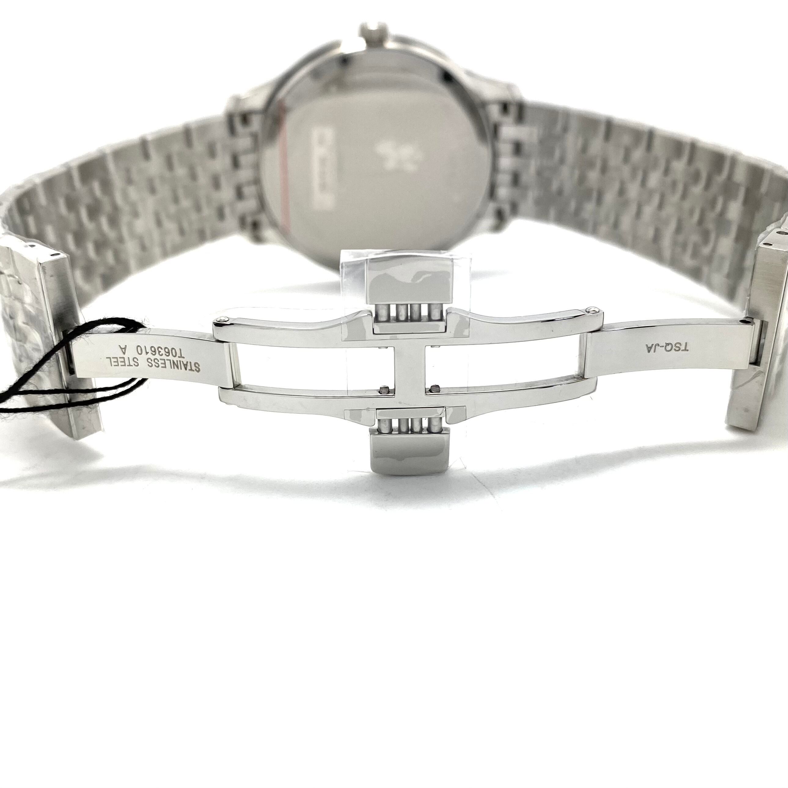 ステンレスブレス仕様で高級感と耐久性を兼ね備え、3気圧防水やEOL(電池寿命予告機能)など、実用性も十分。クラシックウォッチの原点を現代技術で再構築した、まさに“TISSOTらしさ”が凝縮された一本です。