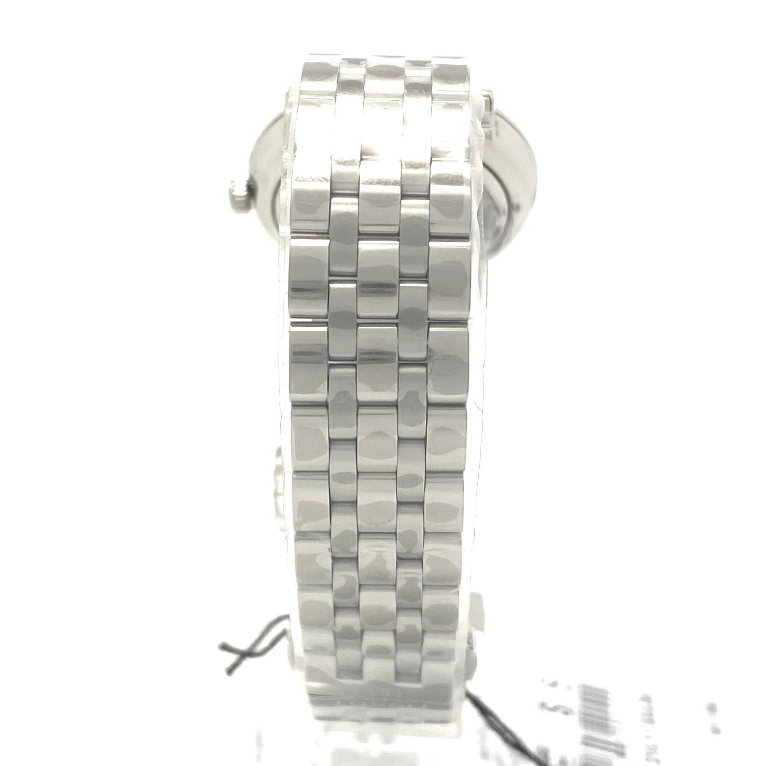 搭載ムーブメントは信頼のスイス製クォーツ。正確な時を刻みながらも、5気圧防水やサファイアクリスタルガラスなど実用性も充実。日常使いからフォーマルまで、手元を優雅に演出します。ステンレススチール製のブレスレットは上質な輝きを放ち、長く愛用できる耐久性も兼ね備えています。