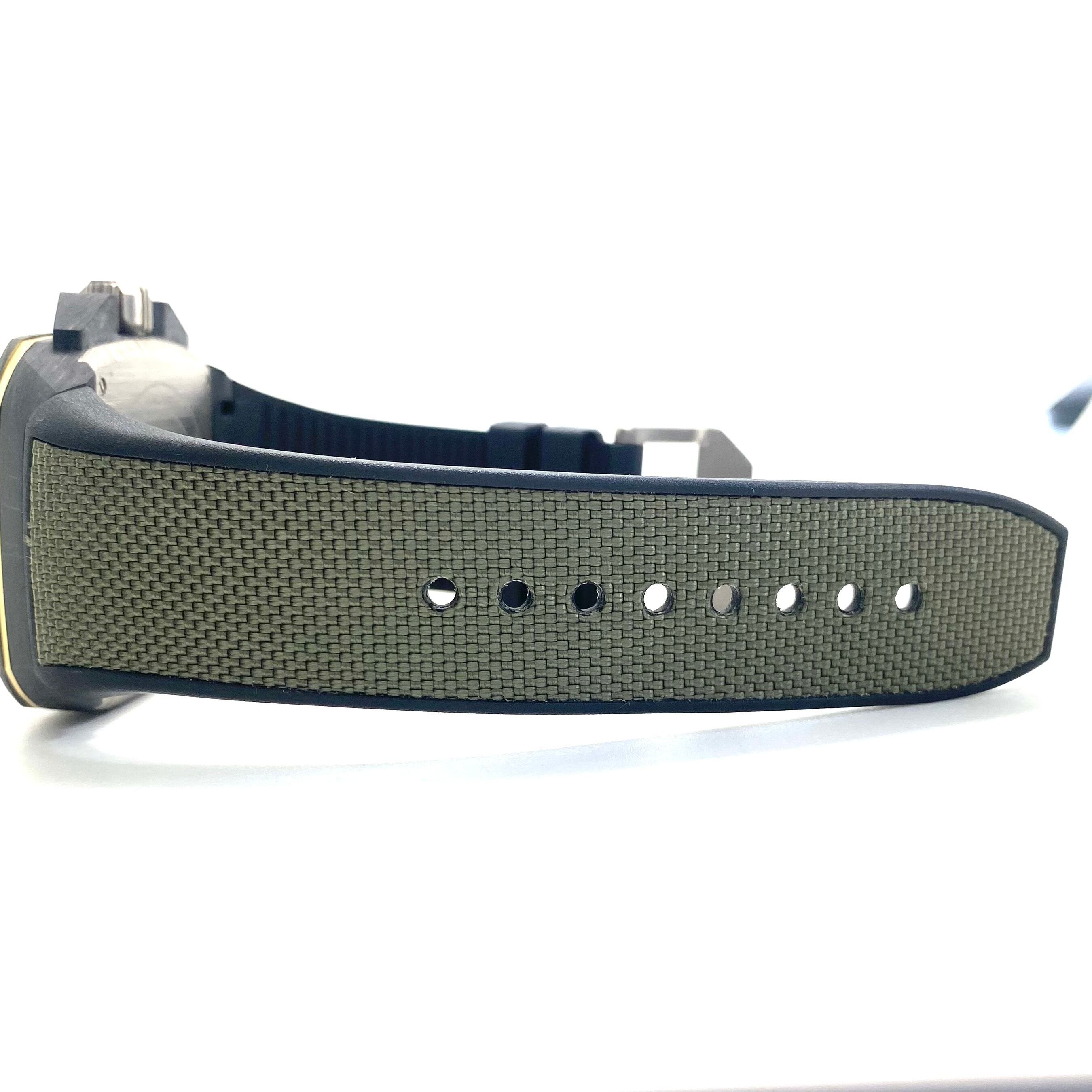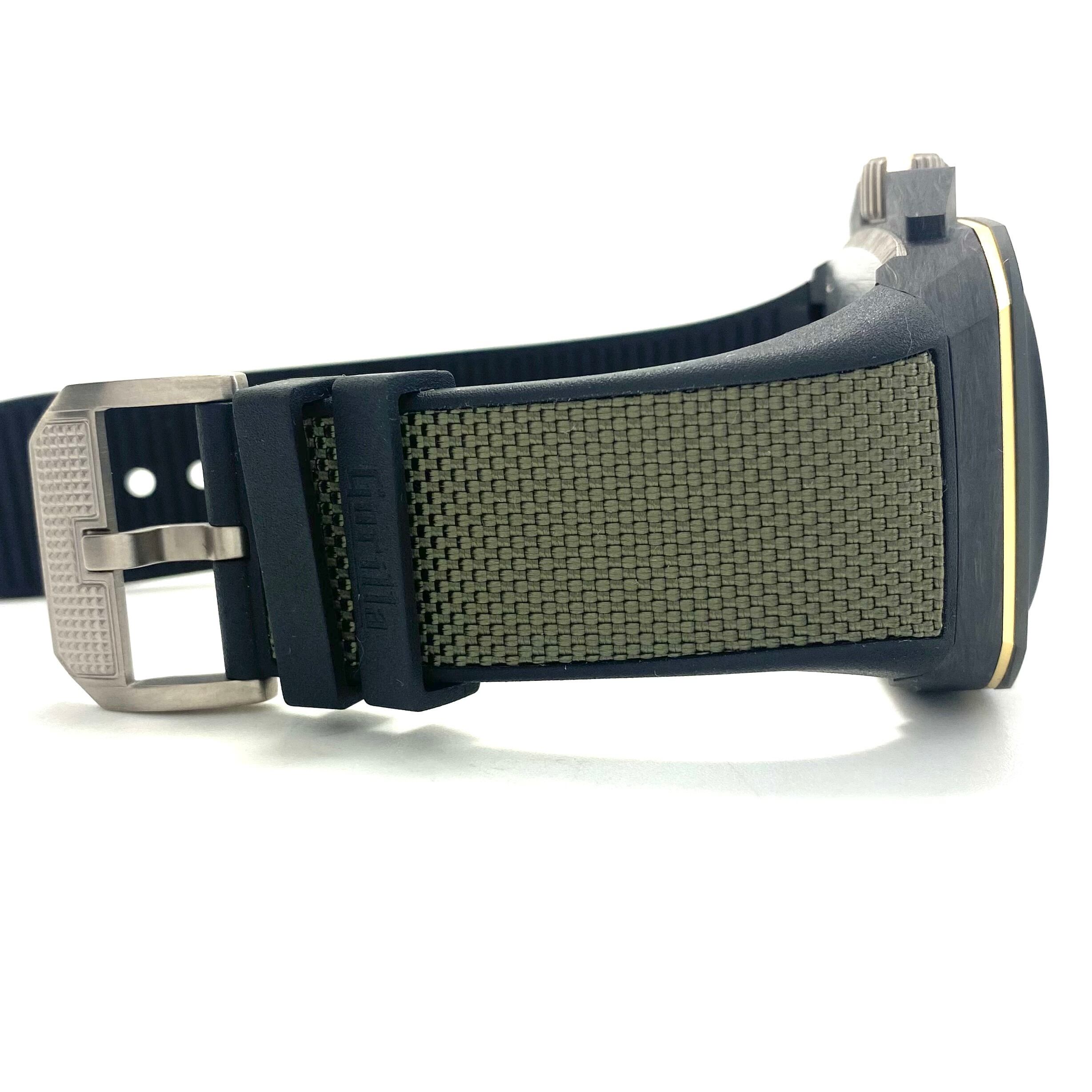 仕様:チタニウム、セラミック、カーボン、チタニウム、ラバーベルト、ねじ込み式リューズ