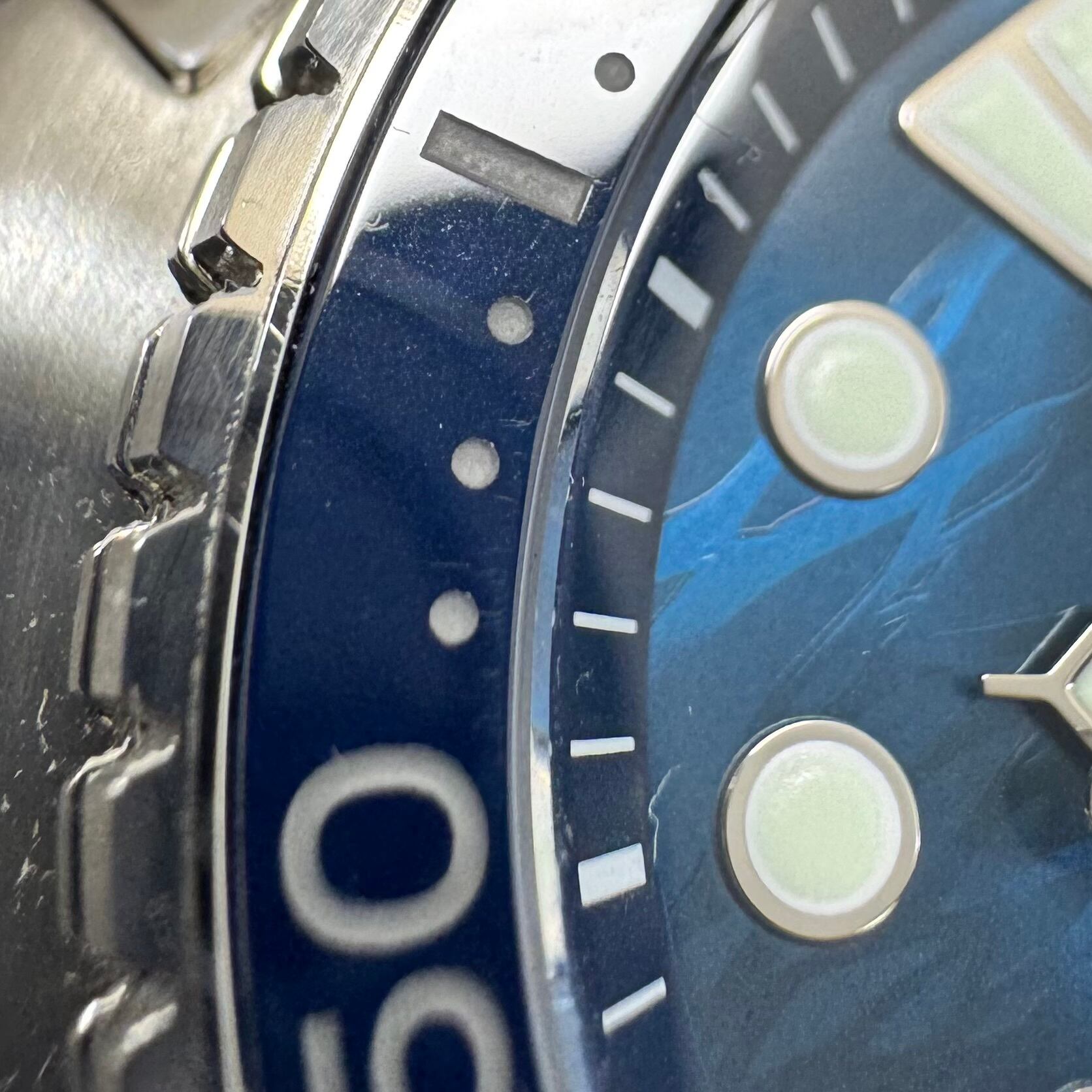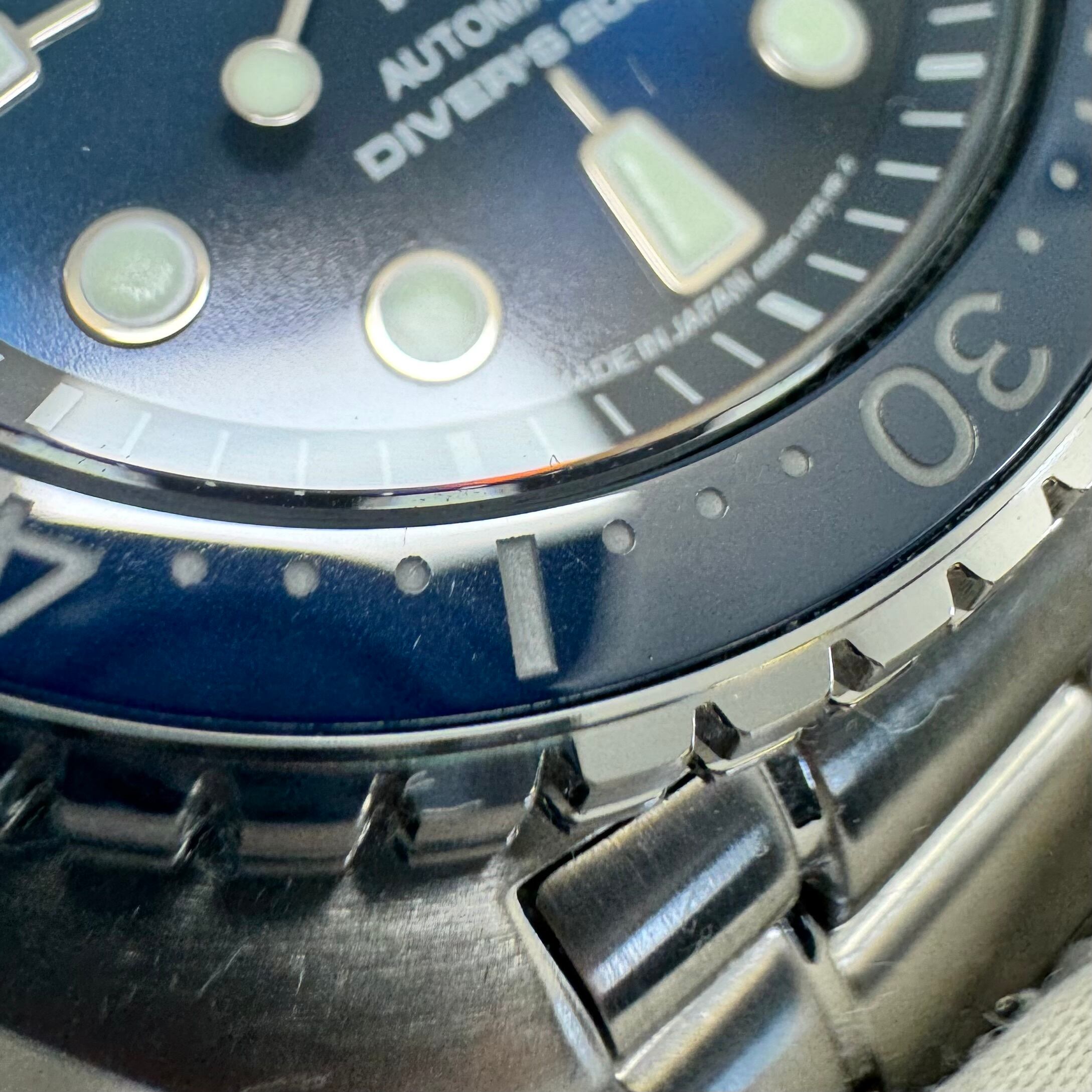 フェイス:ベゼル及びケースに極小のスレ、裏蓋にも若干のスレがあります。