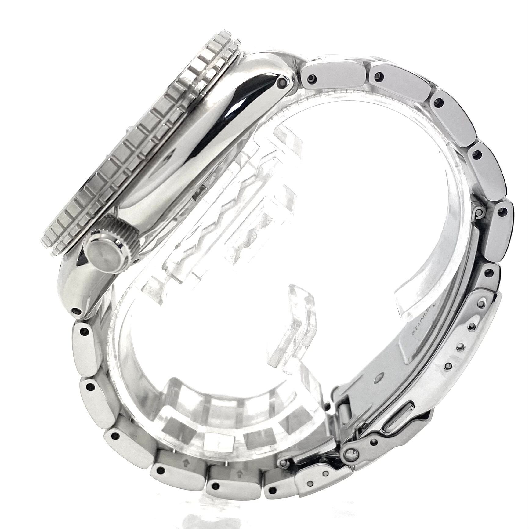仕様:ステンレス、ねじ込み式リューズ、逆回転防止ベゼル