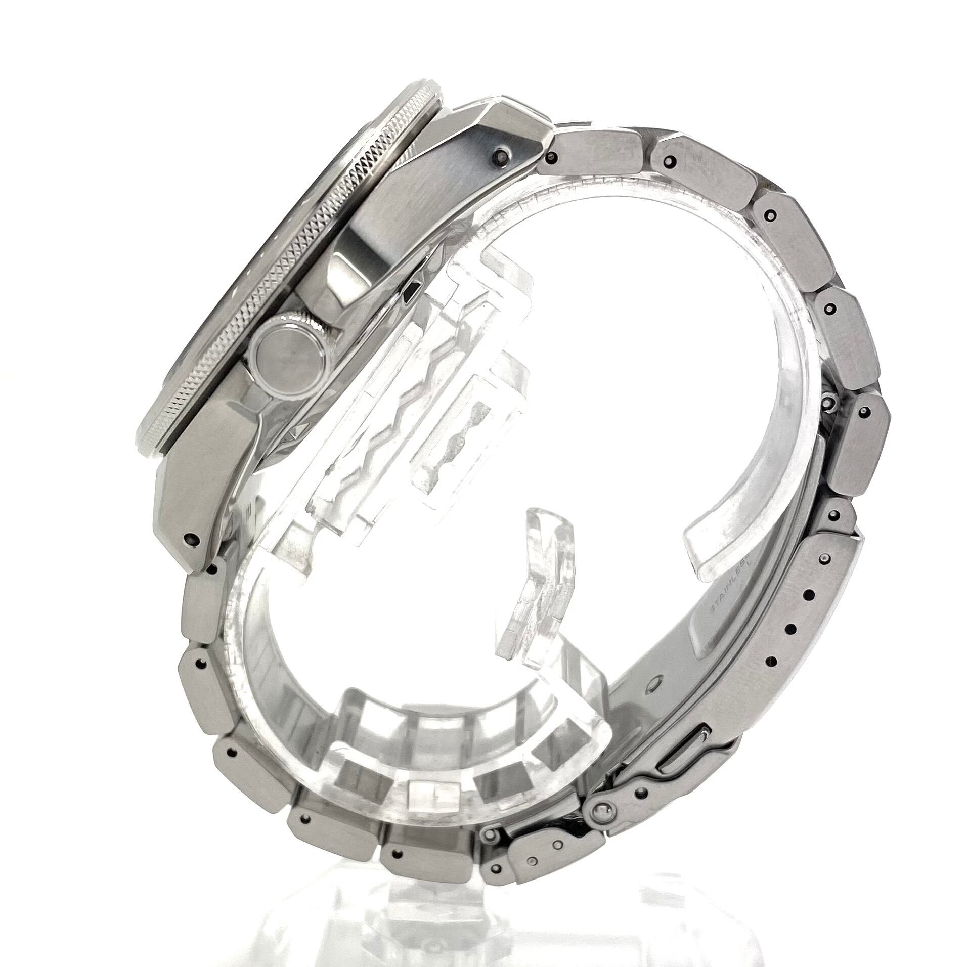 直線を基調としたソリッドなケースフォルムは、その名の通り “サムライの刀” を思わせる精悍な仕上がり。従来より一回りコンパクトな41.7mmケースで、装着性・視認性・存在感のバランスが絶妙に整えられています。