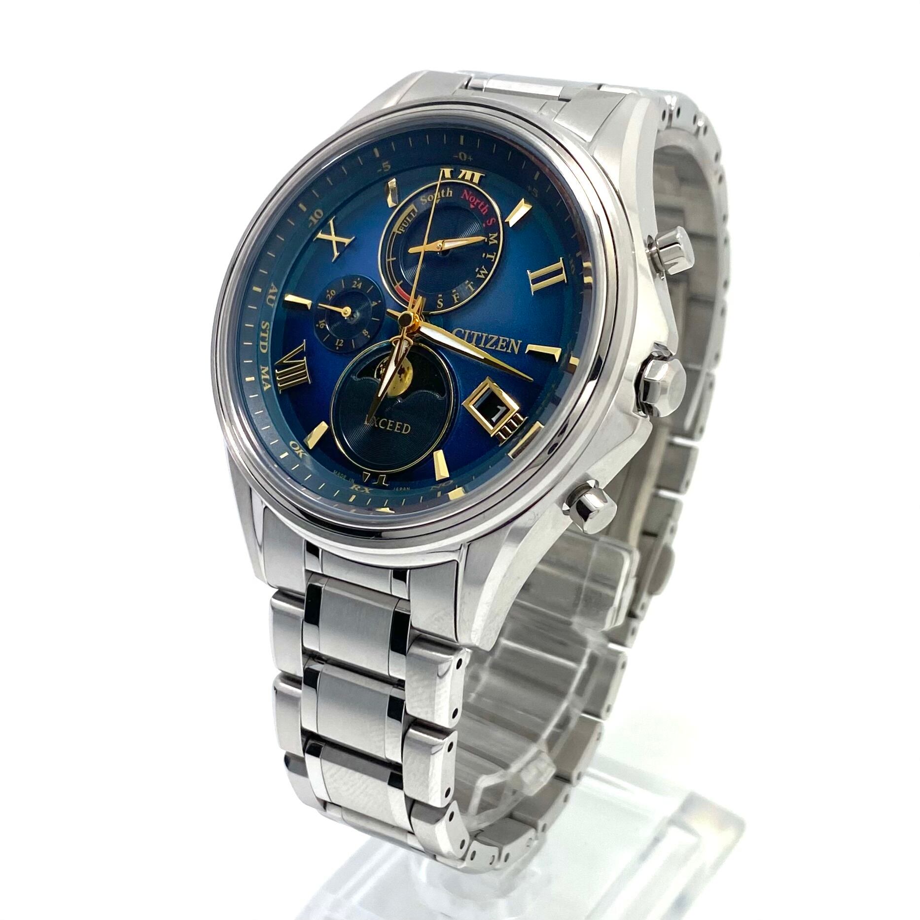 【美品】腕時計 メンズ シチズン CITIZEN エクシード BY1020-61W H874-004JJ01 蛍火の夜 限定450本 ブルー エコドライブ ムーンフェイズ ルナプログラム チタニウム デイト表示