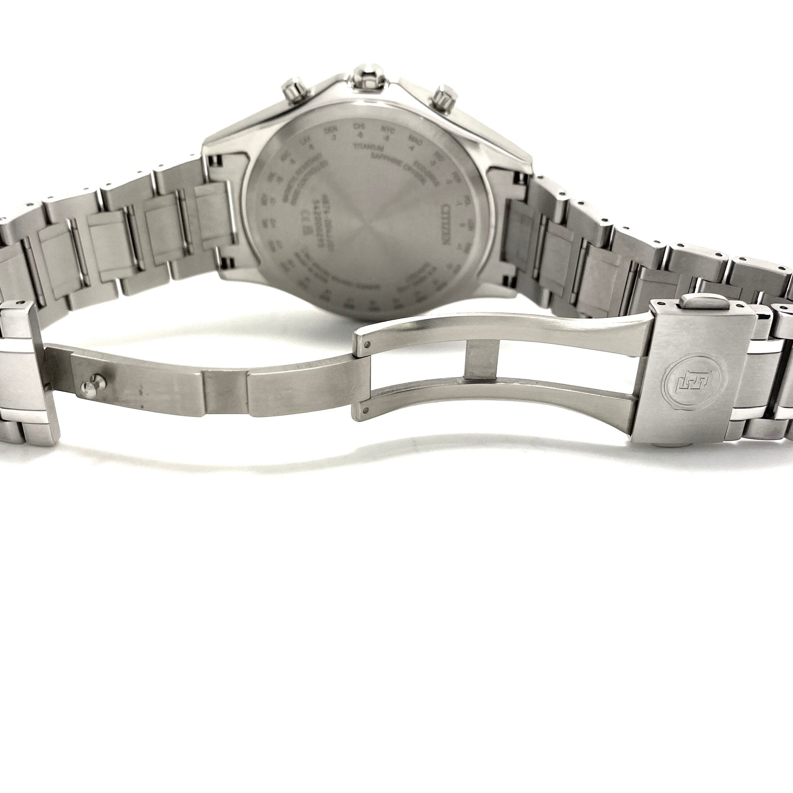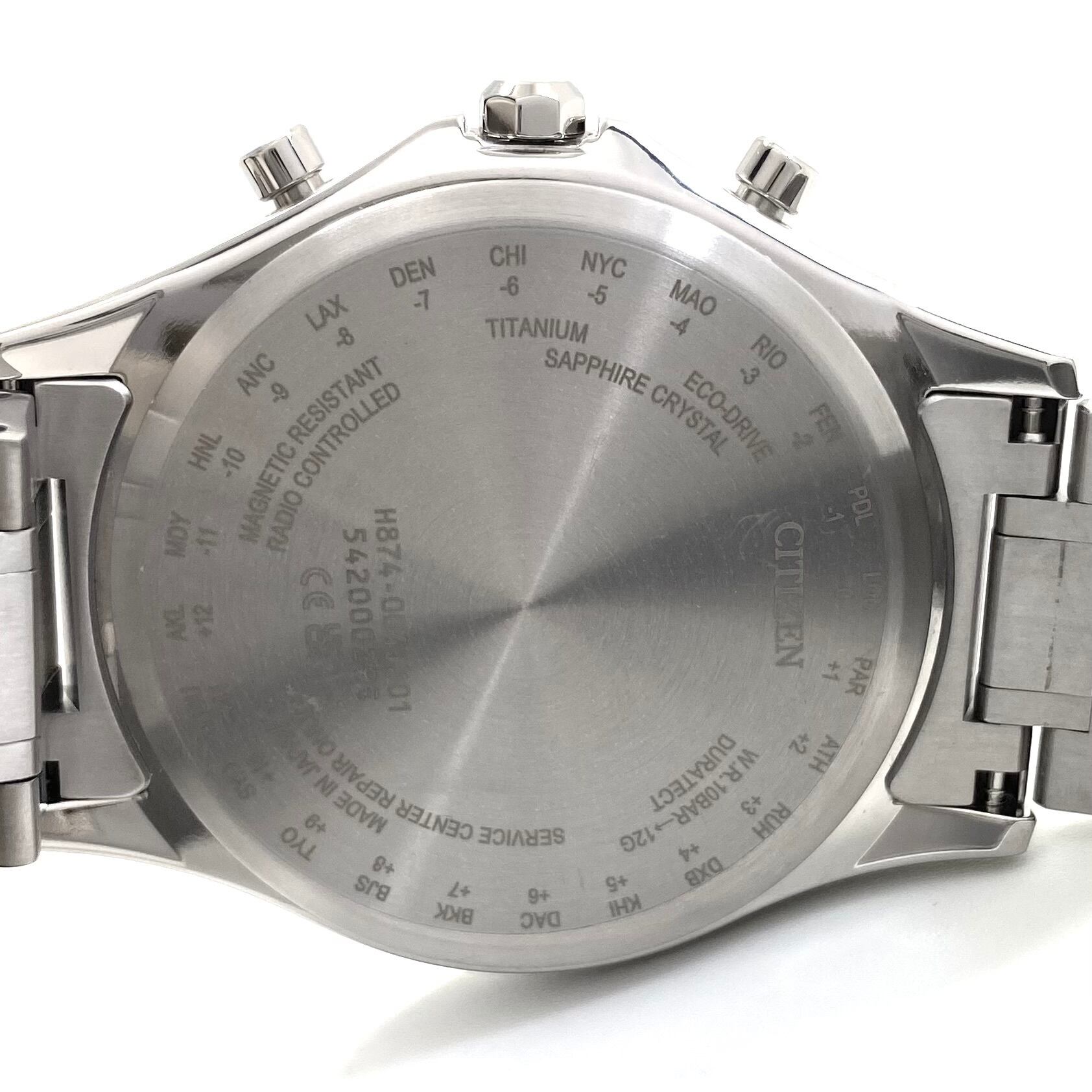 ムーブメントには信頼性の高いエコ・ドライブ電波時計(H874)を搭載し、定期的な電池交換は不要。ワールドタイム、パーペチュアルカレンダー、ムーンフェイズなど、多彩な機能をスマートなデザインに集約しています。