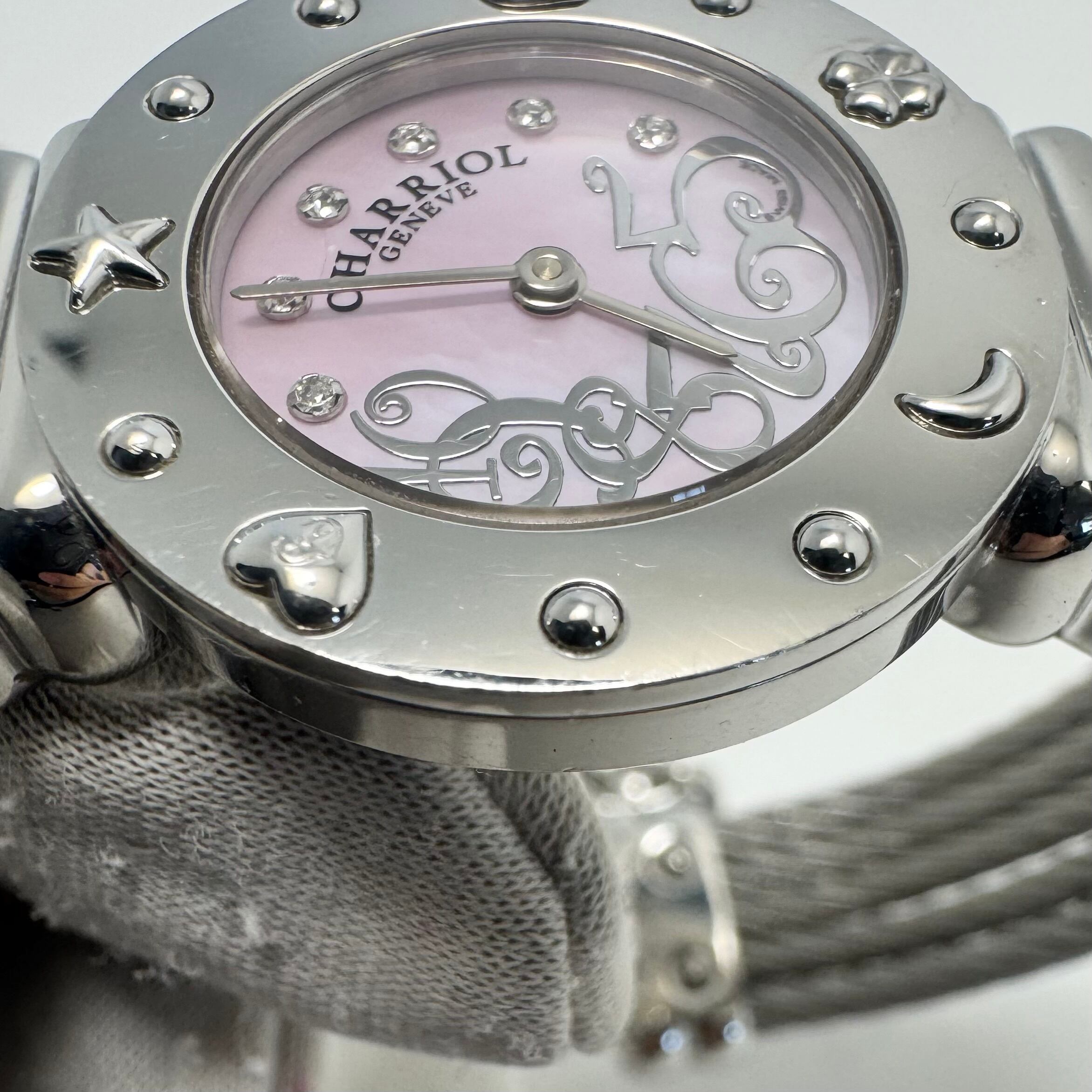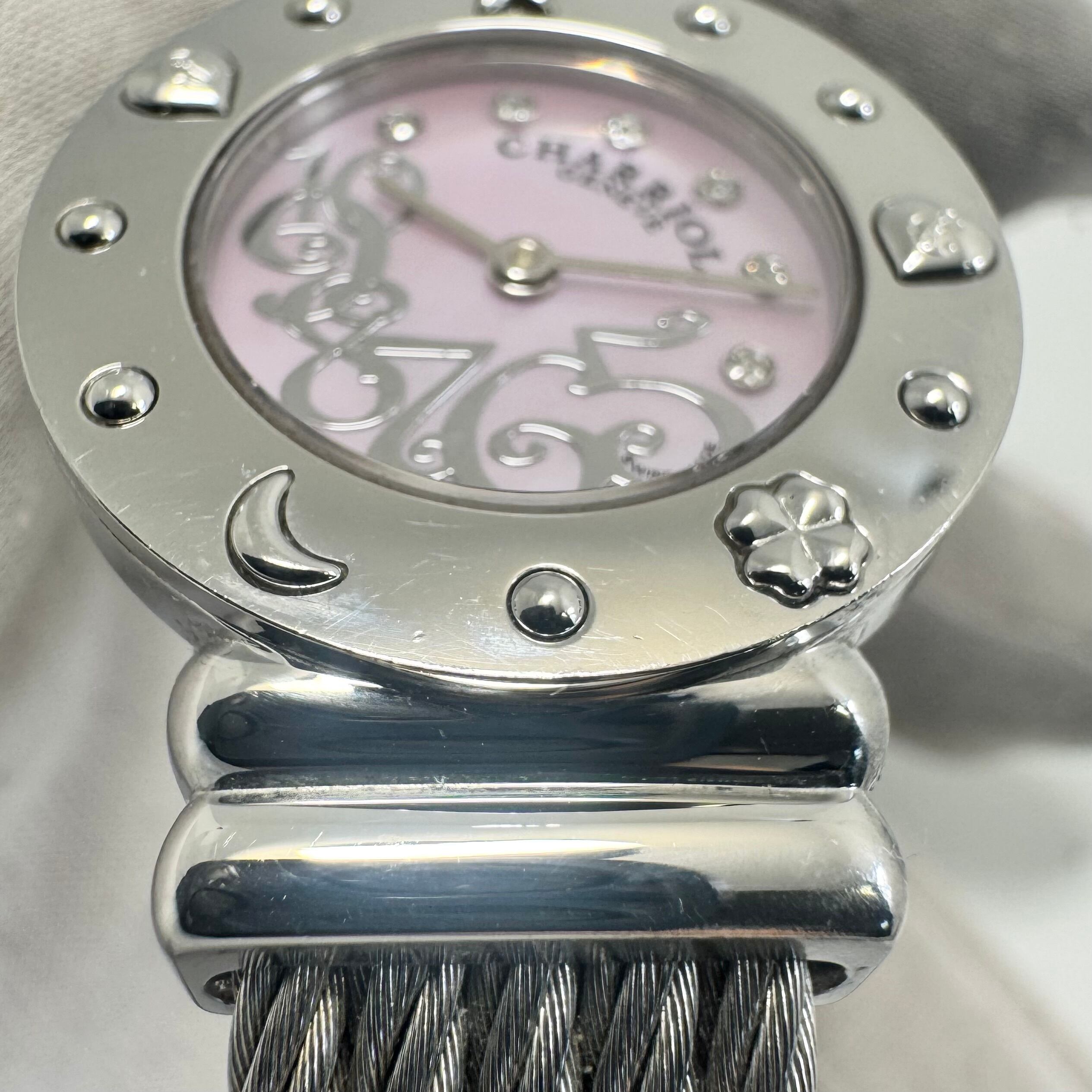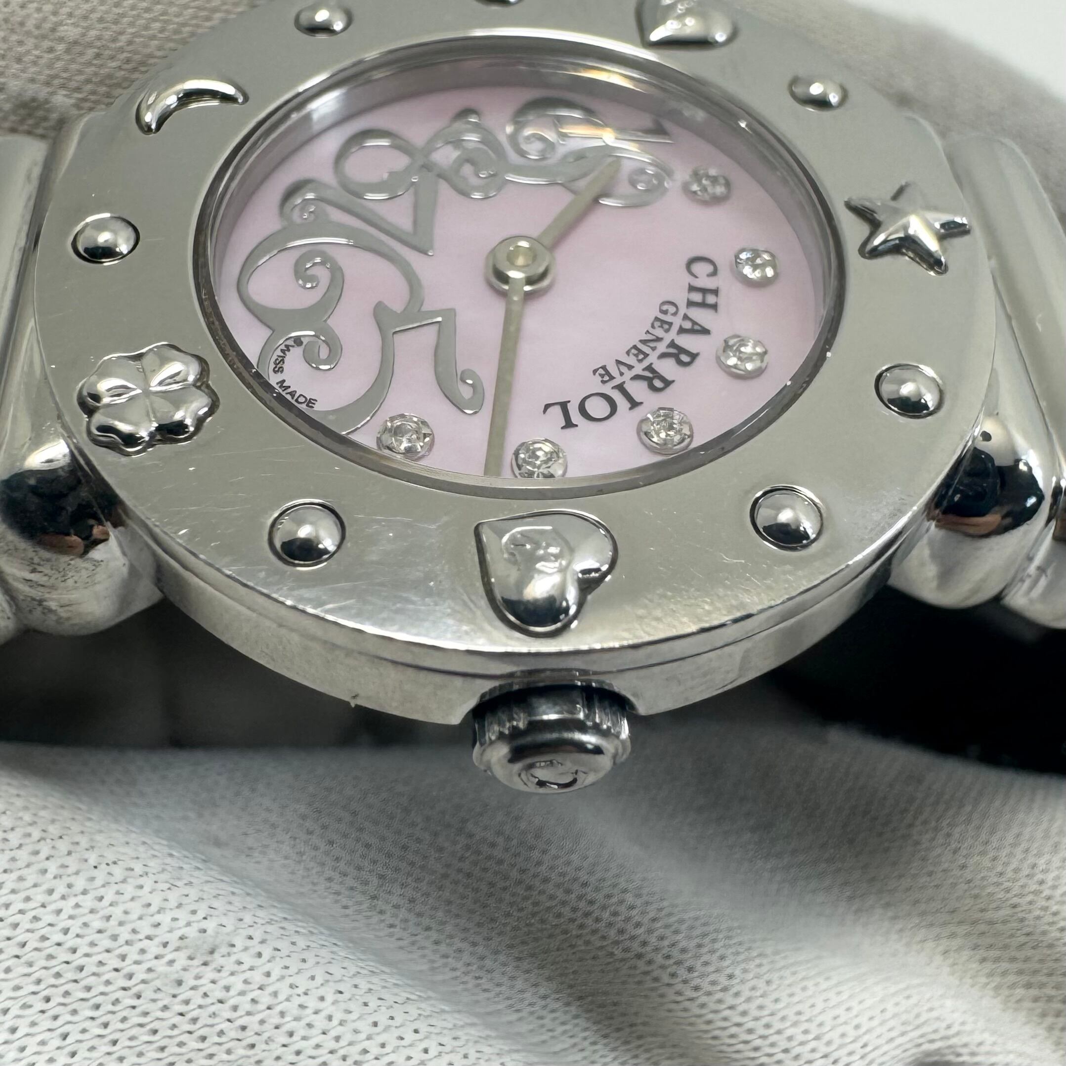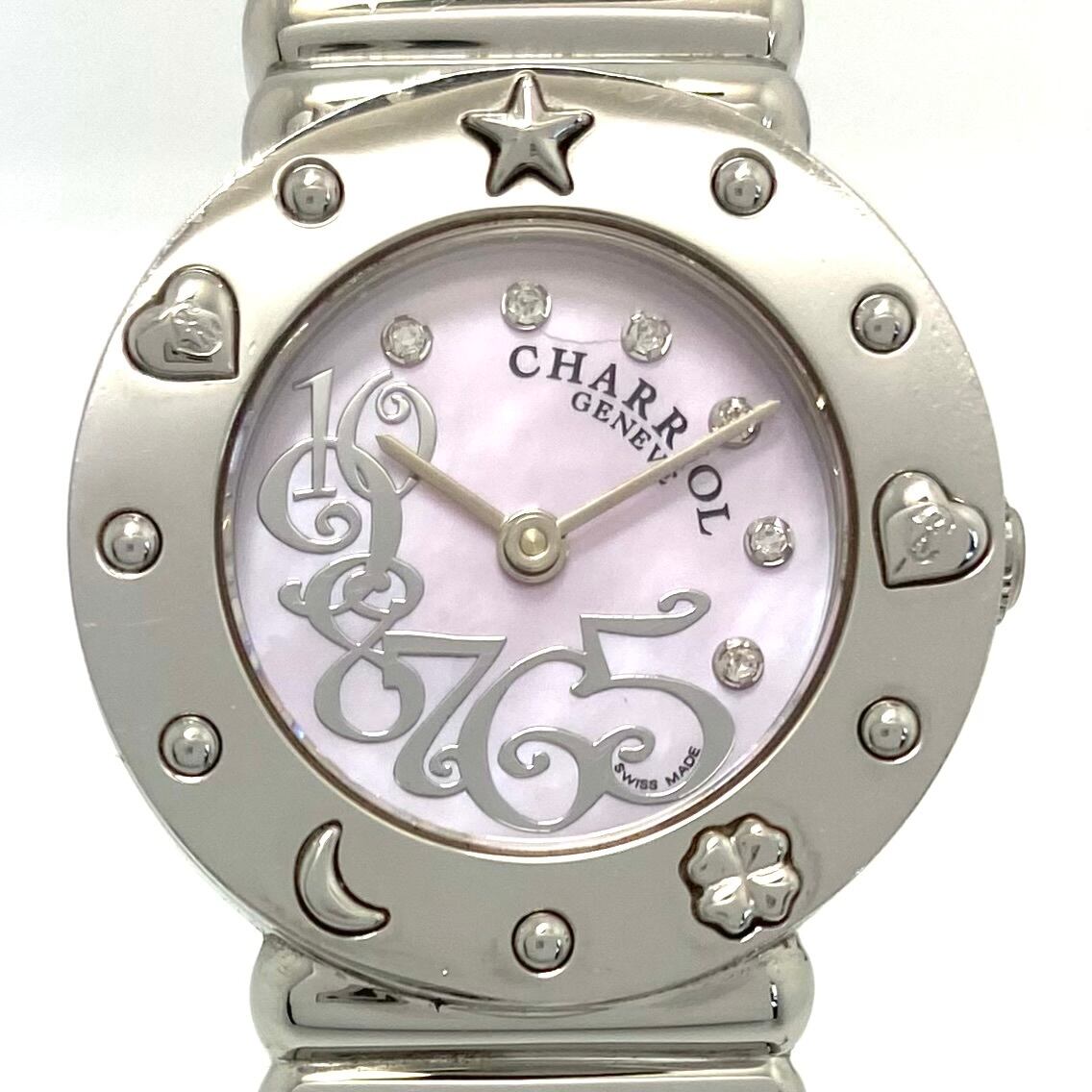 フィリップシャリオール PHILIPPE CHARRIOL サントロペ 028/2 01983H クォーツ ピンクシェル 6P 2針 バングル チャーム