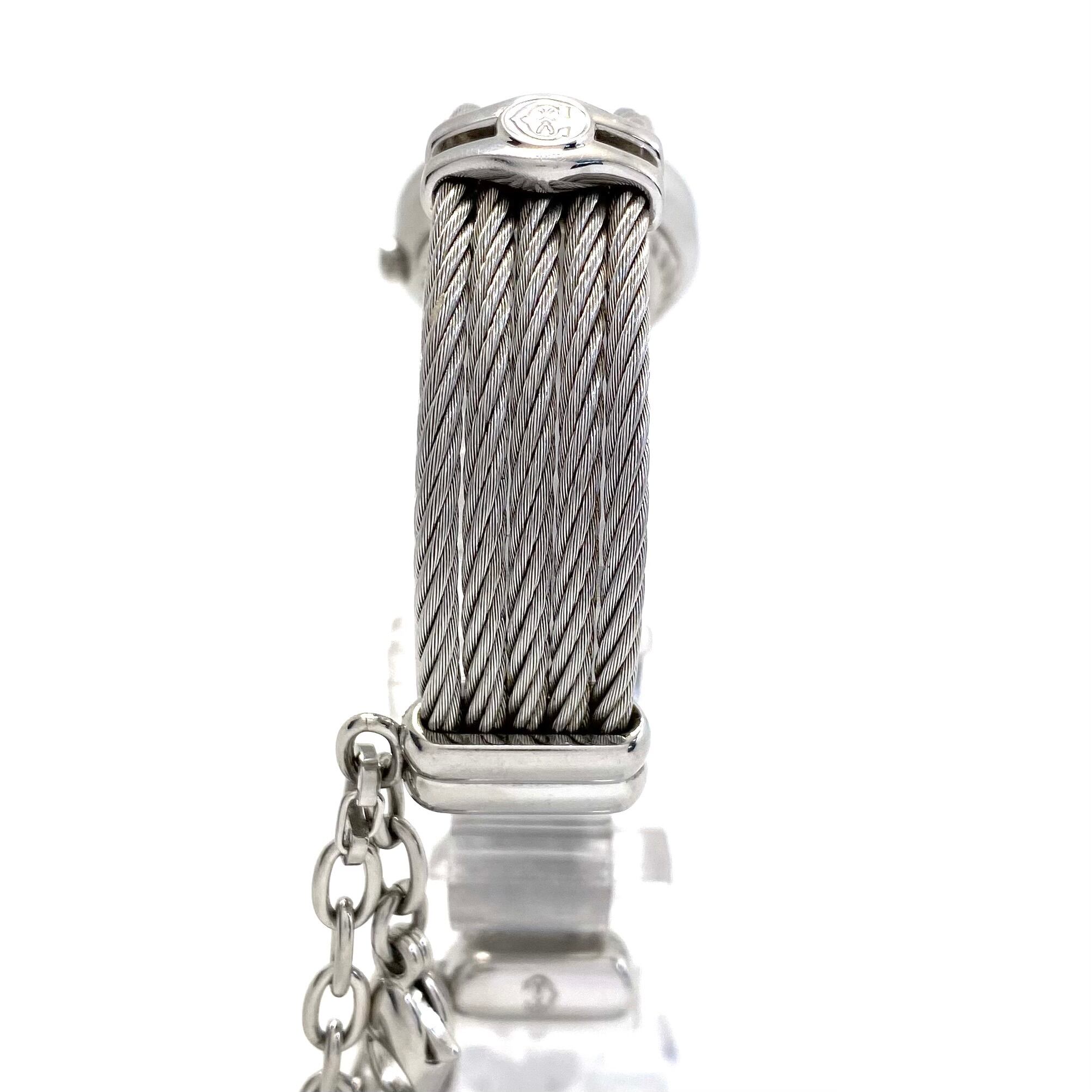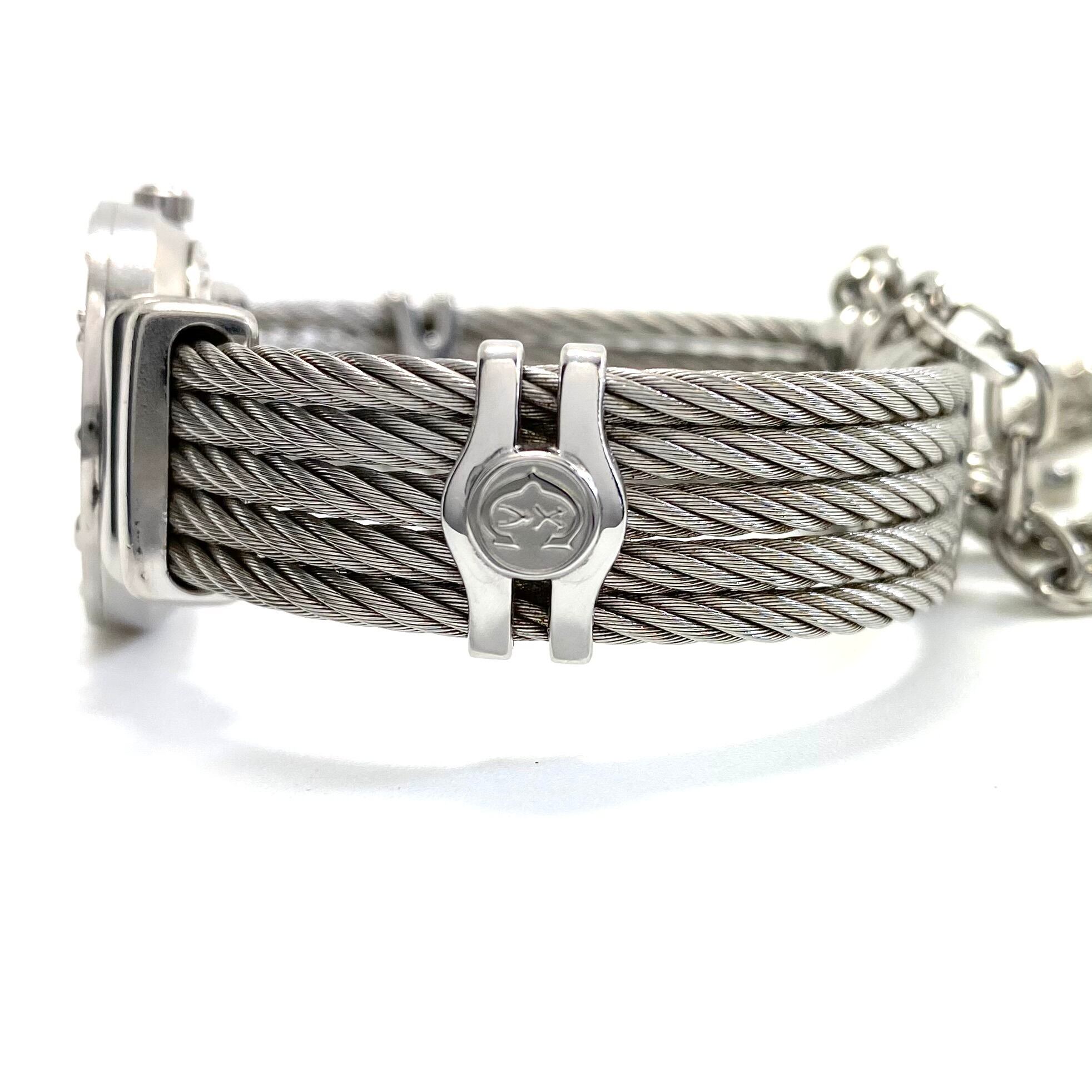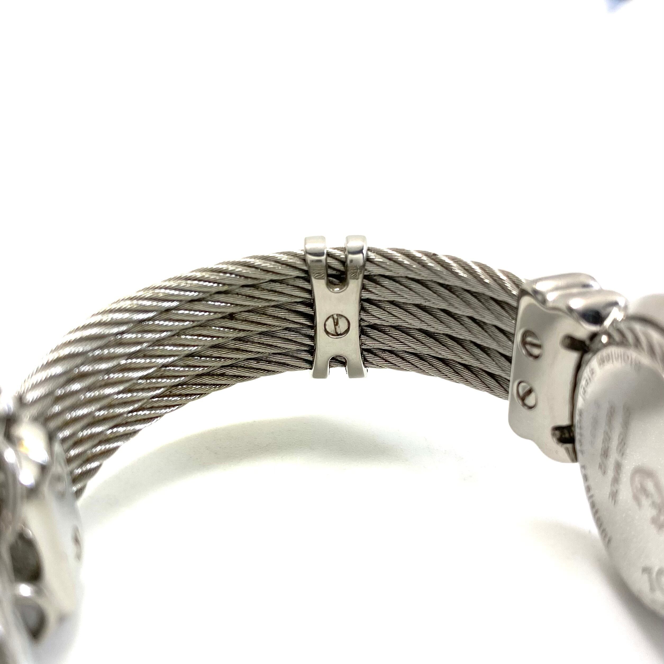 シャリオールならではのバングルブレスは、まるでブレスレットそのものを腕に纏うようなエレガントなデザイン。しなやかにフィットし、華奢な手首をより美しく見せてくれます。ベルトをつなぐチェーンにあしらわれたハートや星などのチャームがより一層女性らしさを引き立てます。