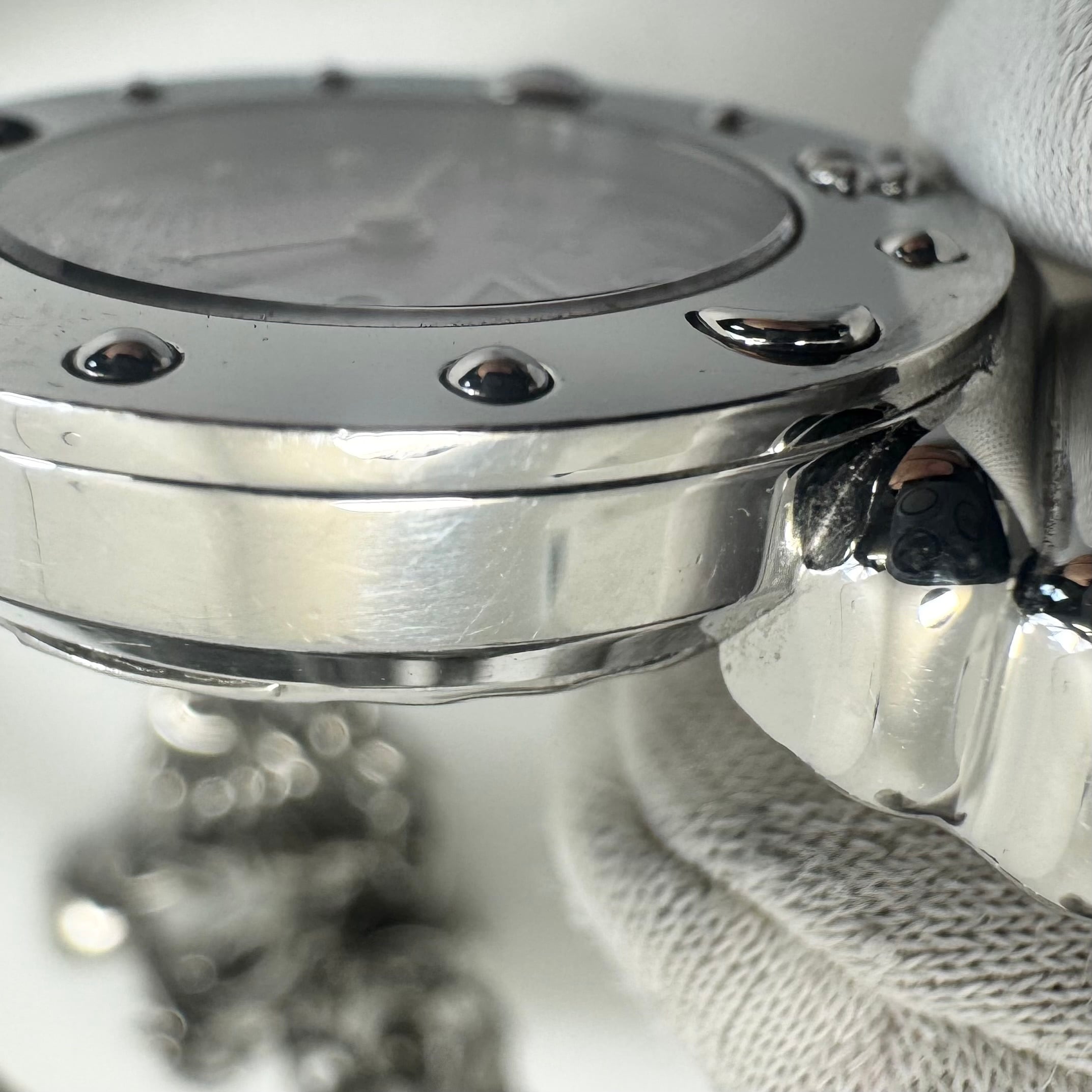 フェイス:文字盤に1箇所小傷があります。ベゼル及びケース、裏蓋にスレや傷があります。