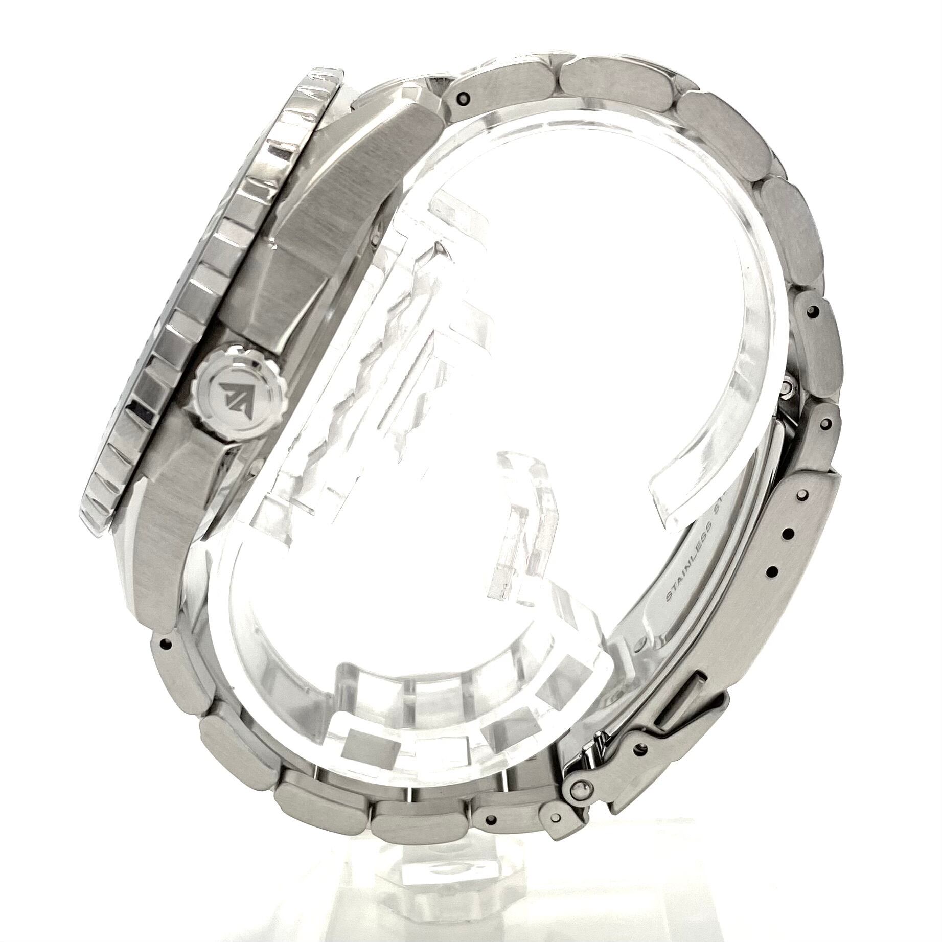 仕様:ステンレス、ねじ込み式リューズ、逆回転防止ベゼル