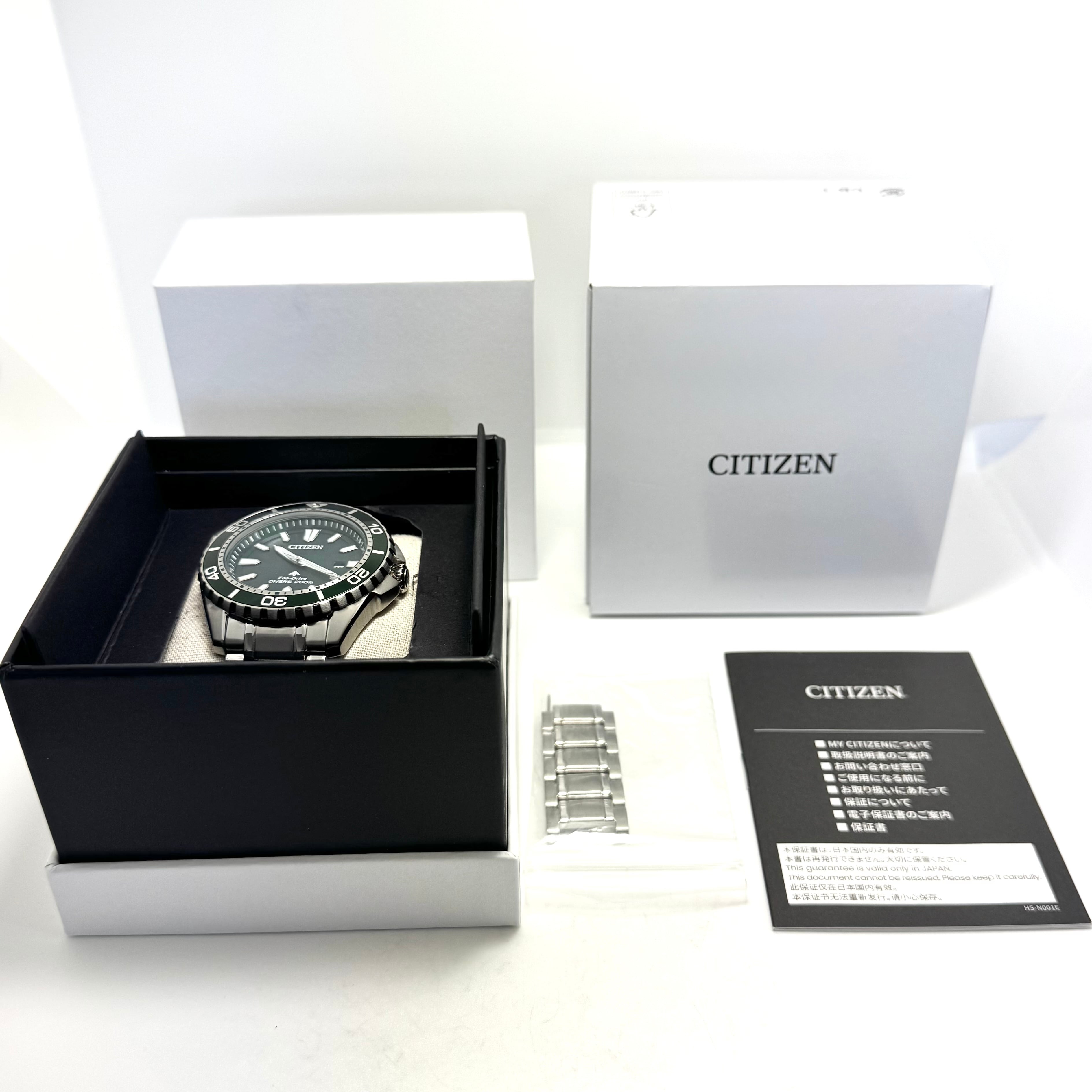 【ほぼ未使用】腕時計 メンズ シチズン CITIZEN プロマスター ダイバーズ BN0156-13W E168-003FR07 エコドライブ 緑 デイト表示 200m防水