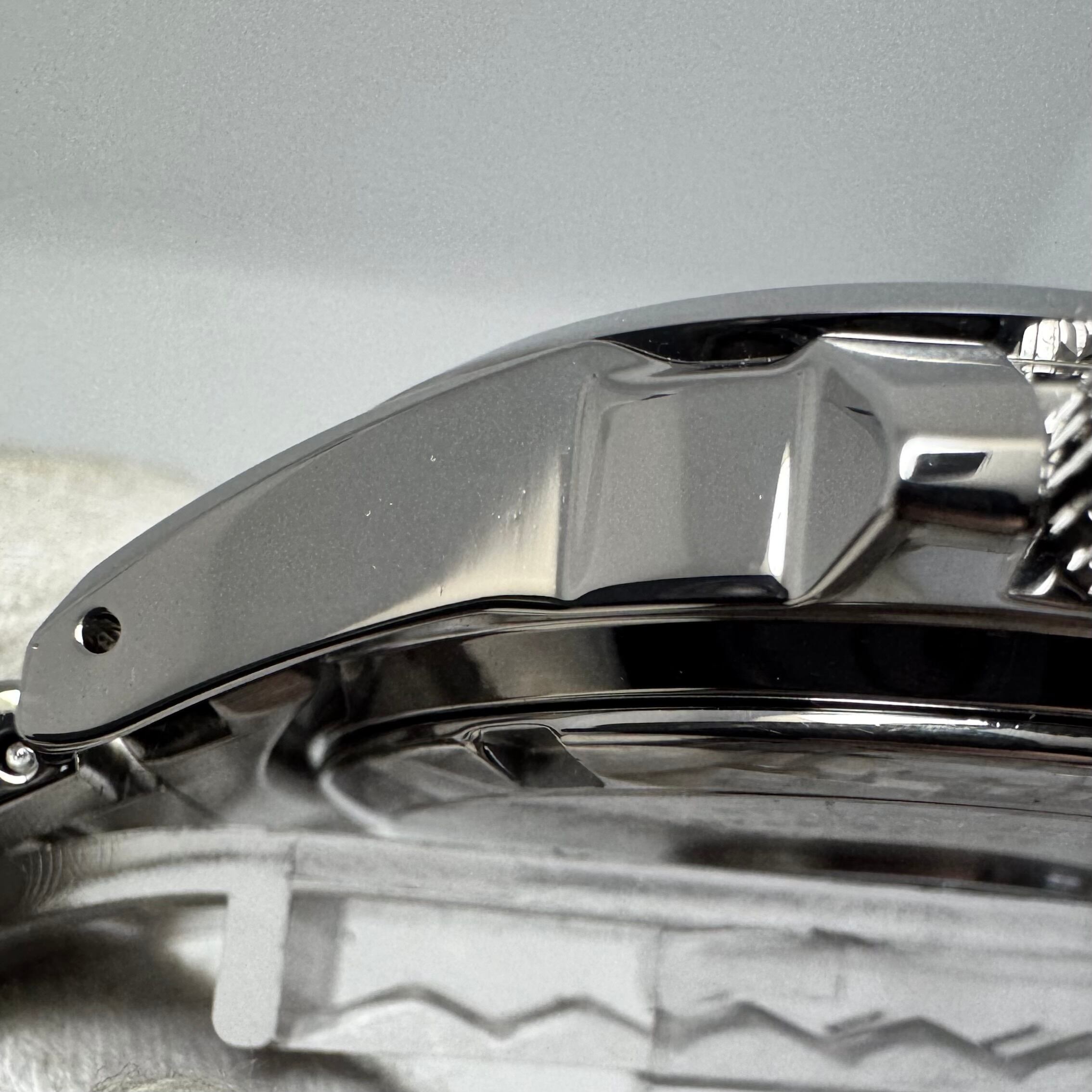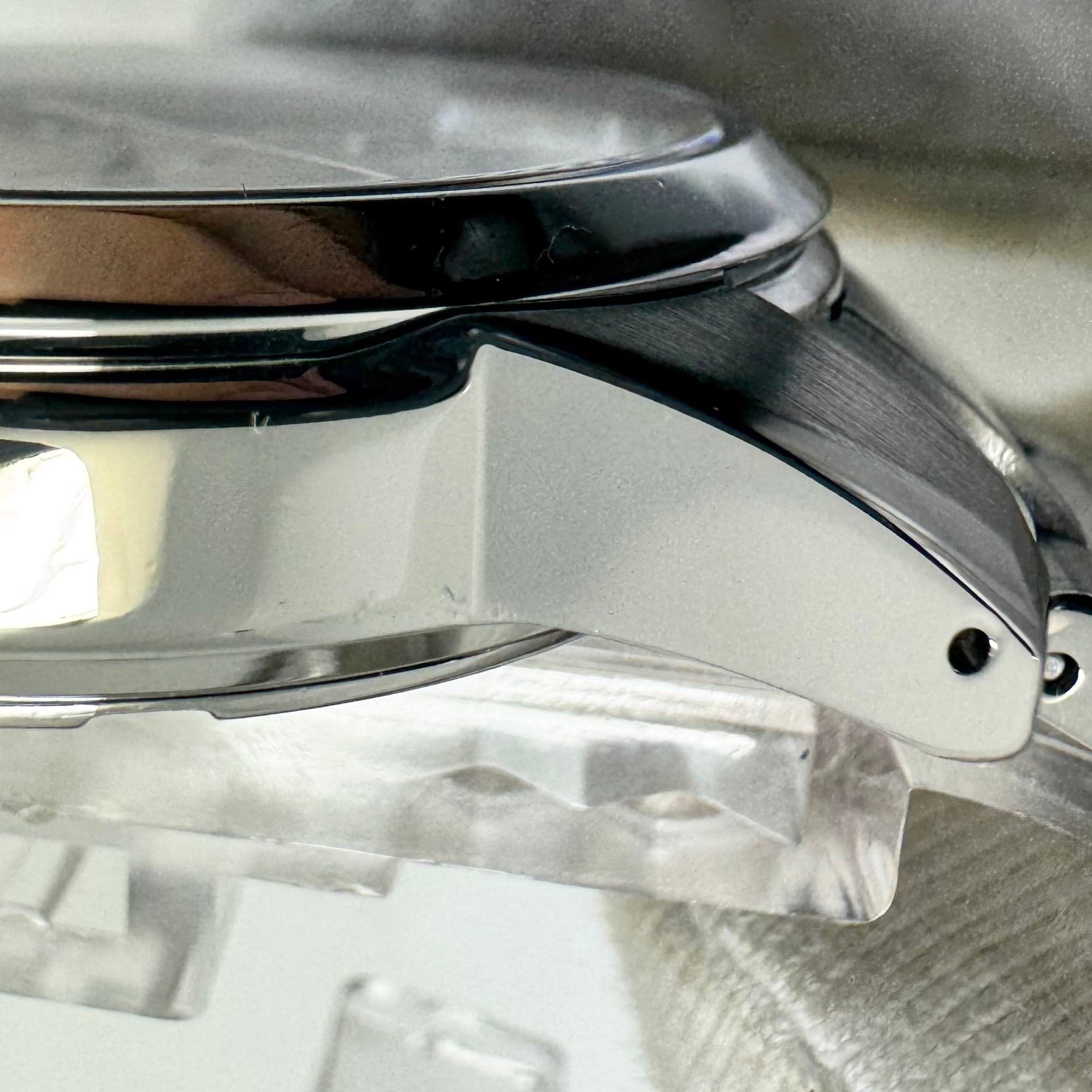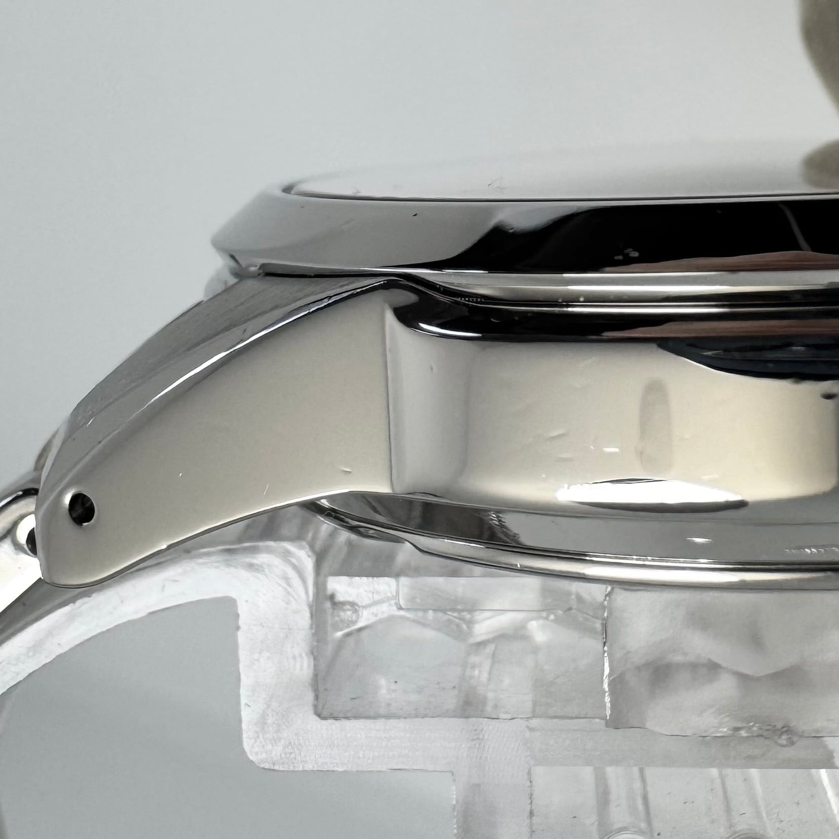 清潔感のあるホワイトダイヤルに、パワーリザーブ表示と日付表示を備えた実用性の高い一本。ケースにはザラツ研磨が施され、シンプルながらも高級感をしっかり感じられる仕上がりです。また現在では生産終了しており、流通も少ない希少な人気モデルとなっています。