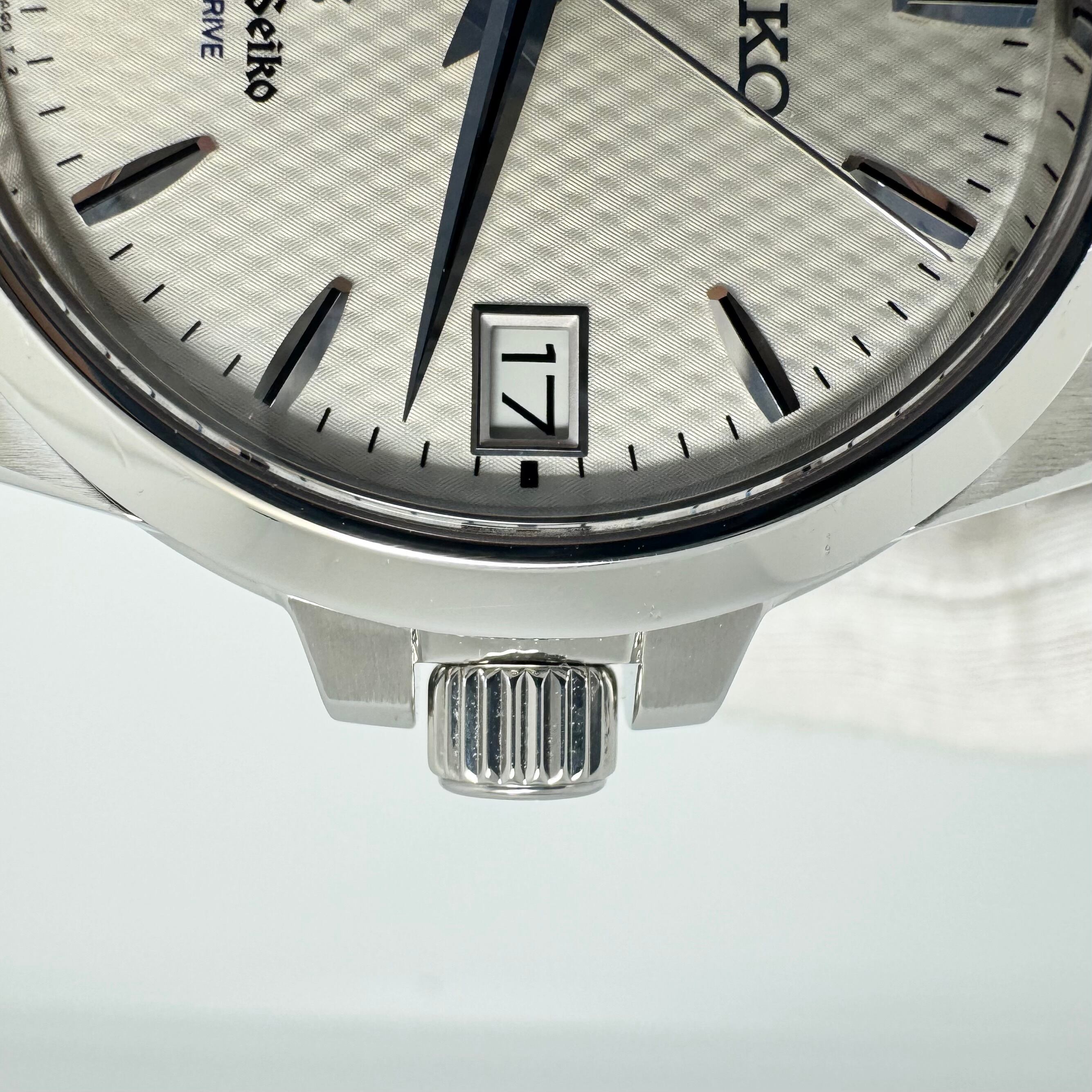 機械式時計の動力を持ちながら、クォーツ制御による高精度を実現したセイコー独自のスプリングドライブムーブメントを搭載。秒針はクォーツのような滑らかなスイープ運針となっており、他の時計では味わえない美しさがあります。