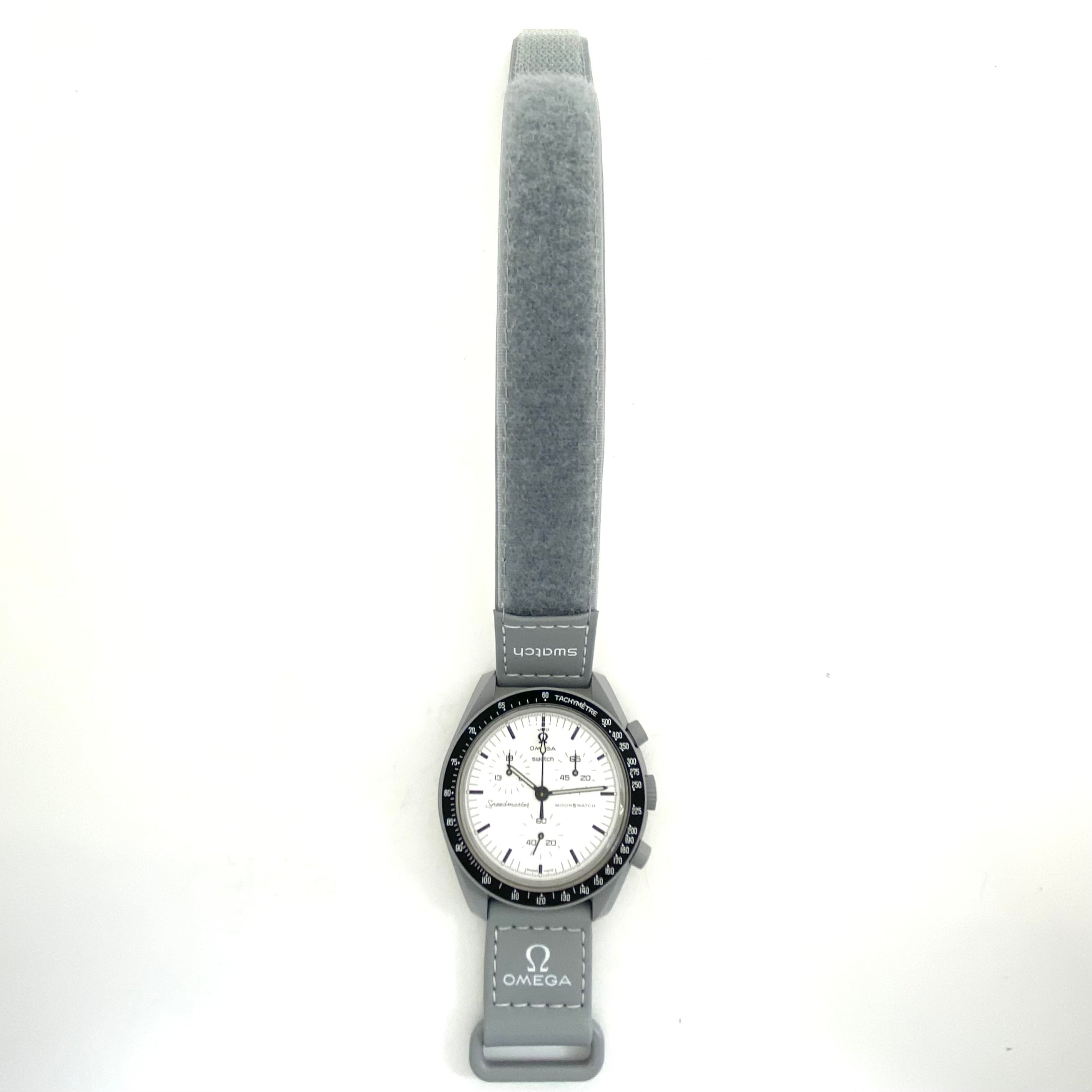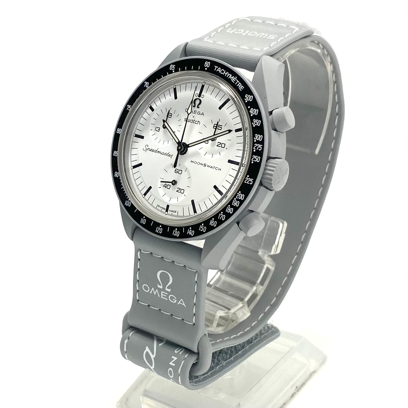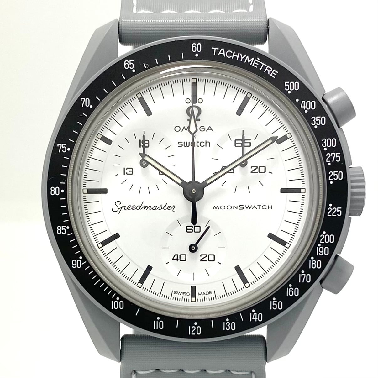 【ほぼ未使用】腕時計 メンズ オメガ オメガ×スウォッチ スピードマスター ムーンスウォッチ 1965 SO33M106 クォーツ クロノグラフ バイオセラミック タキメーター スモールセコンド 白 ナイロンベルト