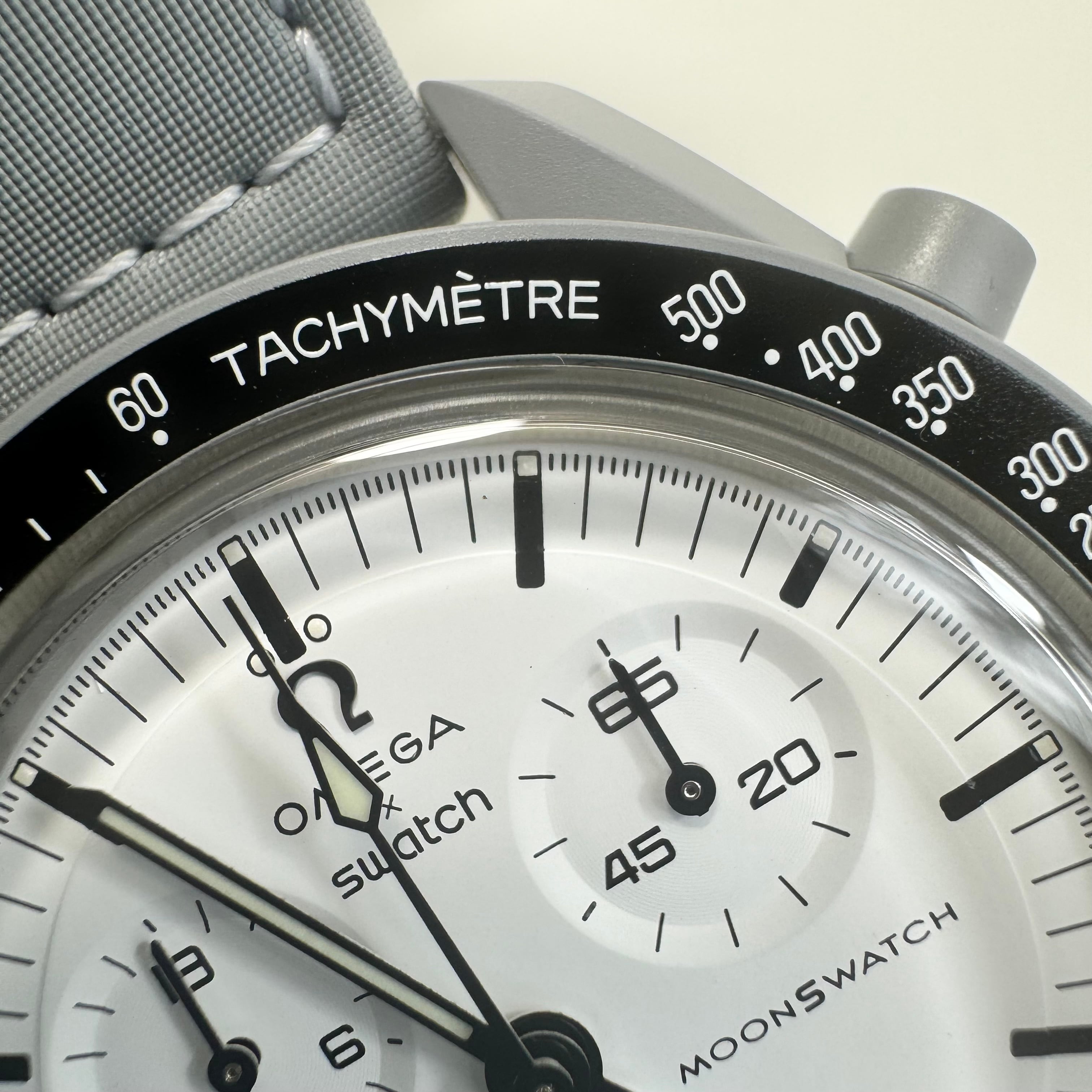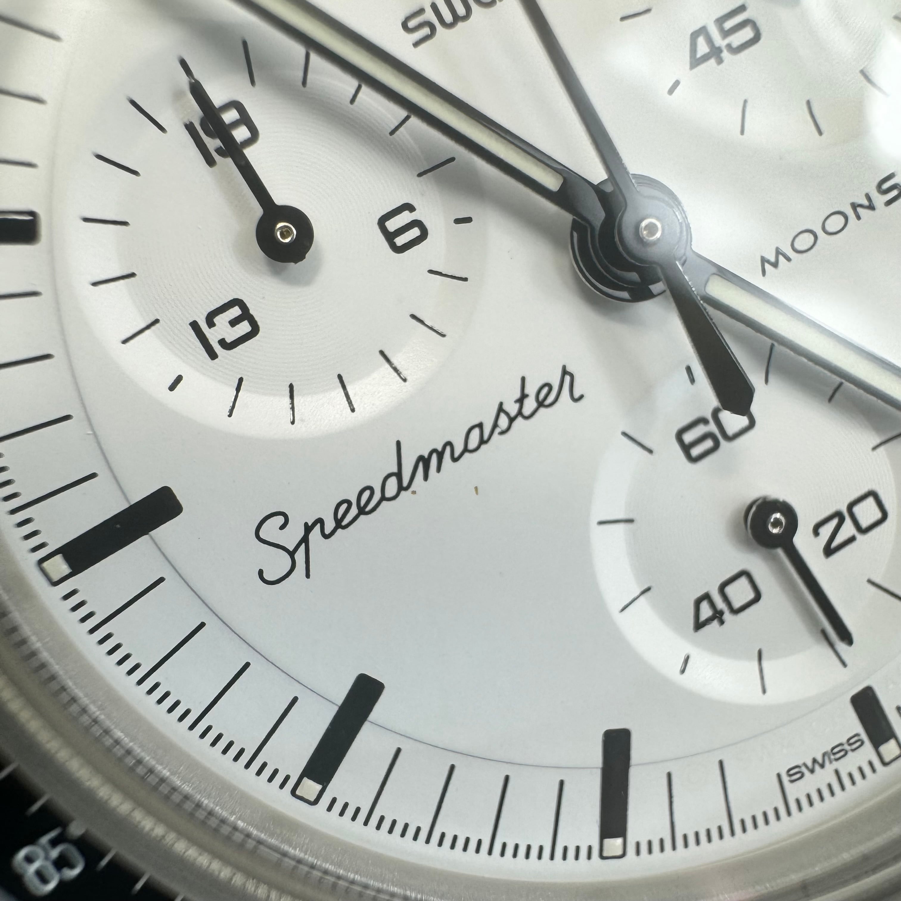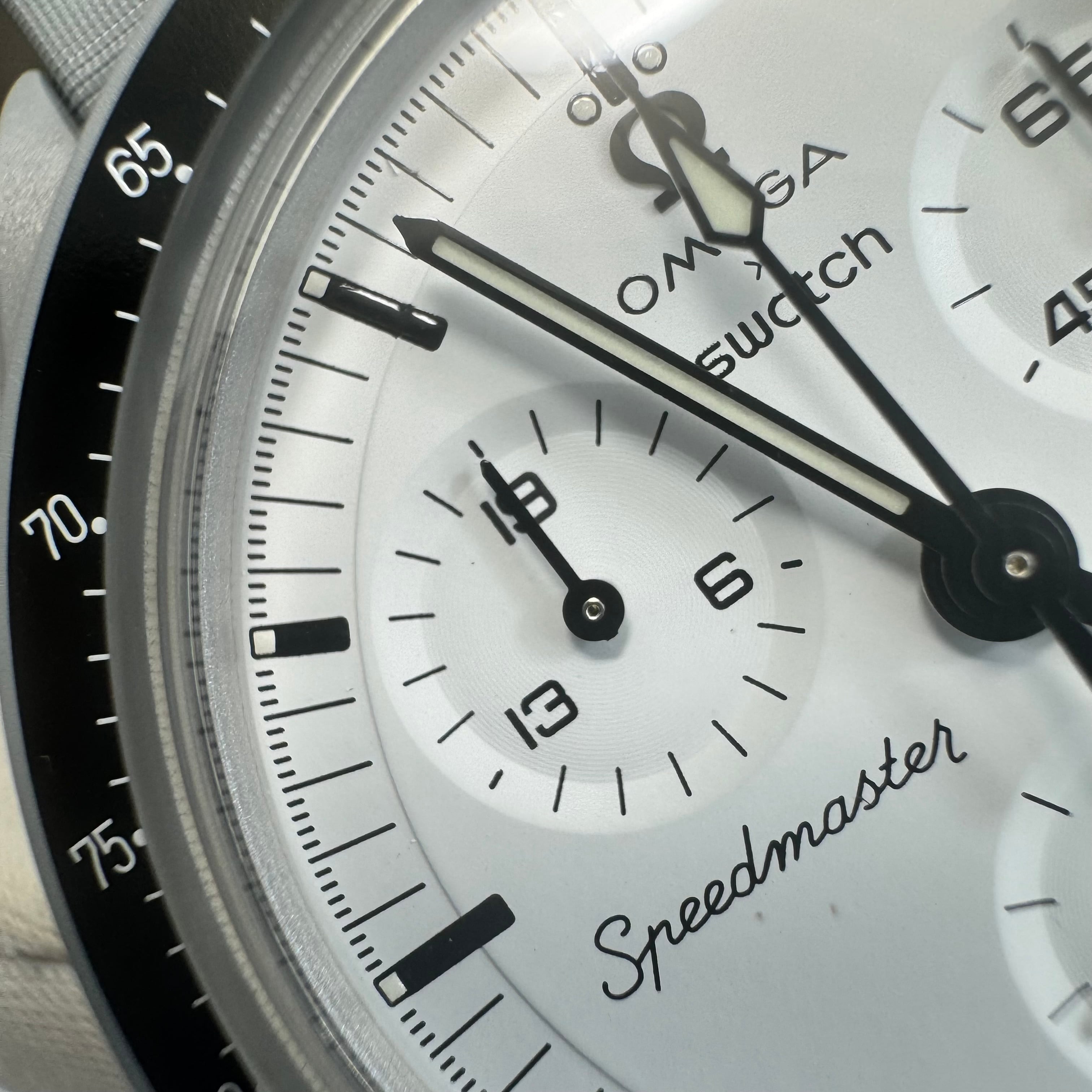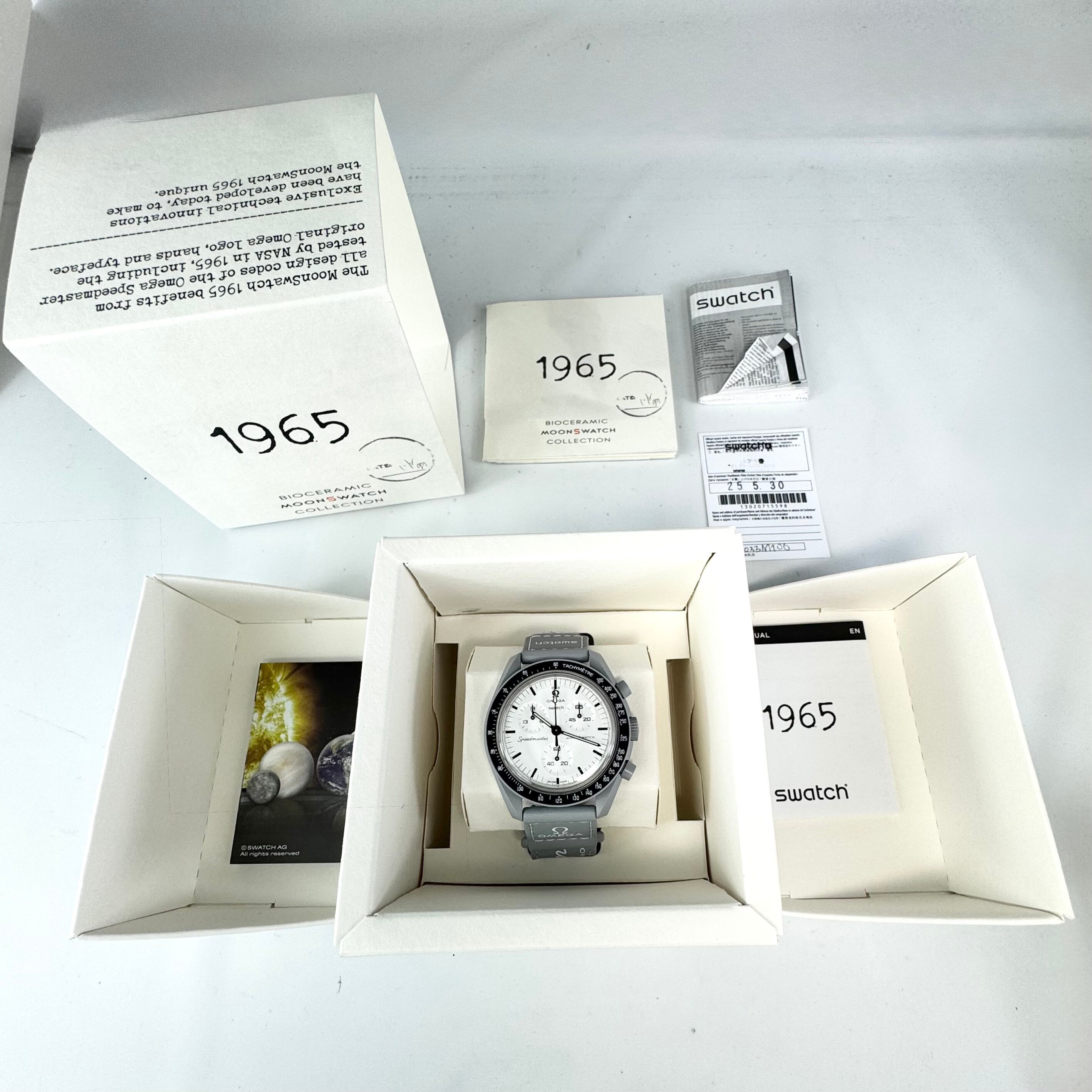 オメガ OMEGA オメガ×スウォッチ スピードマスター ムーンスウォッチ 1965 SO33M106 クォーツ クロノグラフ バイオセラミック タキメーター スモールセコンド 白 ナイロンベルト