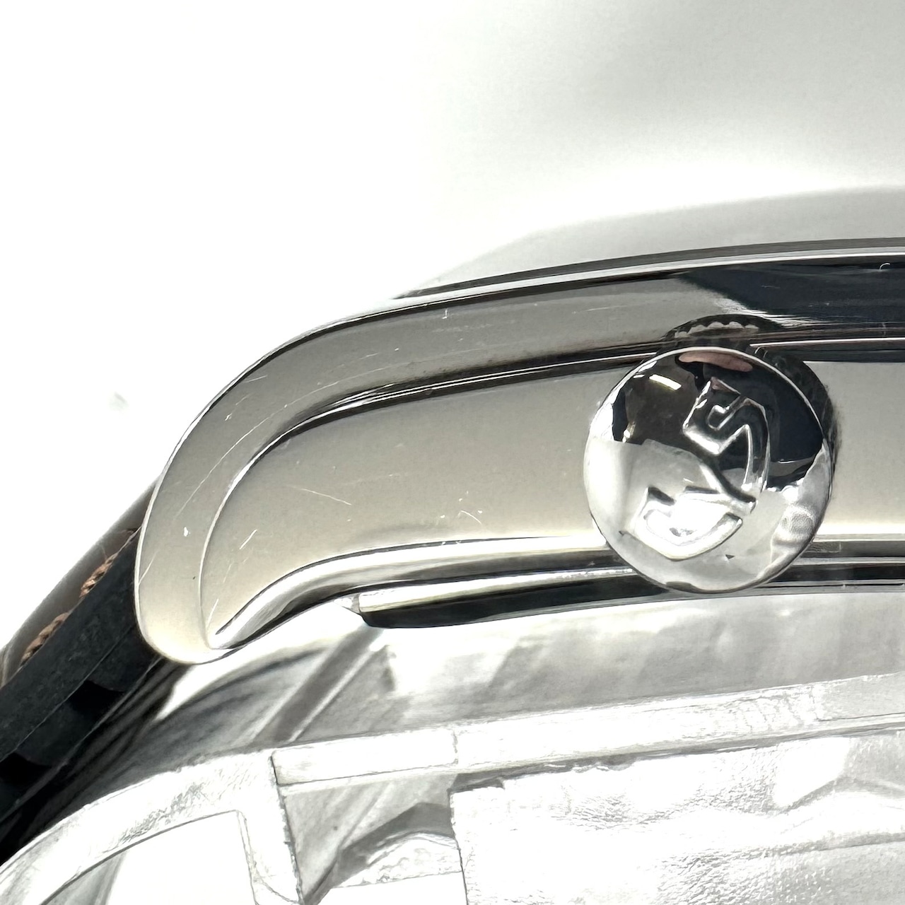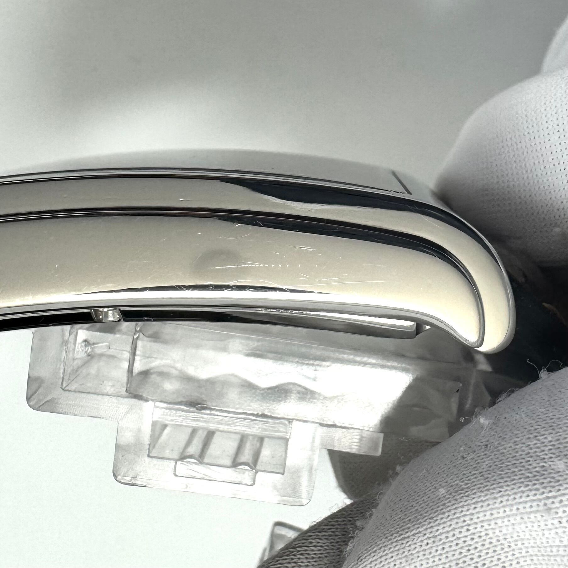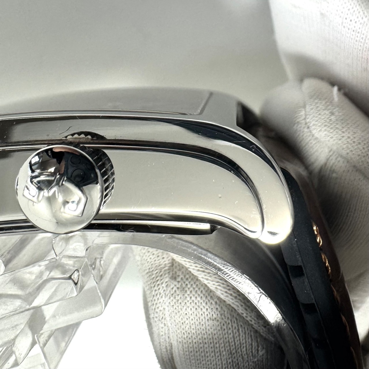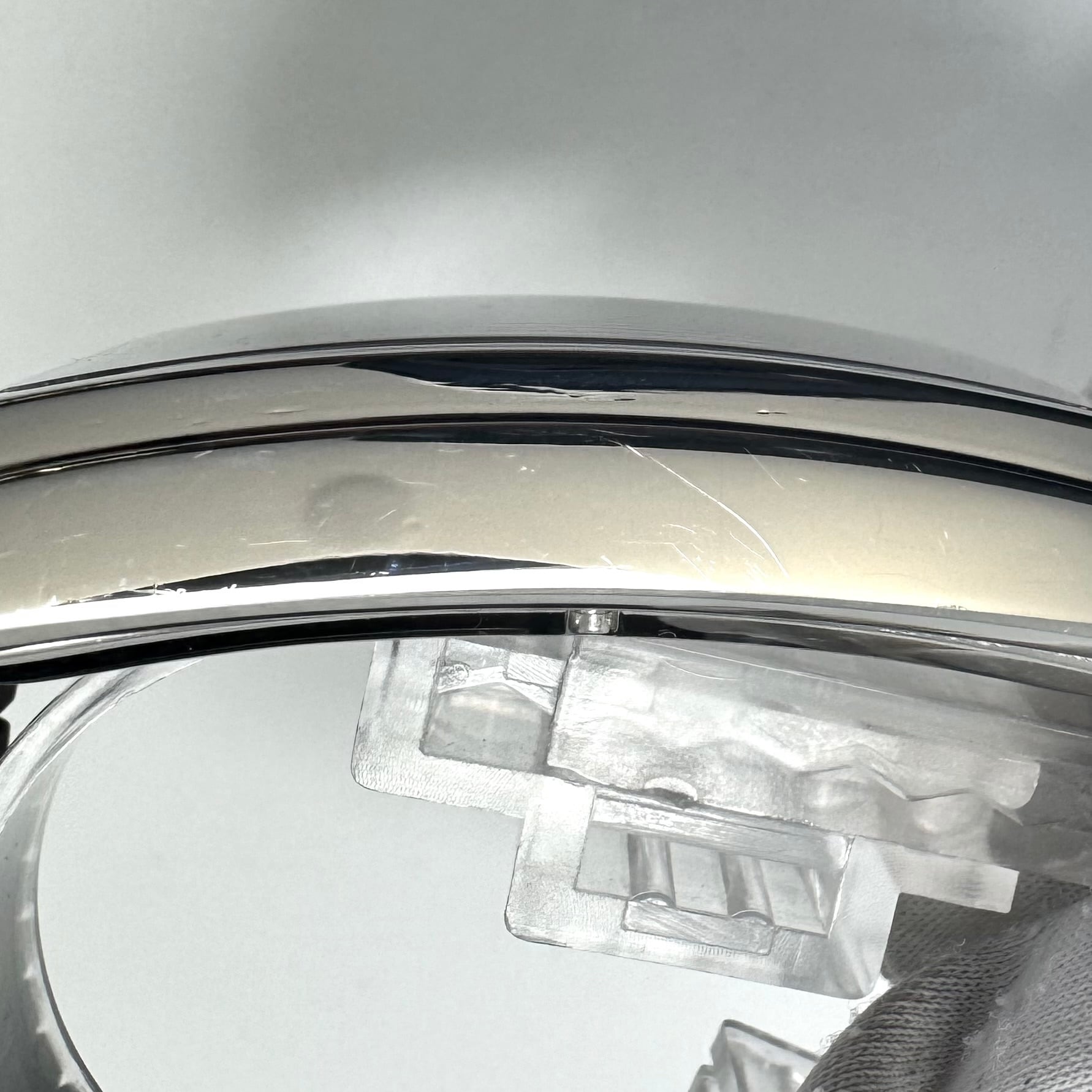 フェイス:ガラス面のふちに極小の傷、ガラス面内側にわずかなホコリがあります。ベゼル及びケース、裏蓋ステンレス部分に極小のスレがあります。