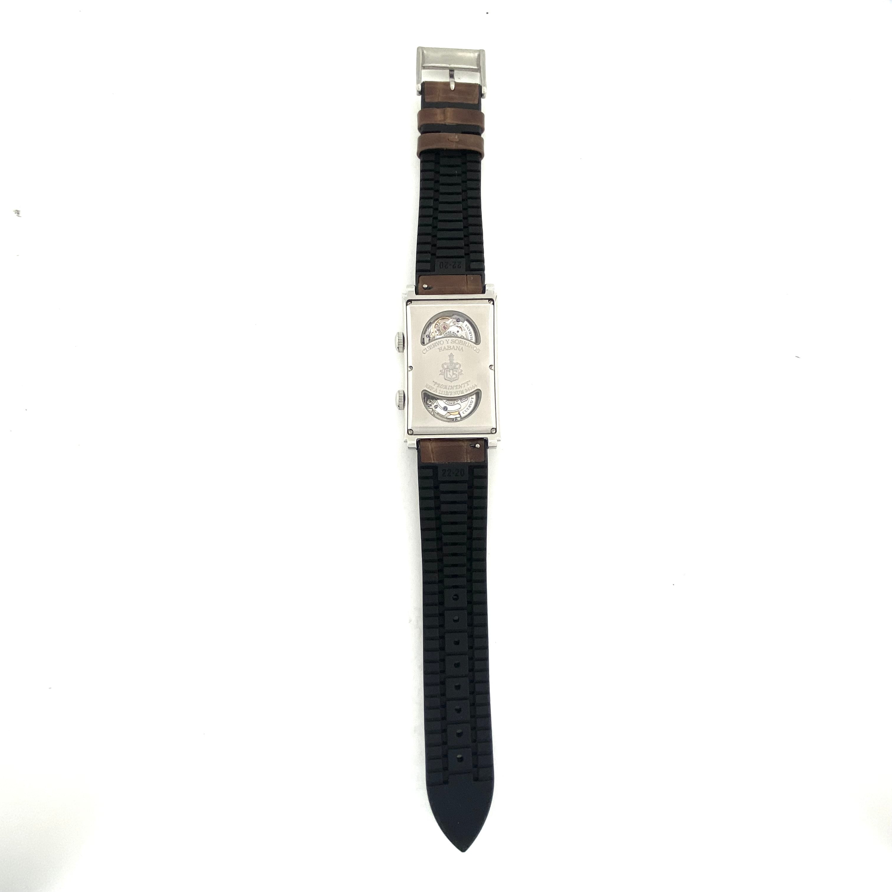 【希少・動作良好】腕時計 メンズ クエルボ イ ソブリノス CUERVO Y SOBRINOS プロミネンテ デュアルタイム A1112/2 NUM 34364 ブラウン 自動巻 レクタンギュラー 裏スケ 革 ラバーベルト