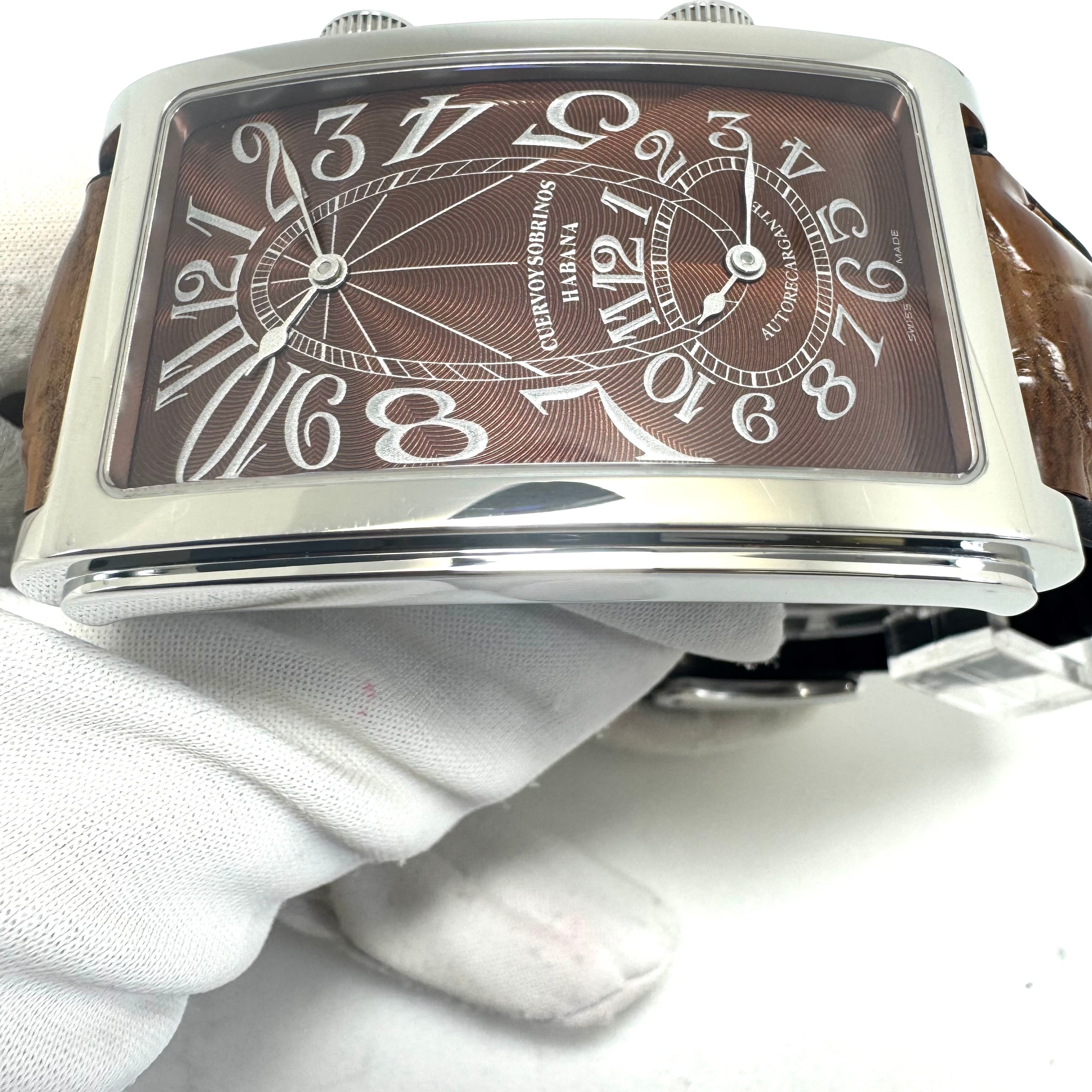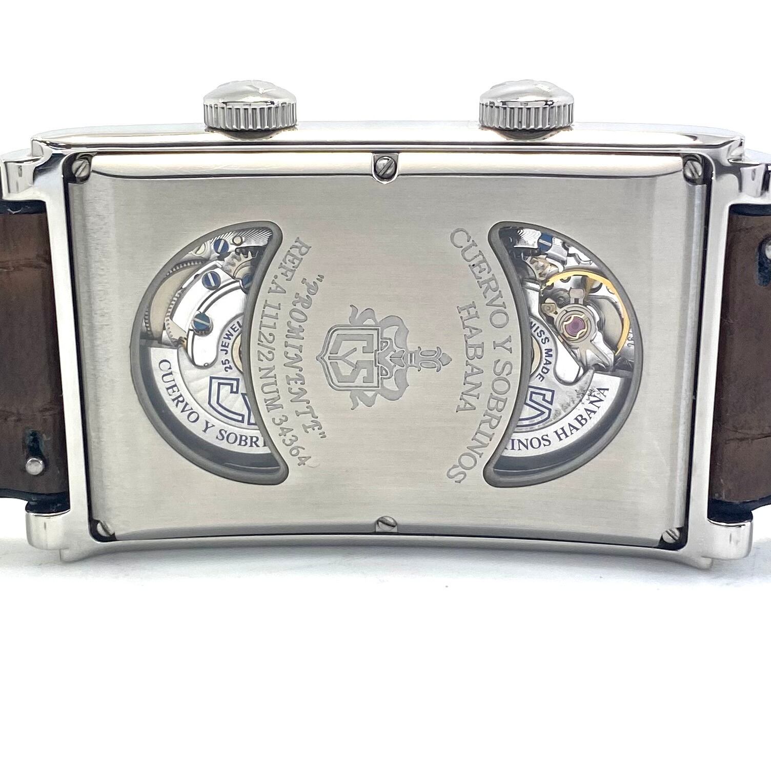 クエルボ・イ・ソブリノス CUERVO Y SOBRINOS プロミネンテ デュアルタイム A1112/2 NUM 34364 ブラウン 自動巻 レクタンギュラー 裏スケ 革/ラバーベルト