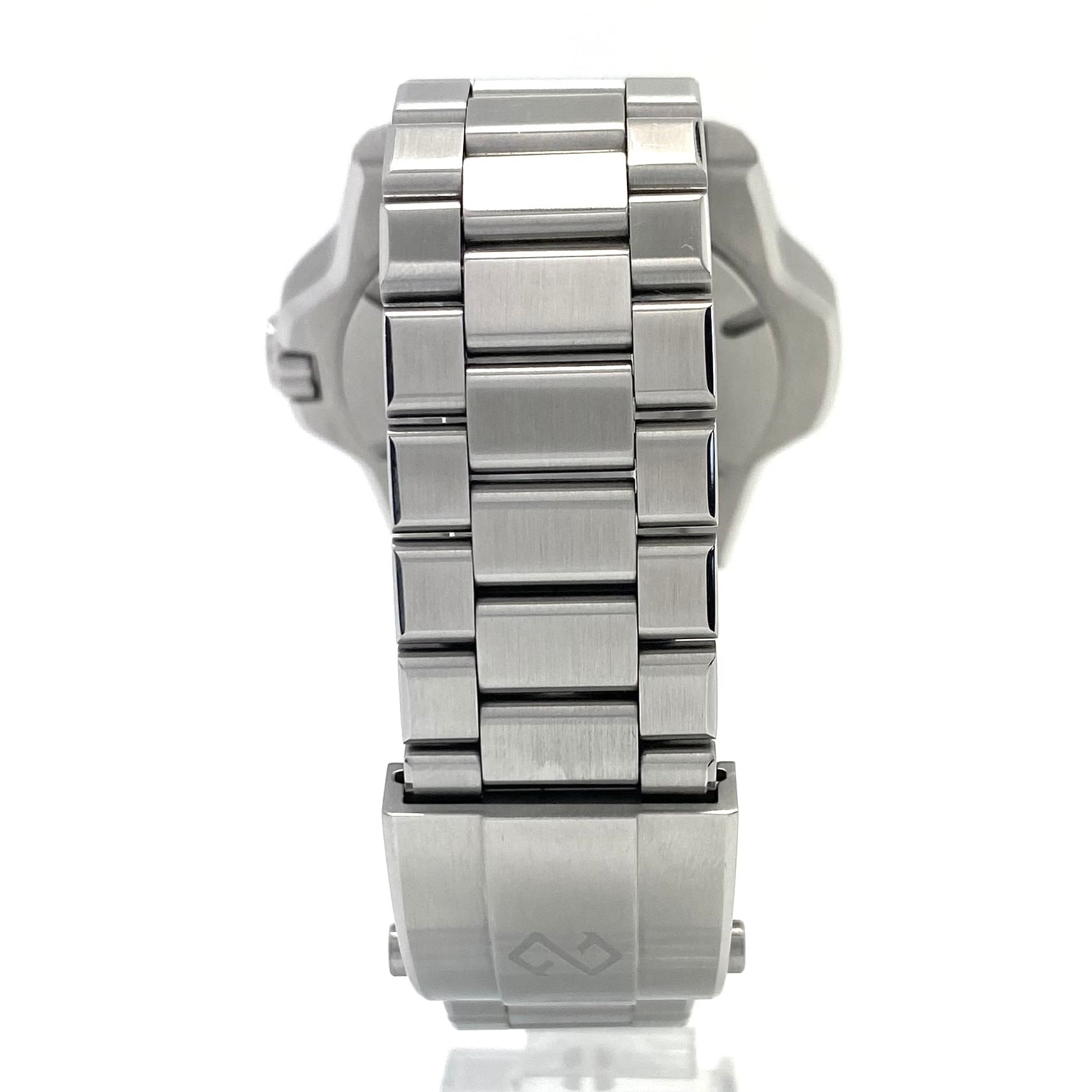 深みのあるグリーン文字盤は光の当たり方で表情が変わり、スポーティさの中に上質さも兼ね備えたデザイン。視認性に優れたインデックスと太めの針が、ダイバーズウォッチとしての完成度の高さを物語ります。