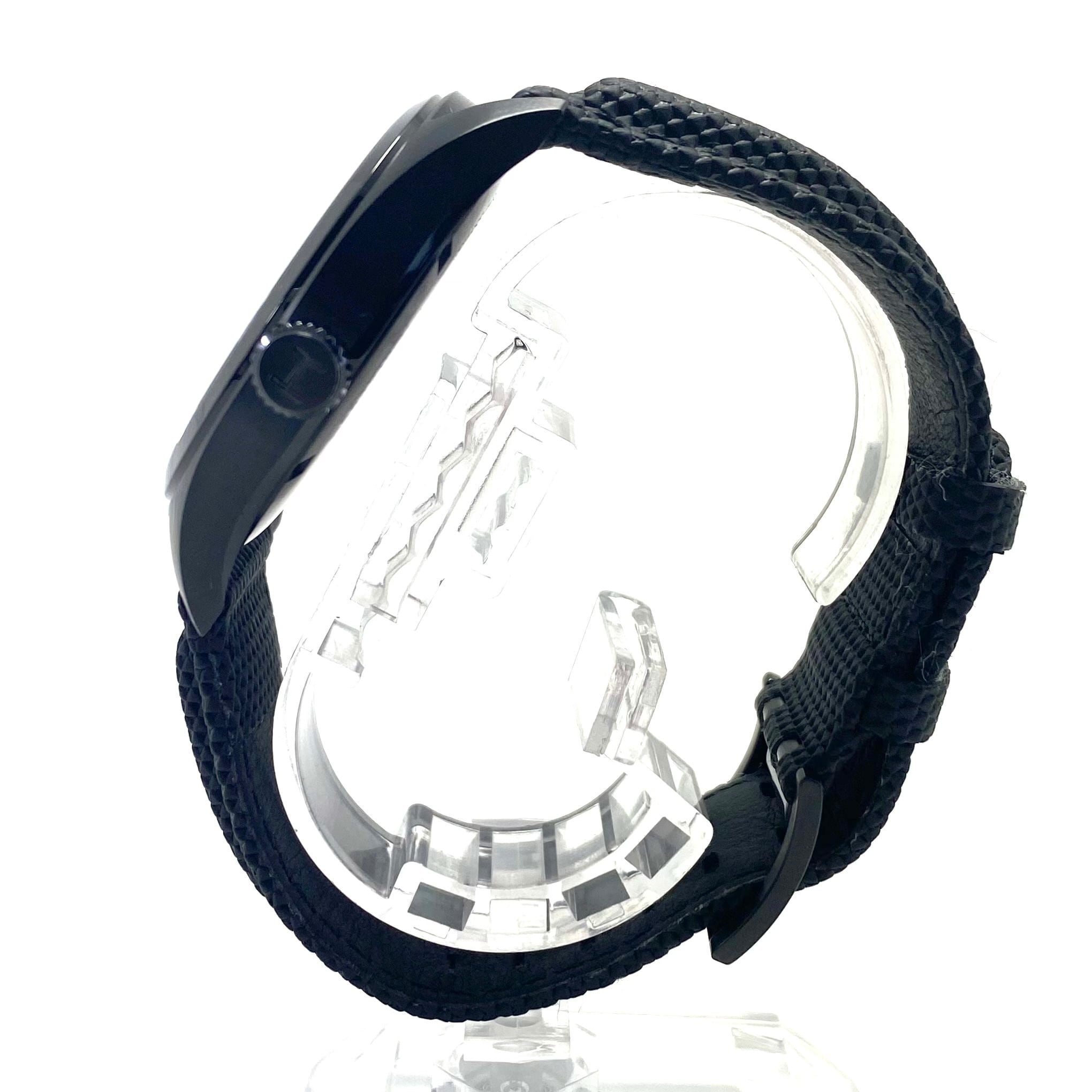 第二次世界大戦期の軍用時計をルーツに持つカーキフィールドは、無駄を削ぎ落としたミリタリーデザインと高い視認性が魅力。本モデルはケースにブラックPVD加工を施し、無骨さの中に都会的な洗練を感じさせる一本に仕上がっています。