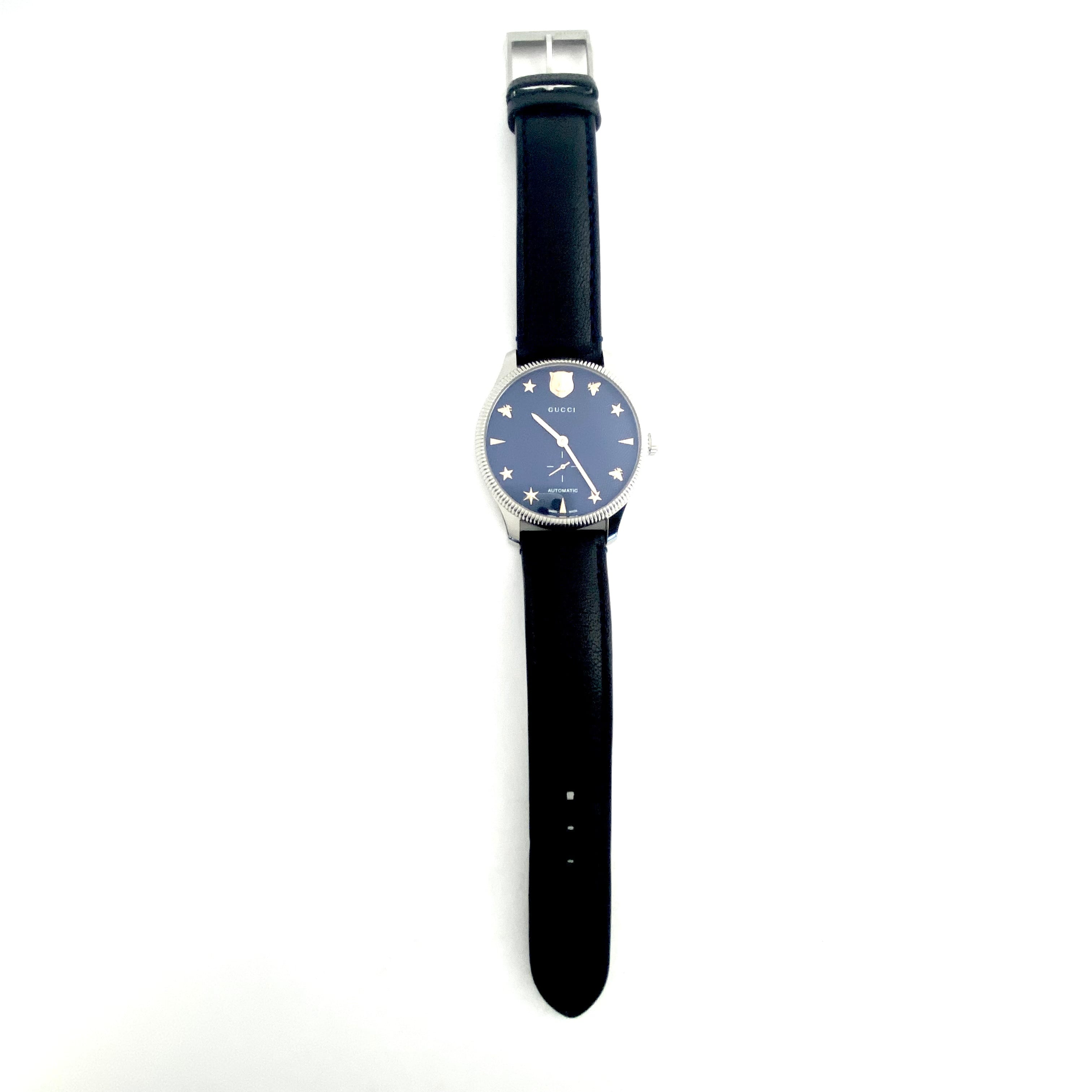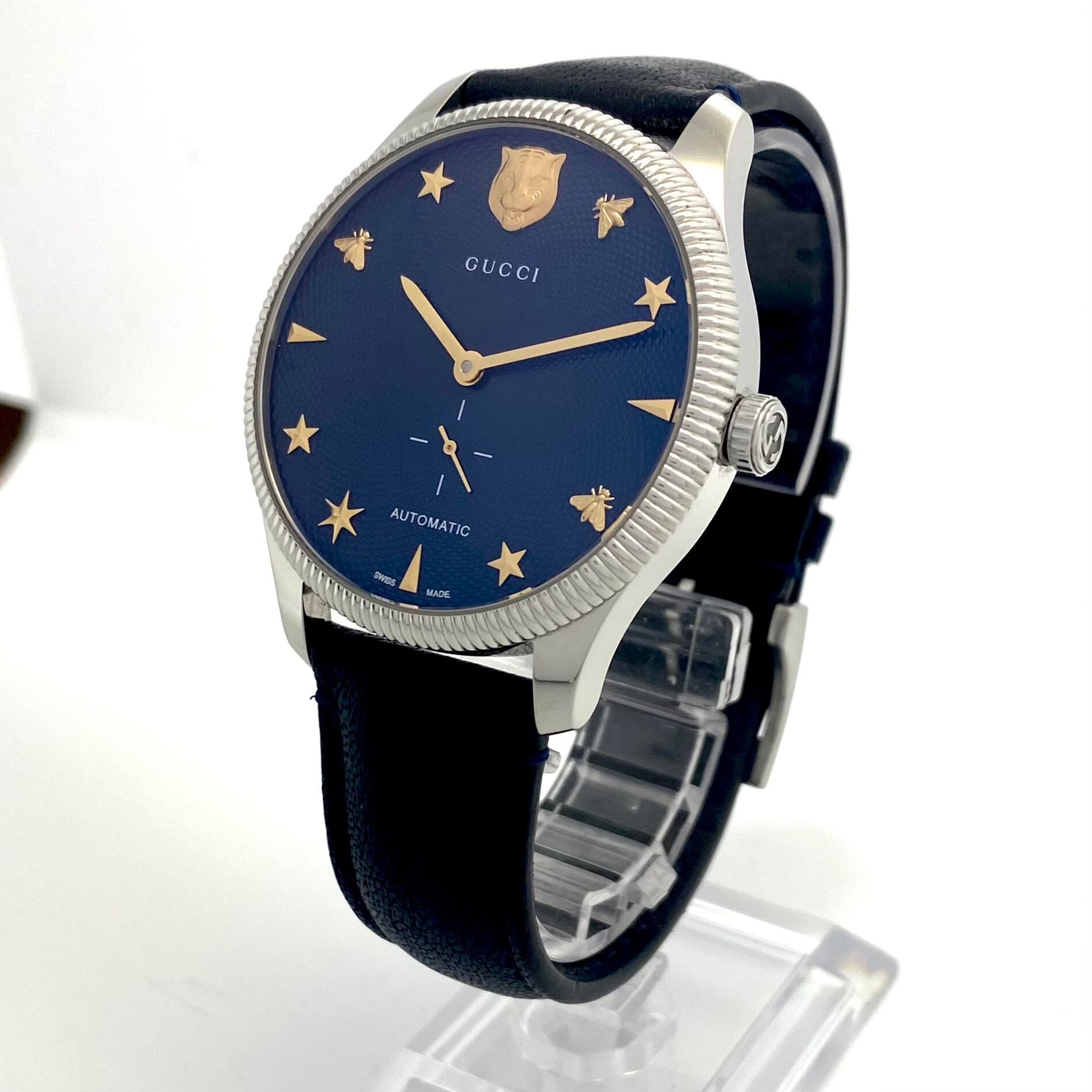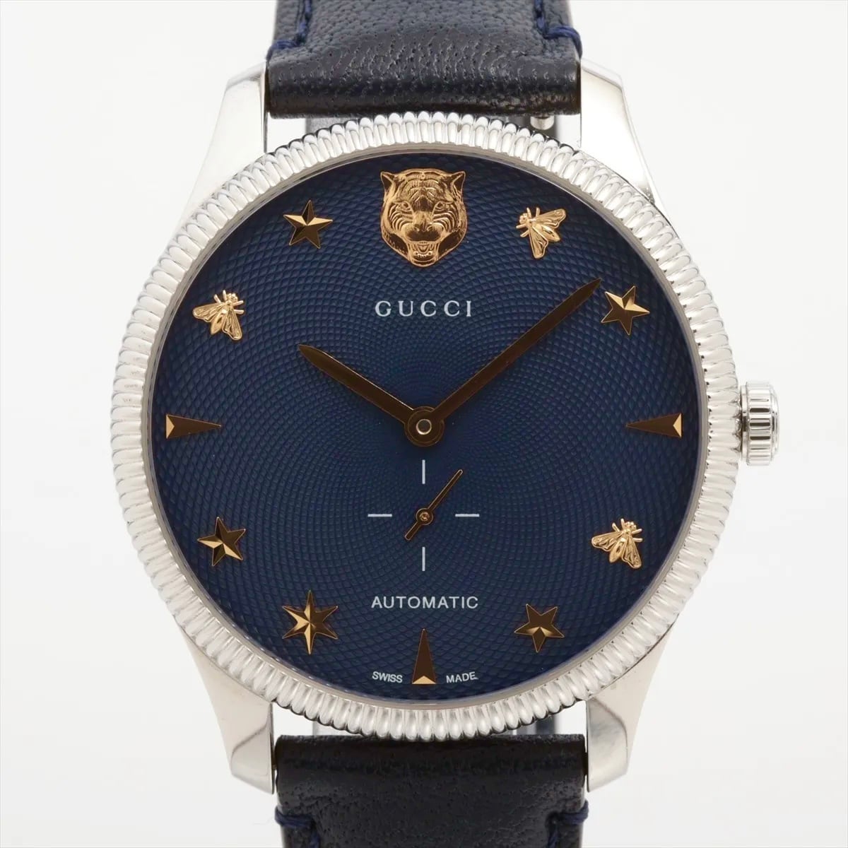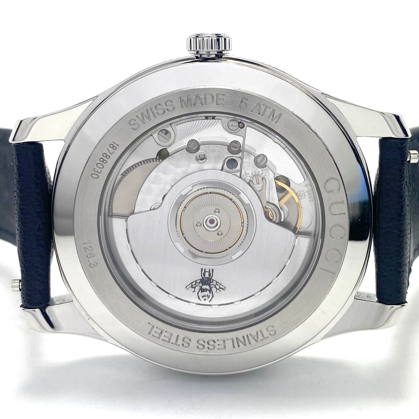 グッチ GUCCI Gタイムレス YA126347 126.3 自動巻 ネイビー スモールセコンド 裏スケ 革ベルト ユニセックス