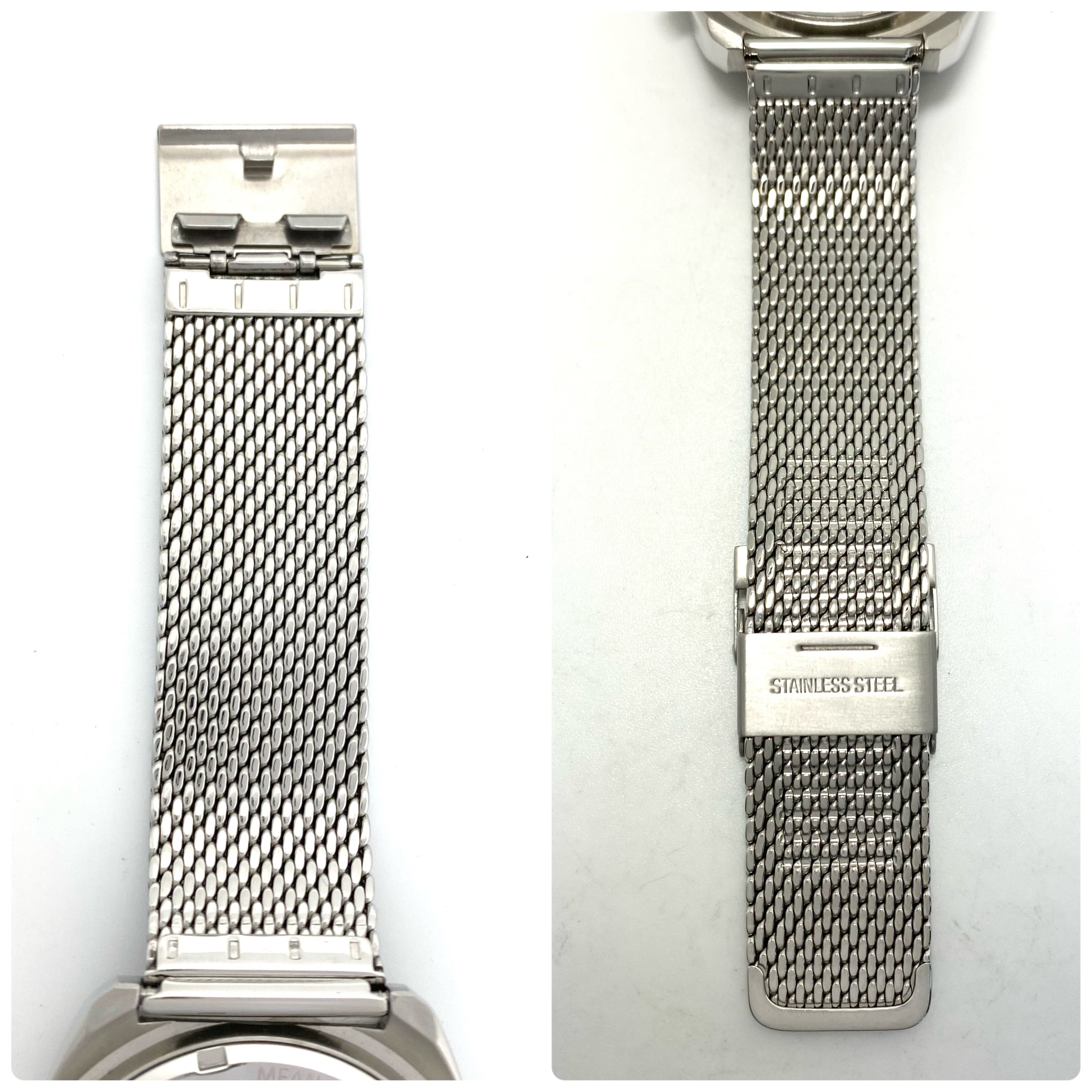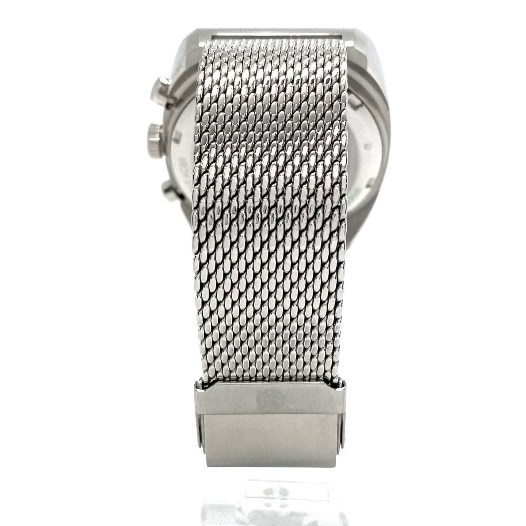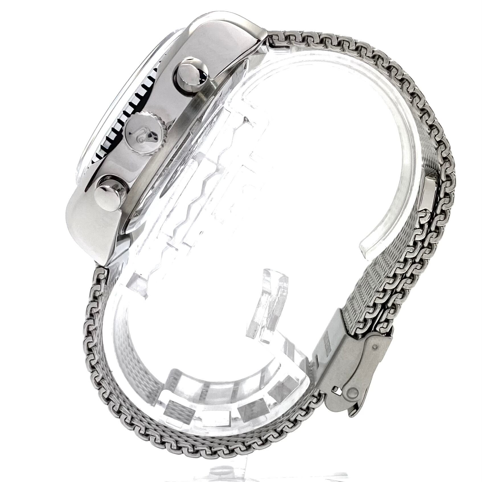 100m防水を備え、普段使いから軽いアウトドアシーンまで幅広く対応。ステンレス製メッシュブレスレット(ミラネーゼ)が、クラシカルな雰囲気をさらに引き立てています。