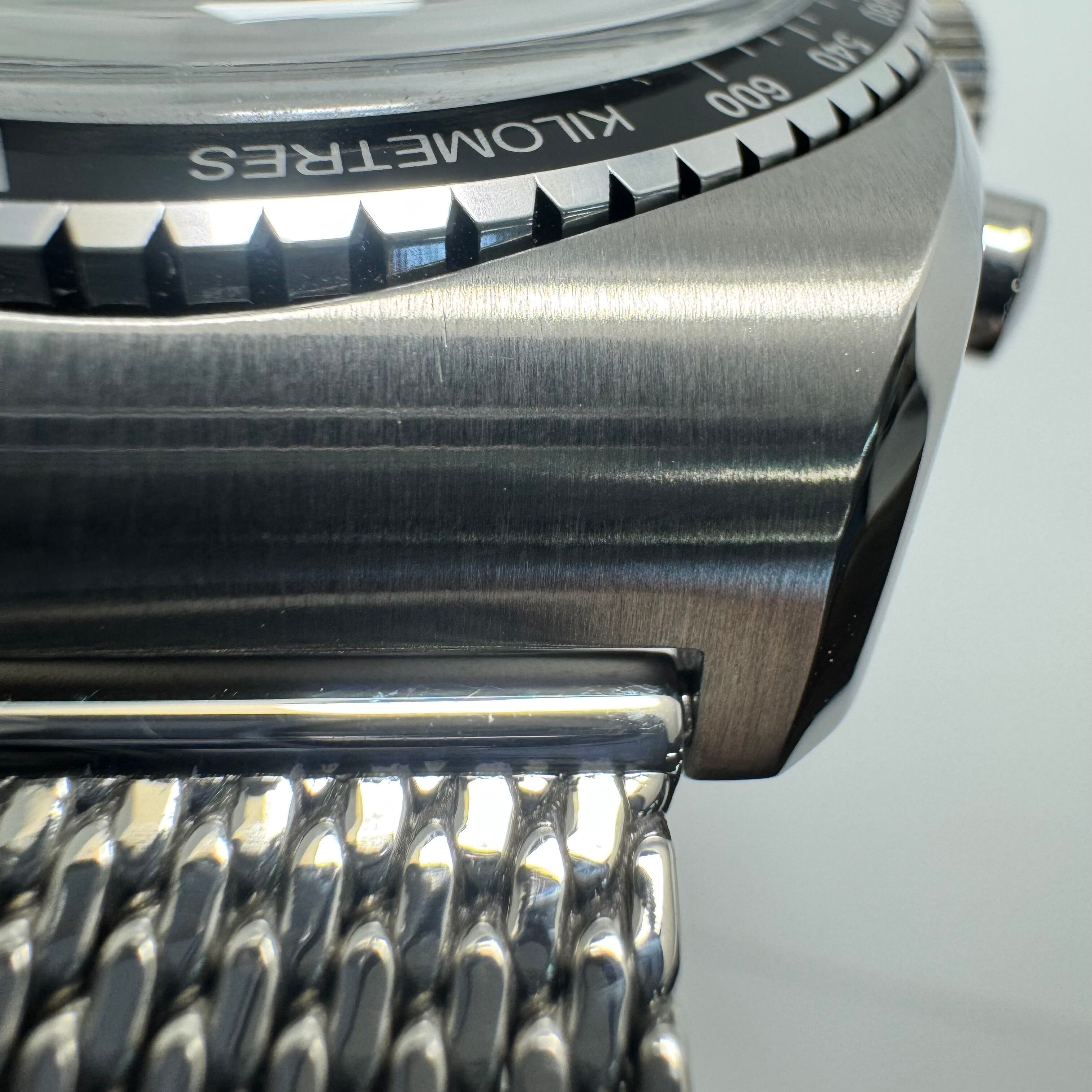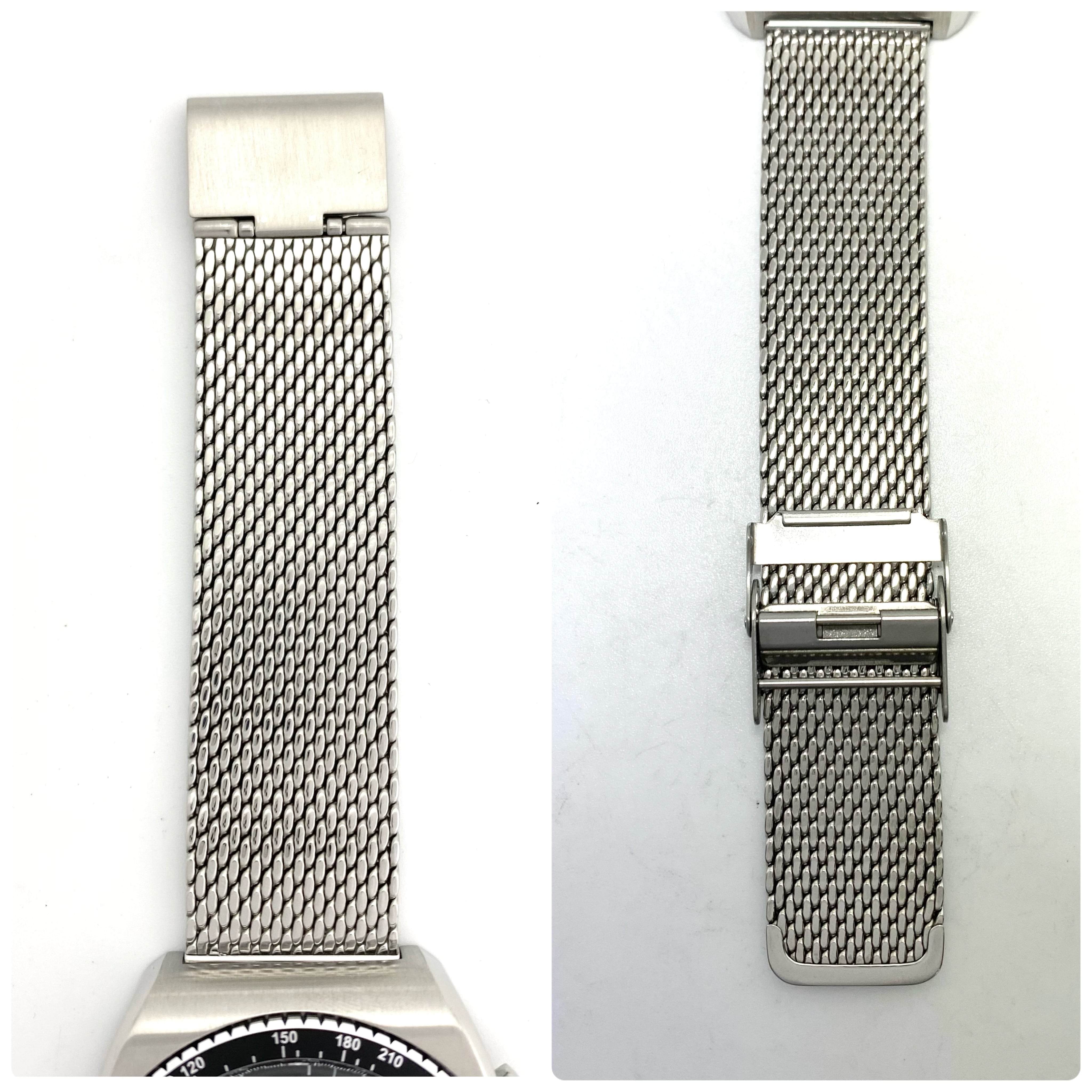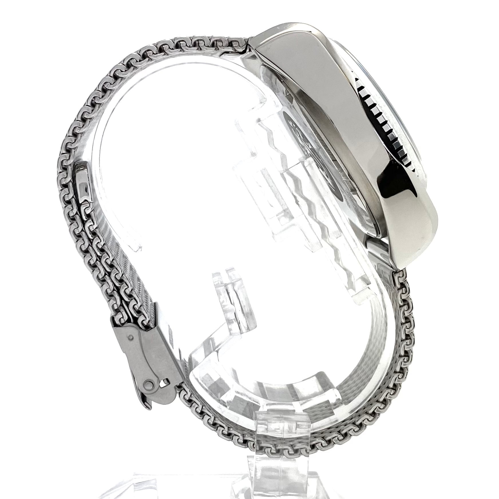 100m防水を備え、普段使いから軽いアウトドアシーンまで幅広く対応。ステンレス製メッシュブレスレット(ミラネーゼ)が、クラシカルな雰囲気をさらに引き立てています。