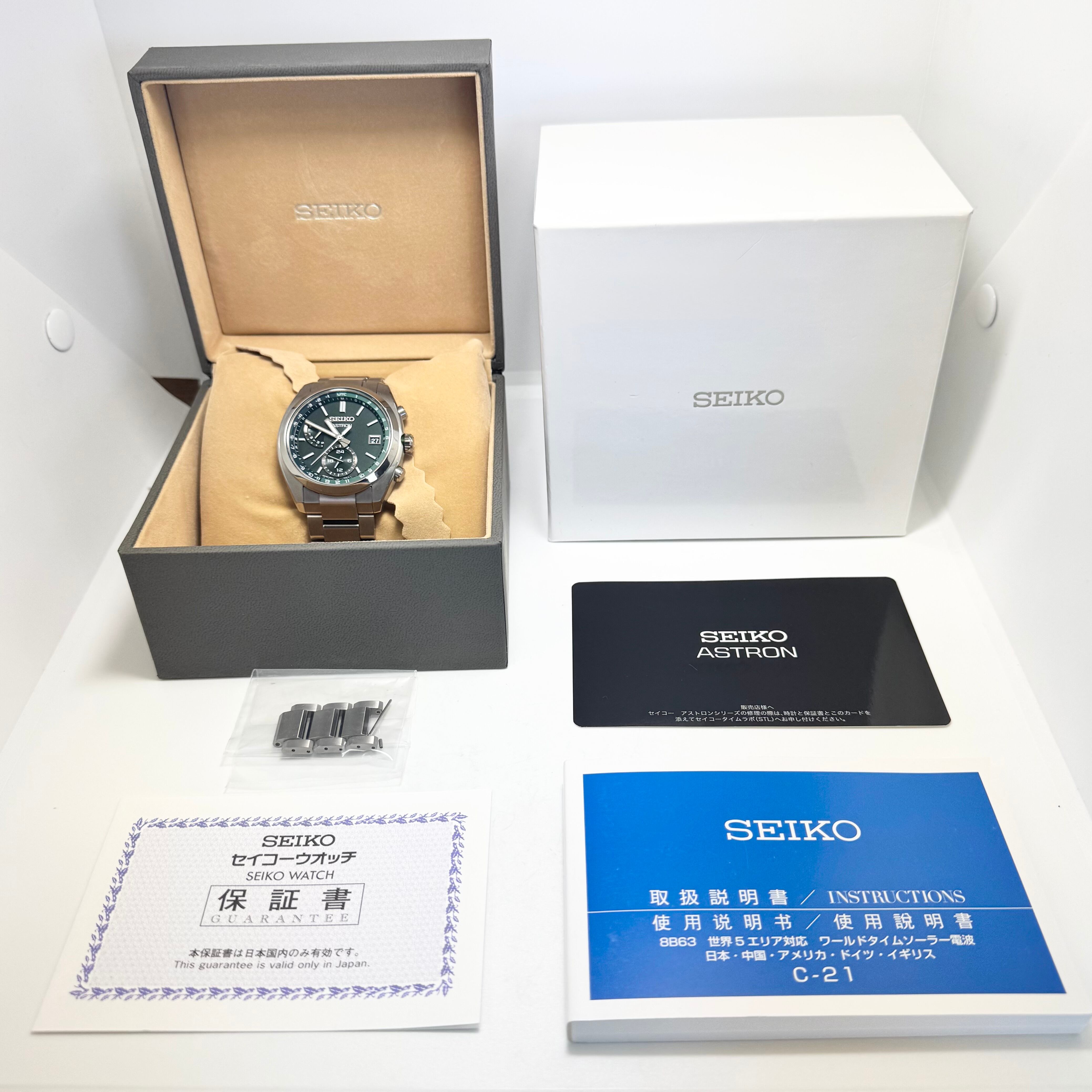 セイコー SEIKO アストロン Astron SBXY011 8B63-0BA0 電波ソーラー グリーン デイト表示 10気圧防水 チタニウム