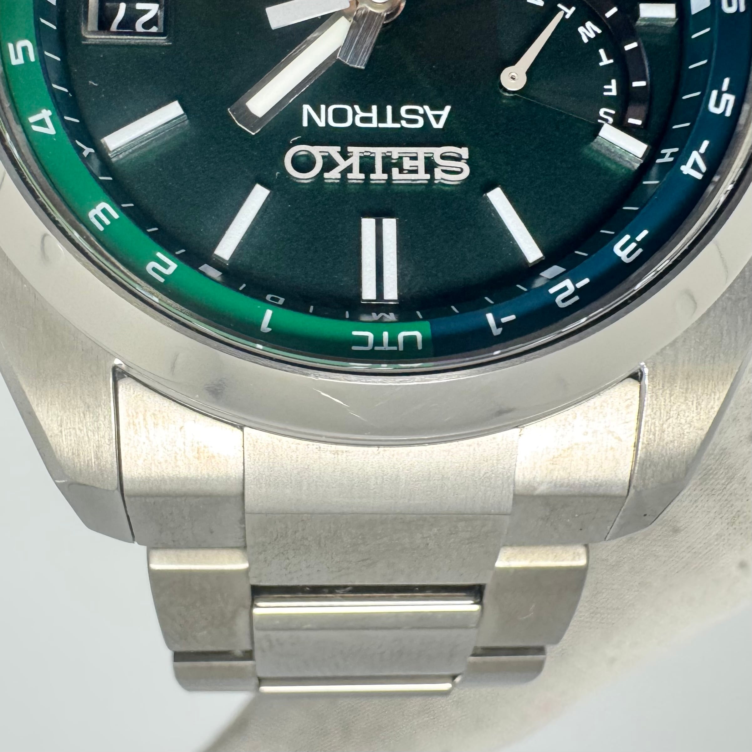 【美品】腕時計 メンズ セイコー SEIKO アストロン SBXY011 8B63-0BA0 電波ソーラー グリーン デイト表示 10気圧防水 チタニウム