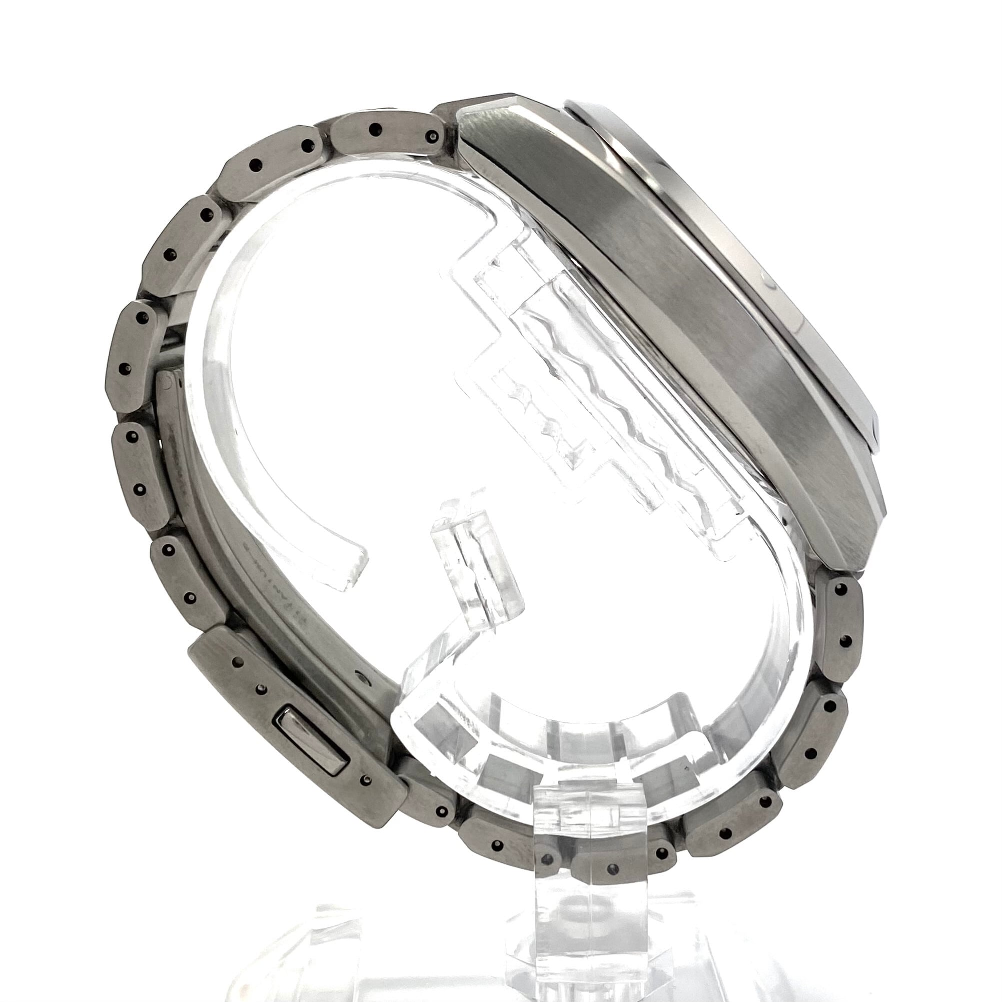 深みのあるグリーン文字盤は、派手すぎず地味すぎない絶妙な色合い。ケースには軽量かつ高強度なチタン素材を採用。さらにダイヤシールド加工により、傷がつきにくく、長く美しい状態を保てるのも大きな魅力です。