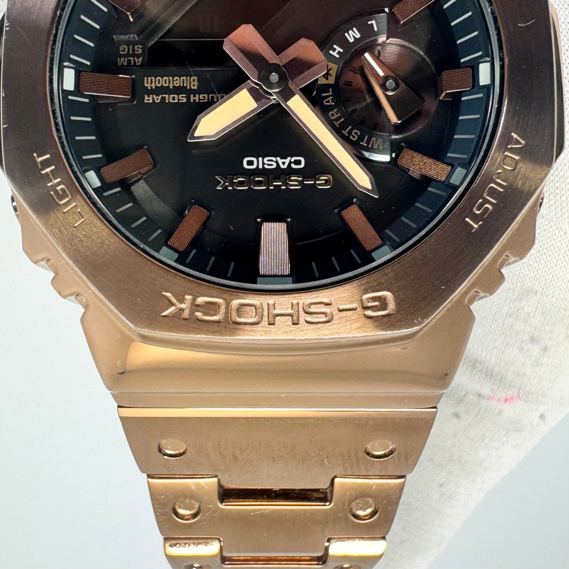 G-SHOCKの人気“2100(カシオーク)”シリーズをフルメタル化したプレミアムモデル、GM-B2100GD-5AJです。現在は生産終了しており、入手が難しい希少な品となっています。