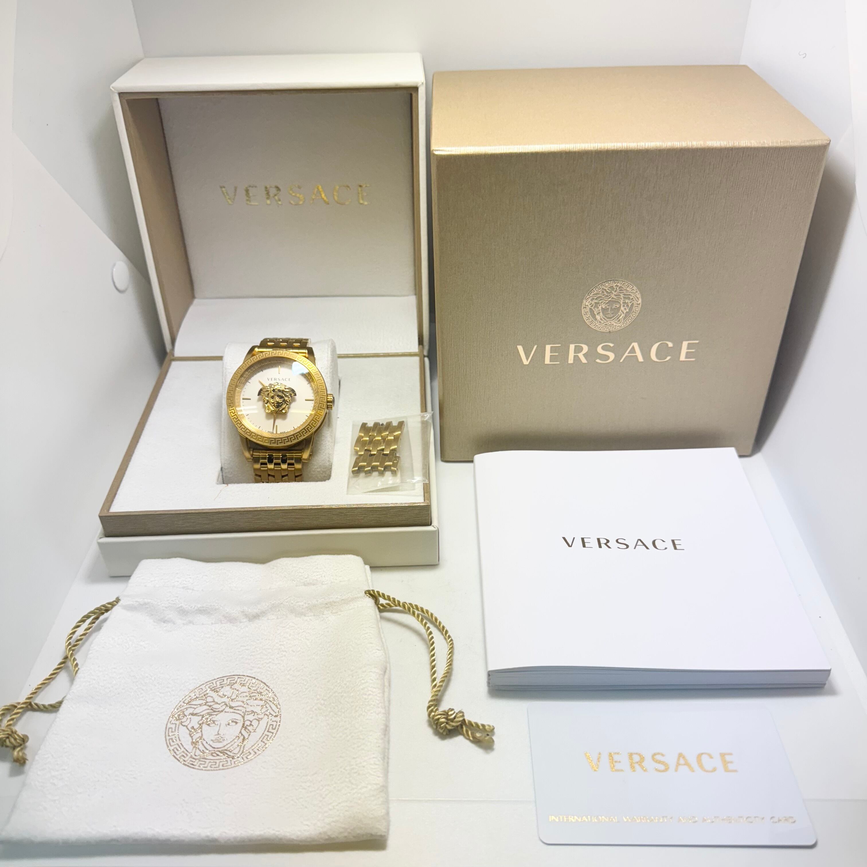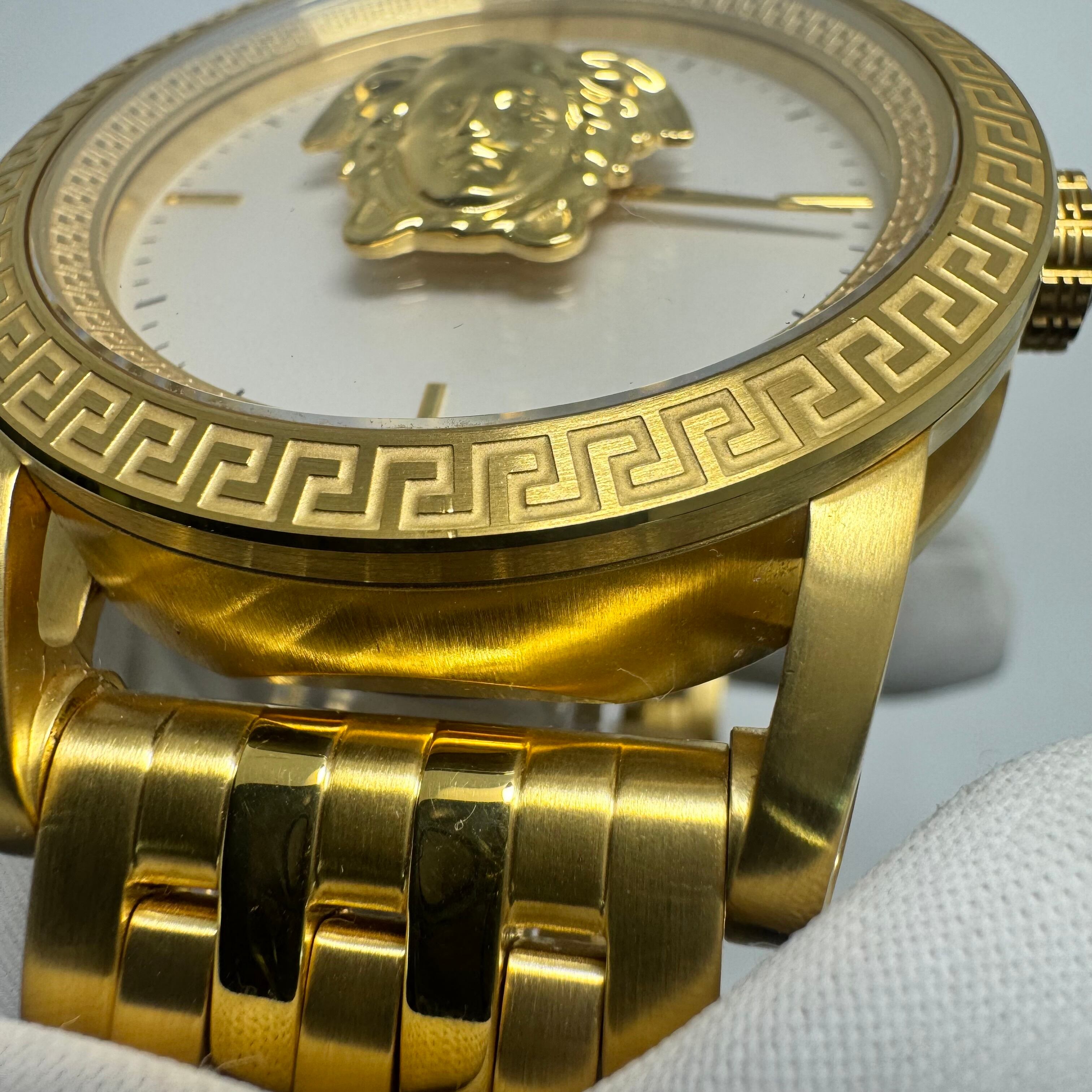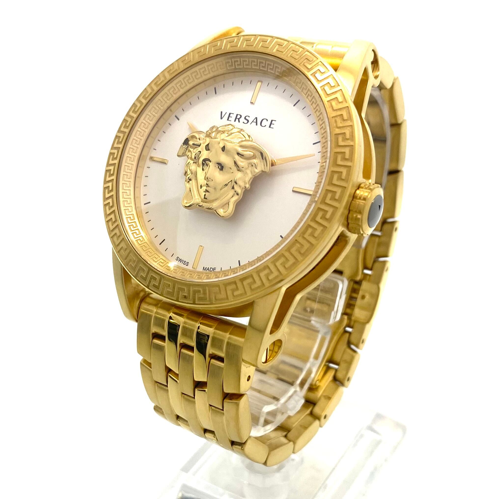 【美品】腕時計 メンズ ヴェルサーチェ VERSACE パラッツォエンパイア VERD00318 メドゥーサ クォーツ ホワイト イエローゴールド 2針