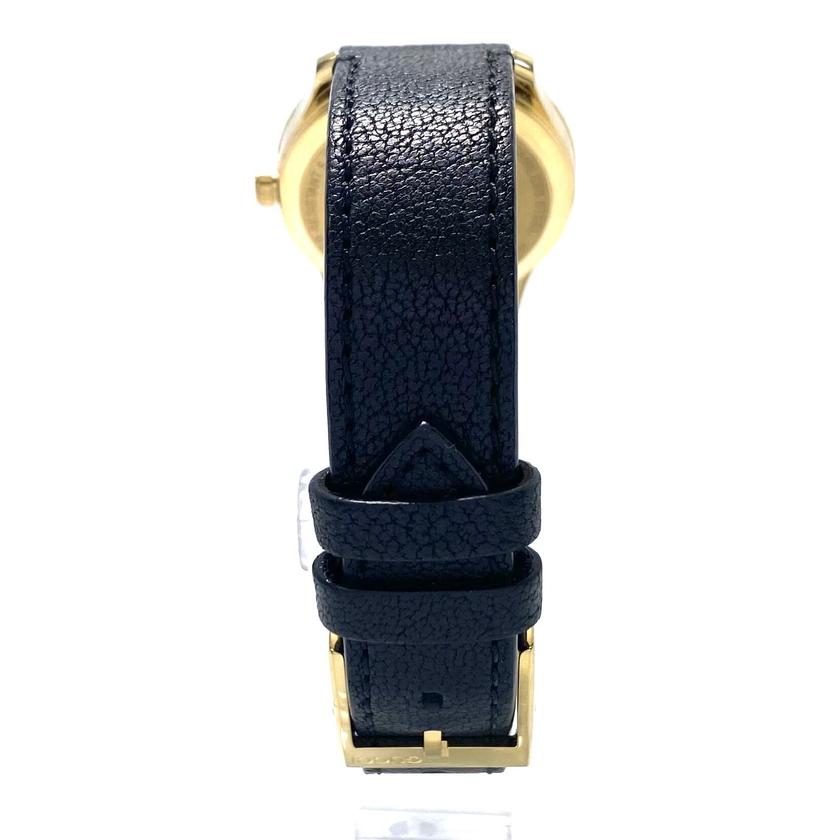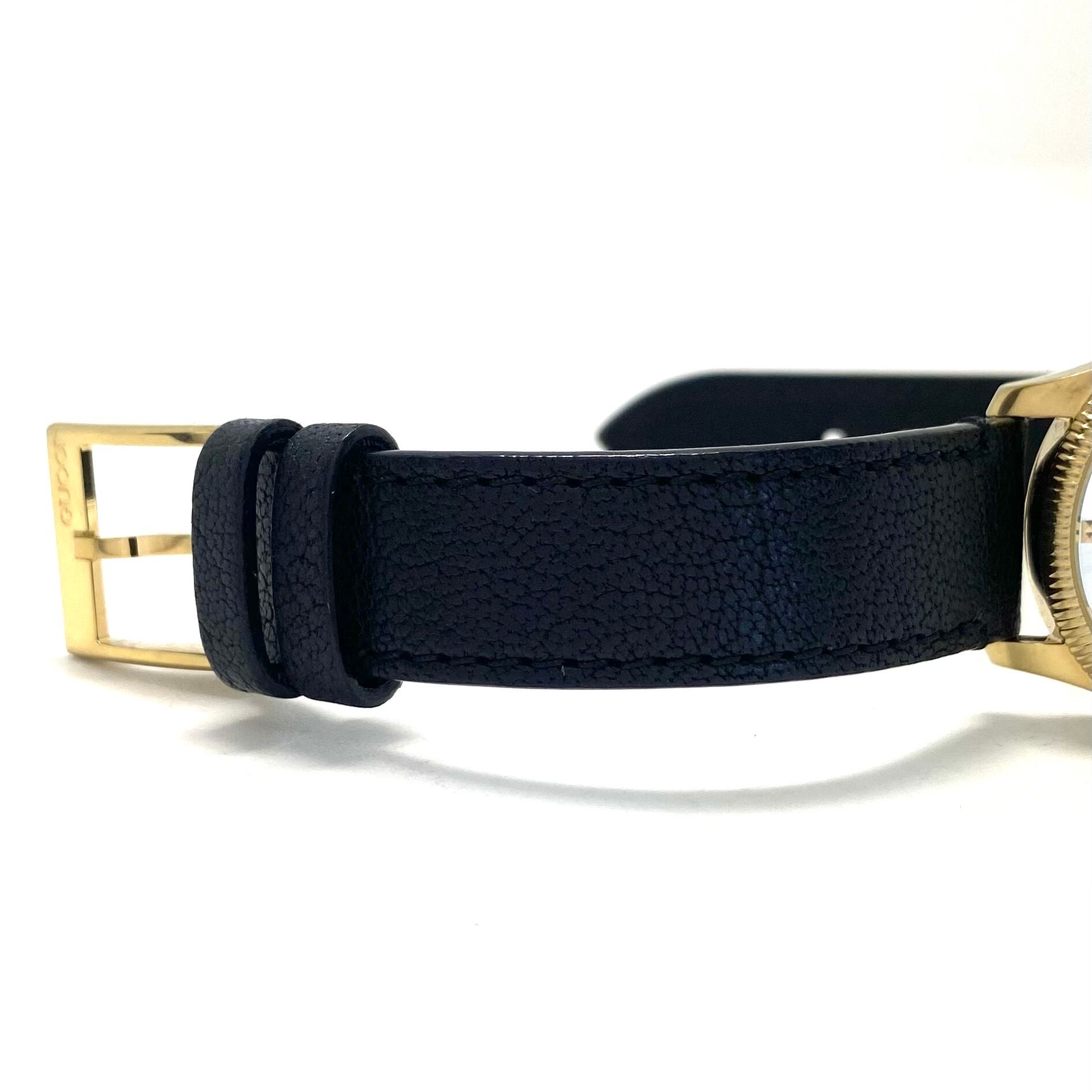 無駄を削ぎ落としたシンプルなラウンドケースに、ブランドの象徴でもあるビーモチーフを秒針にあしらった文字盤がさりげない個性を演出。上品さの中にグッチらしい遊び心を感じさせる一本です。