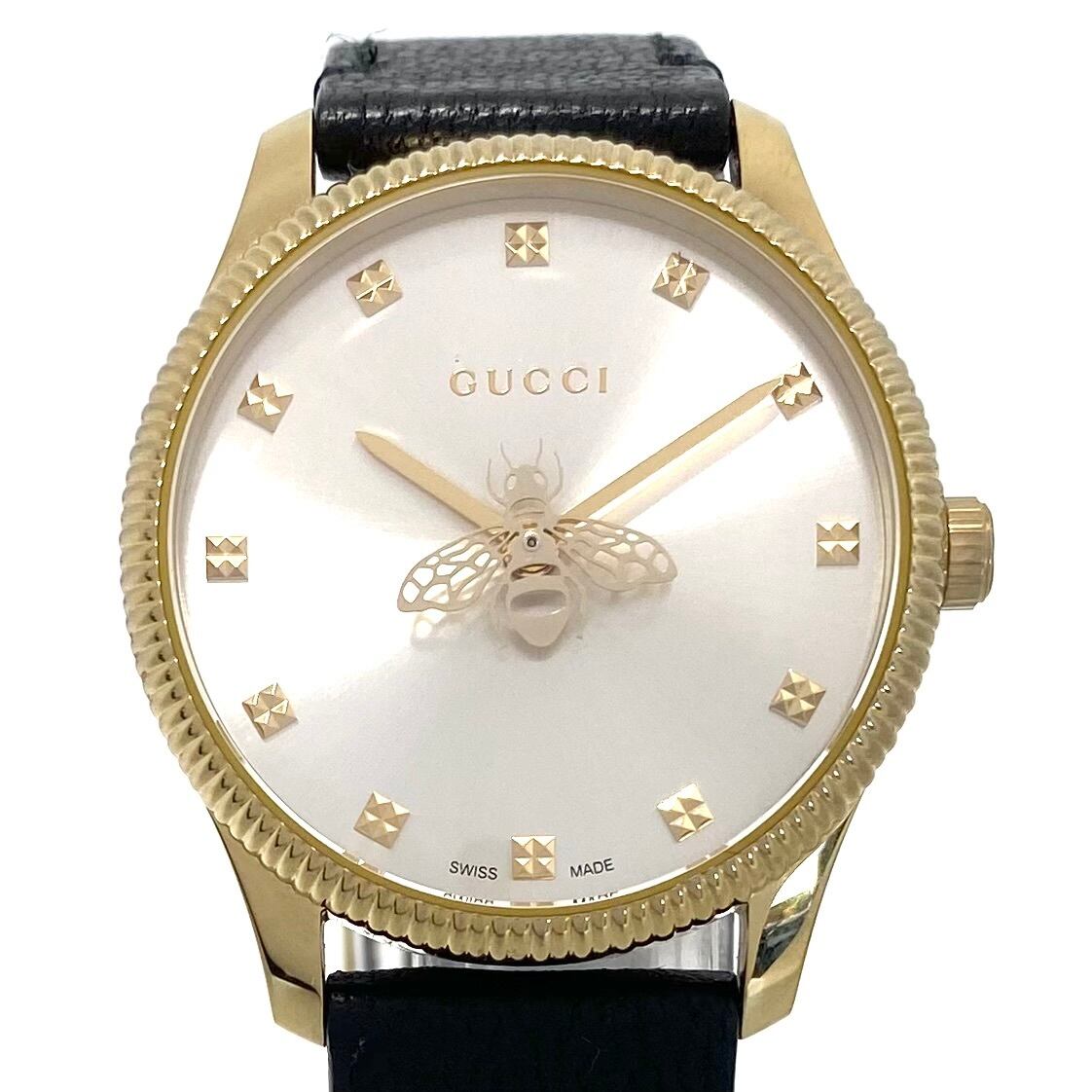 グッチ GUCCI Gタイムレス YA1265023 126.5 Bee 蜂モチーフ イエローゴールド クォーツ シルバー 革ベルト