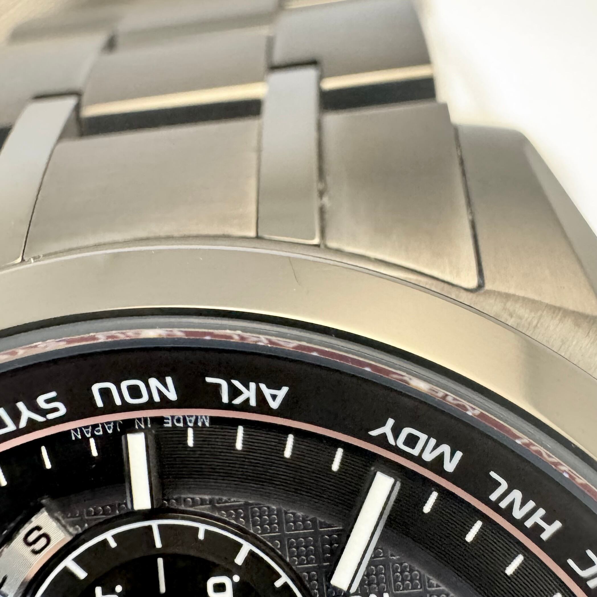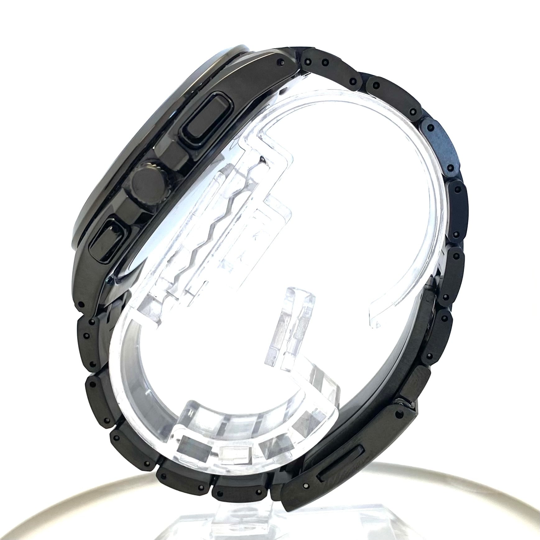 程度も使用感の少ないかなり良好な状態の品で、動作にも現状問題ありません。機能性・耐久性・デザイン性を高次元で融合させた、まさに大人のための高機能ソーラー電波時計をお探しの方におすすめの一本です。