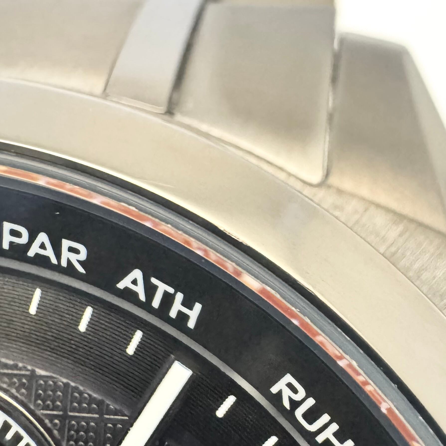 フェイス: ベゼルに極小のスレがありますが、気にならない程度です。裏蓋に保護シールが貼ってあります。
