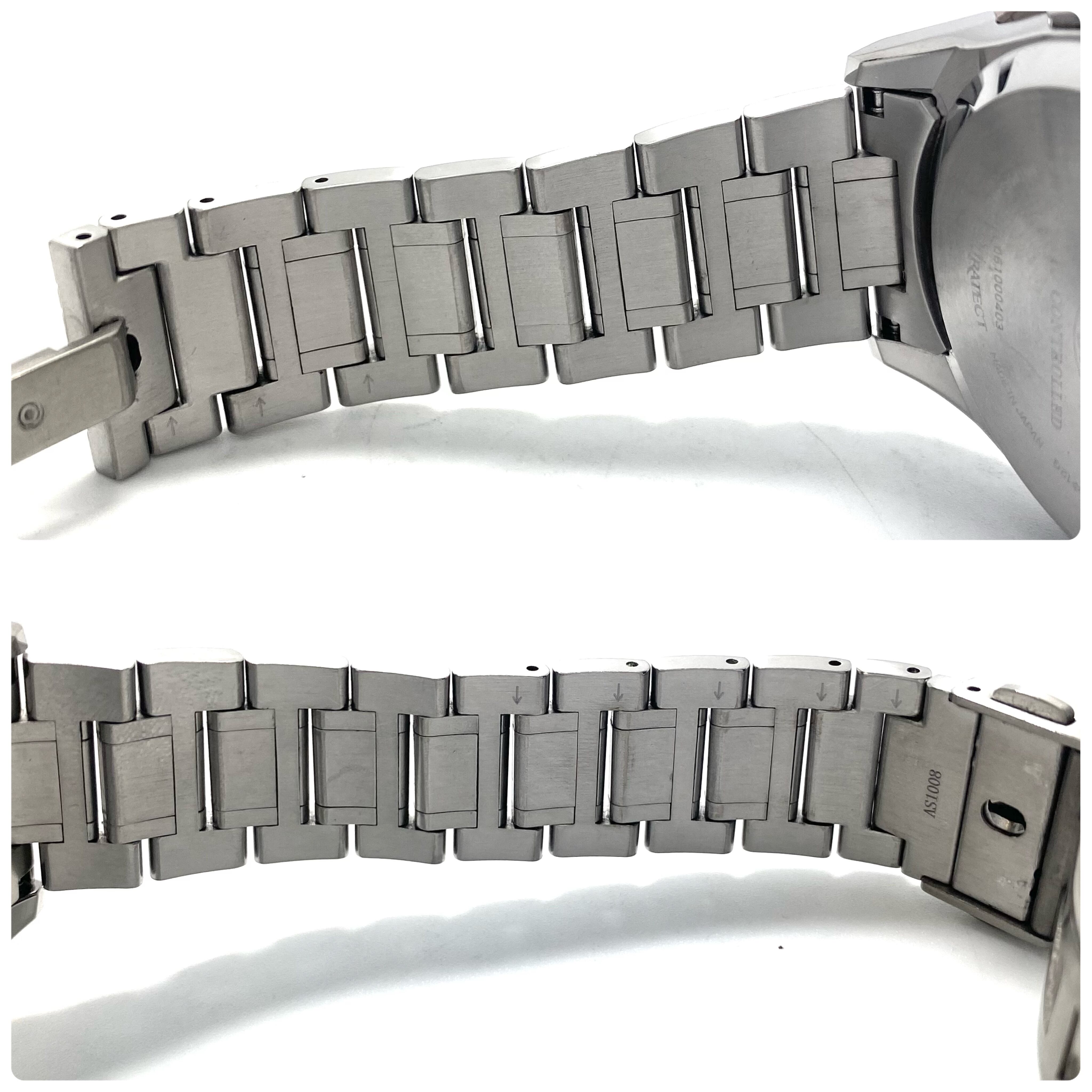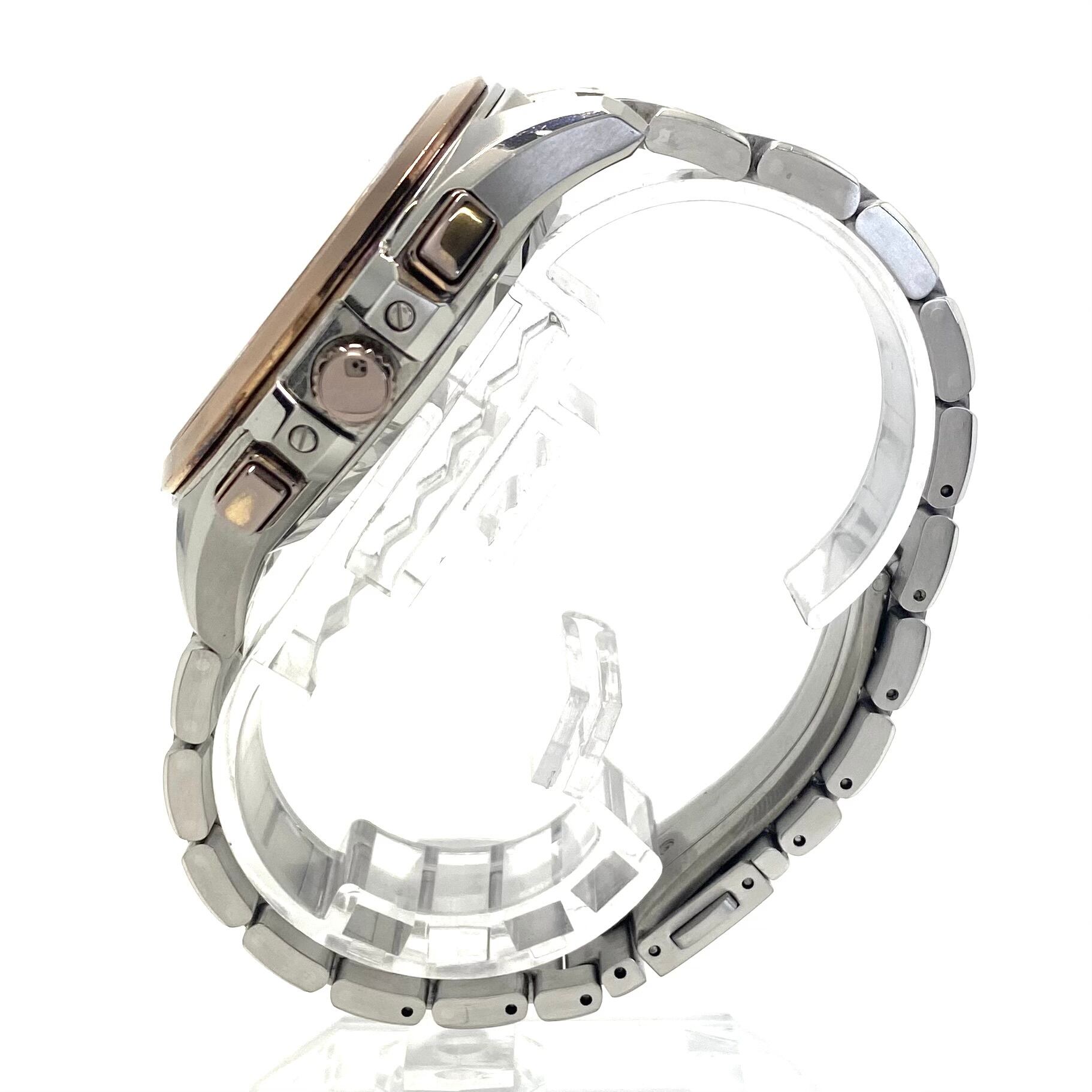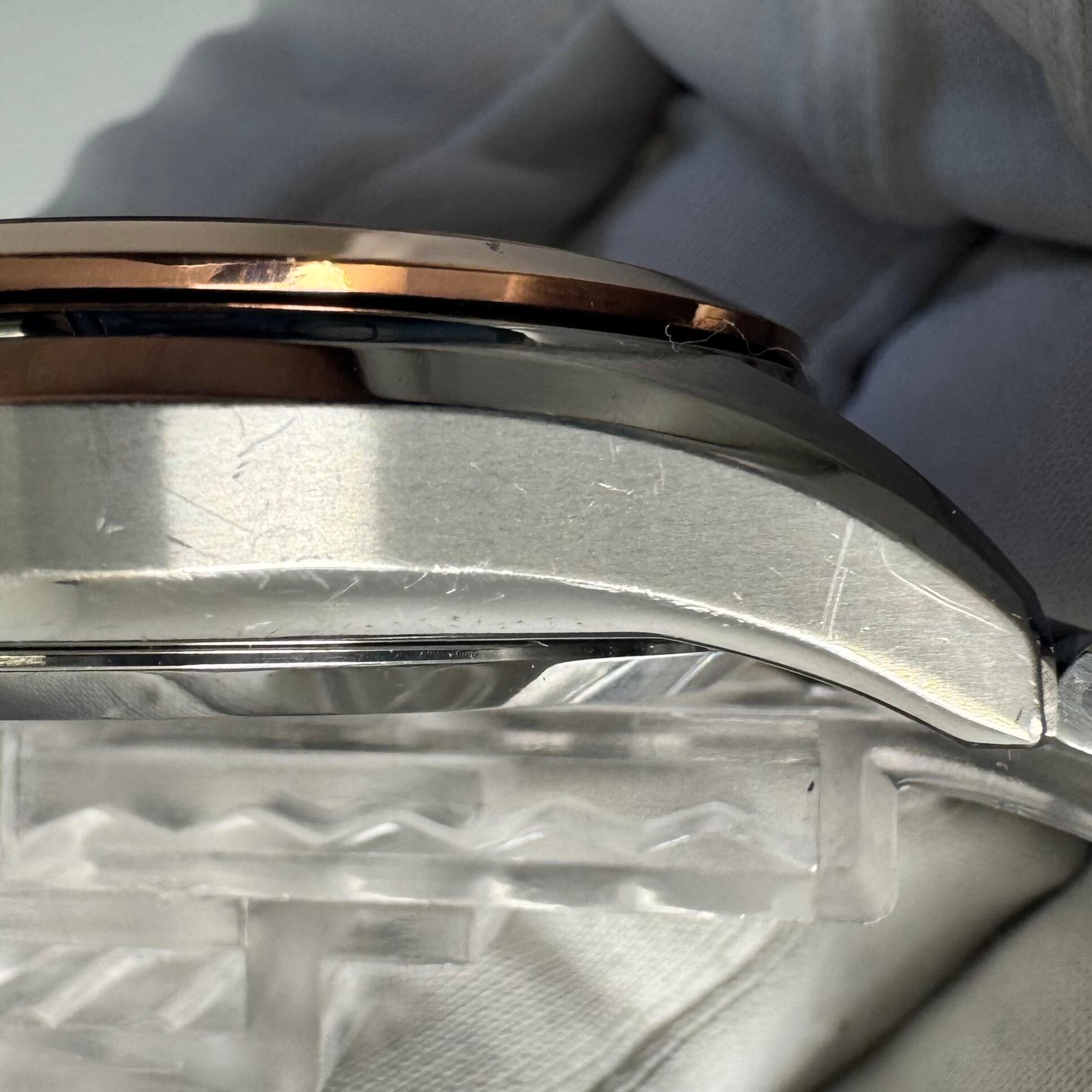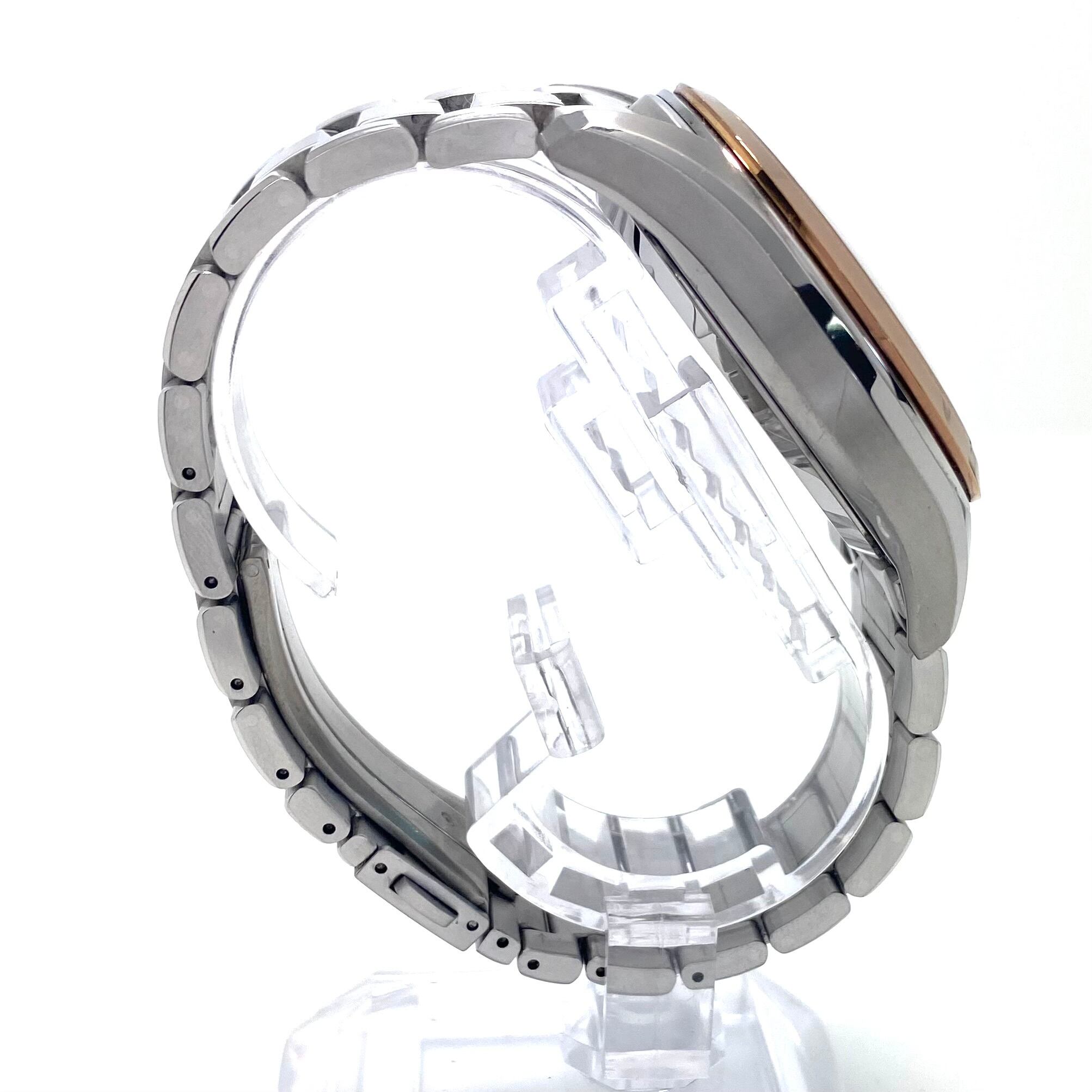 フェイス:ガラス面に若干のスレがあります。ベゼル及びケース、裏蓋に若干のスレや傷があります。クロノグラフボタンに色むらがあります。