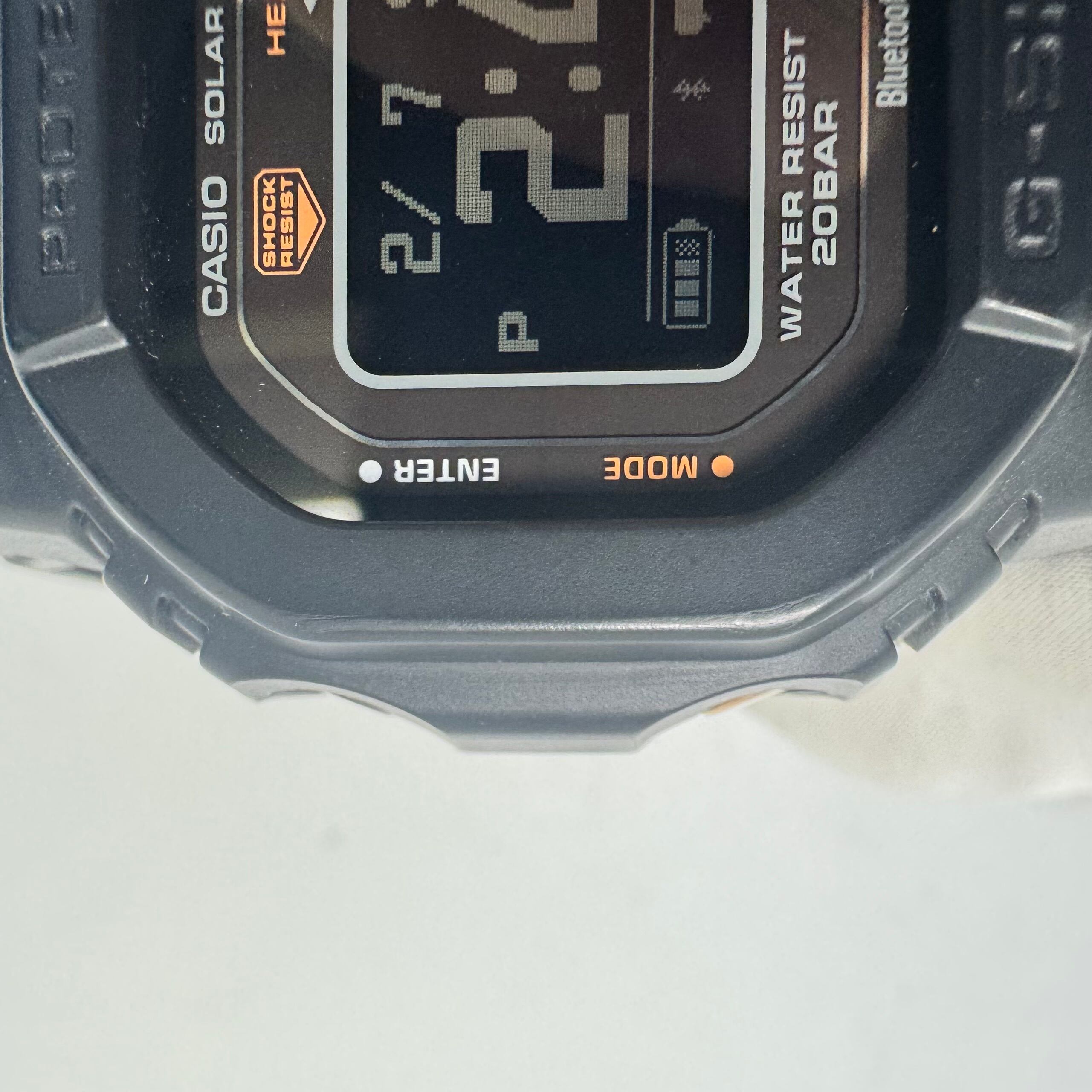 Bluetoothによるスマートフォン連携に加え、タフソーラー対応で実用性も抜群です。G-SHOCKらしい耐衝撃構造と20気圧防水を備え、スポーツシーンから普段使いまで頼れる一本です。
