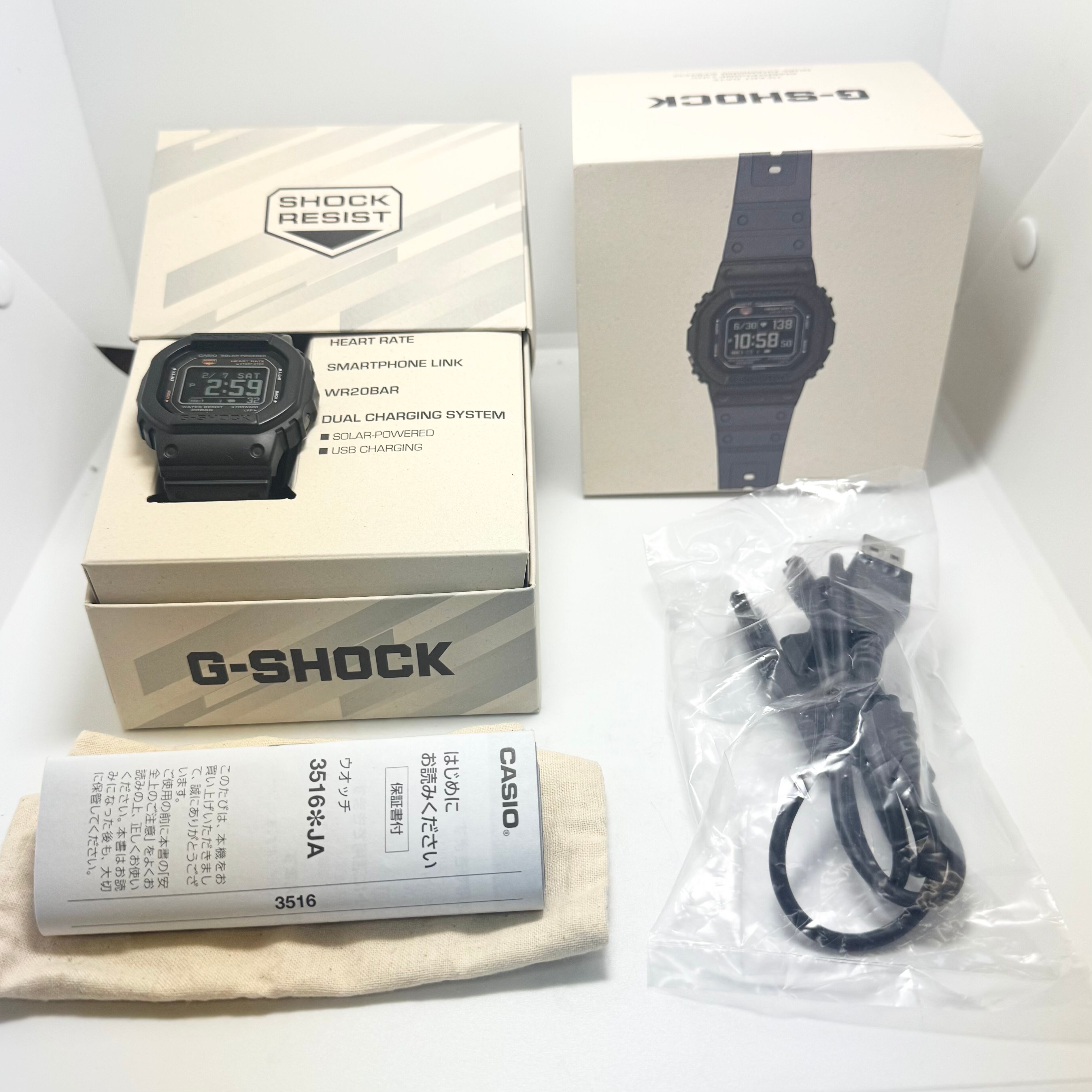 G-SHOCKのスポーツライン「G-SQUAD」より、5600シリーズ初の心拍計測機能を搭載した先進モデル DW-H5600-1JRが入荷されました。