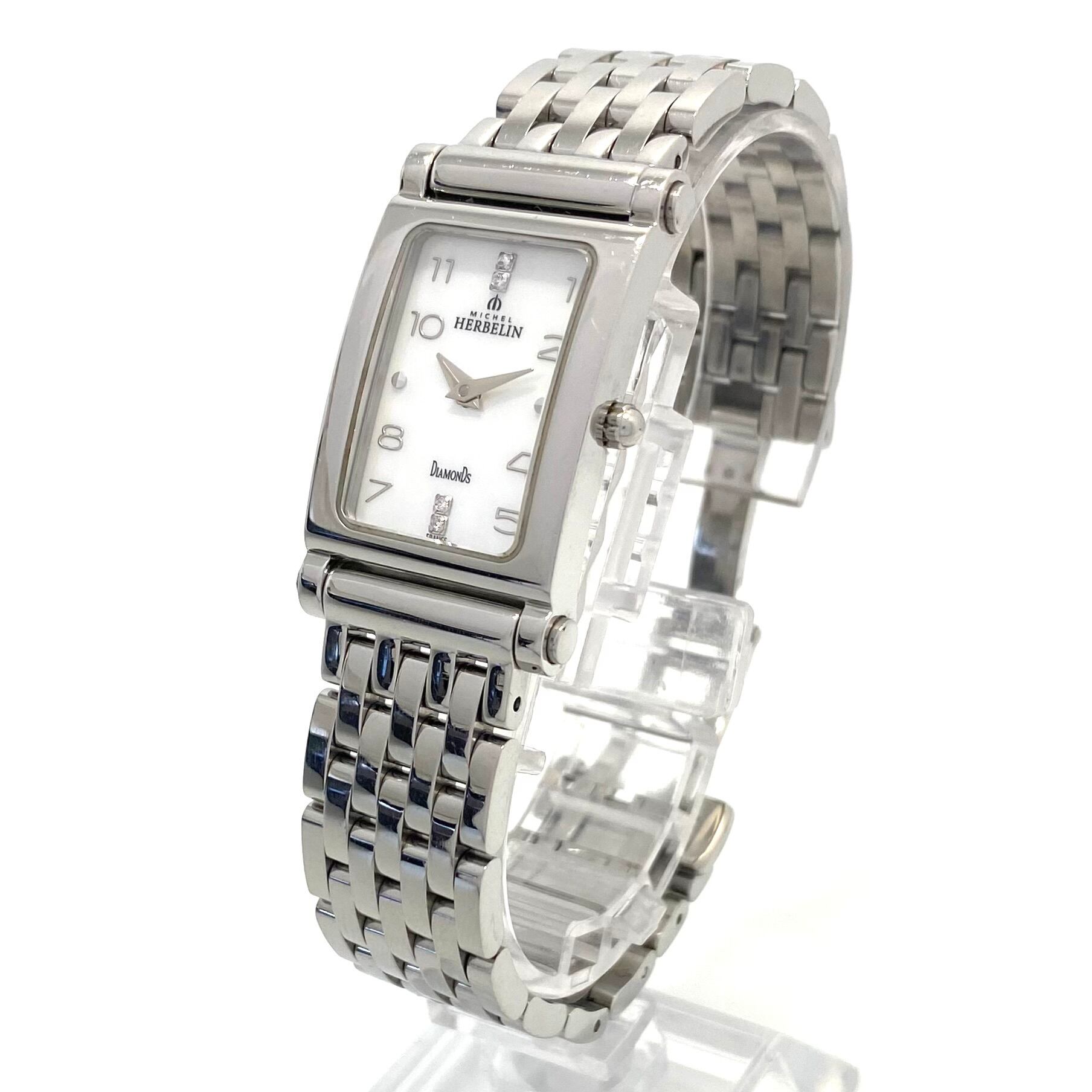 ミッシェルエルブラン MICHEL HERBELIN R.17048.2 クォーツ レクタンギュラー ホワイトシェル 2針